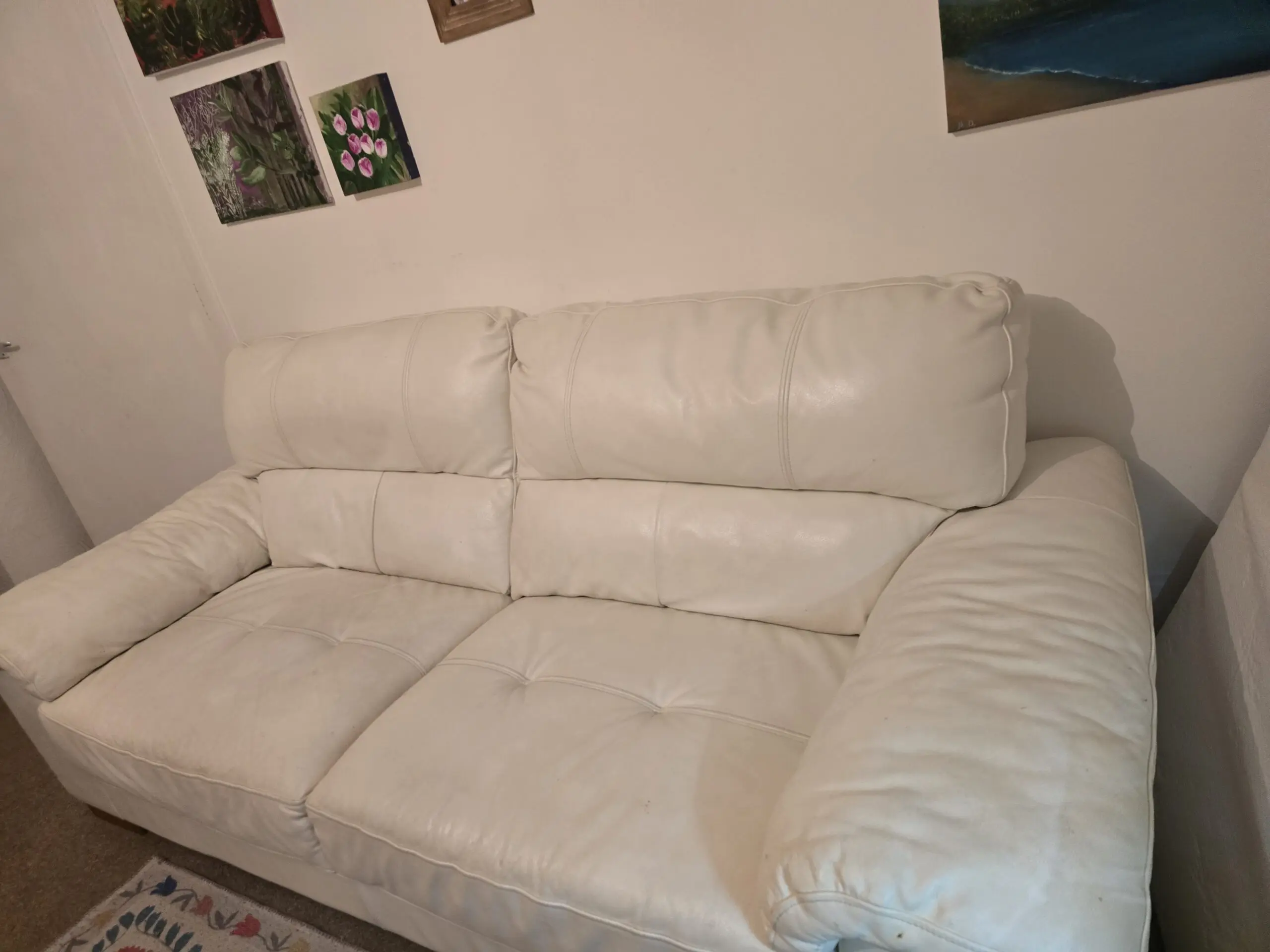 This sofa is 8 years old. There are some scratches but still in reasonably good condition.I moved to a flat and its taking up too much space.