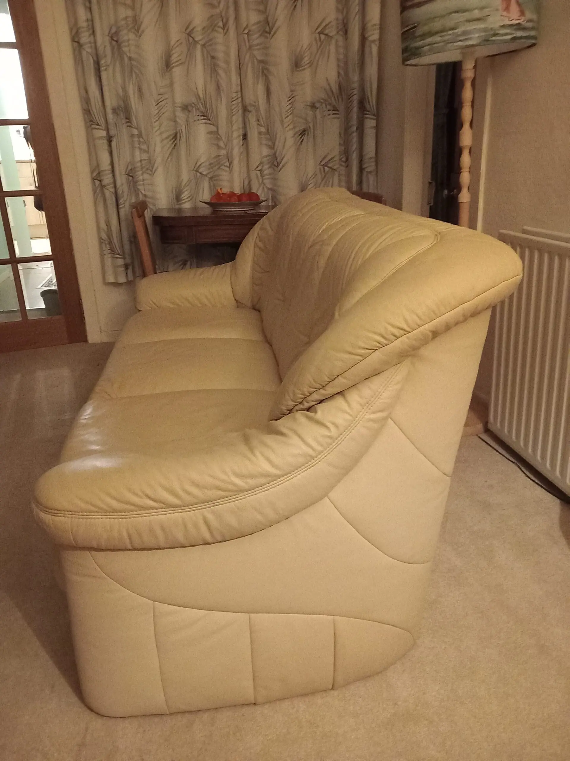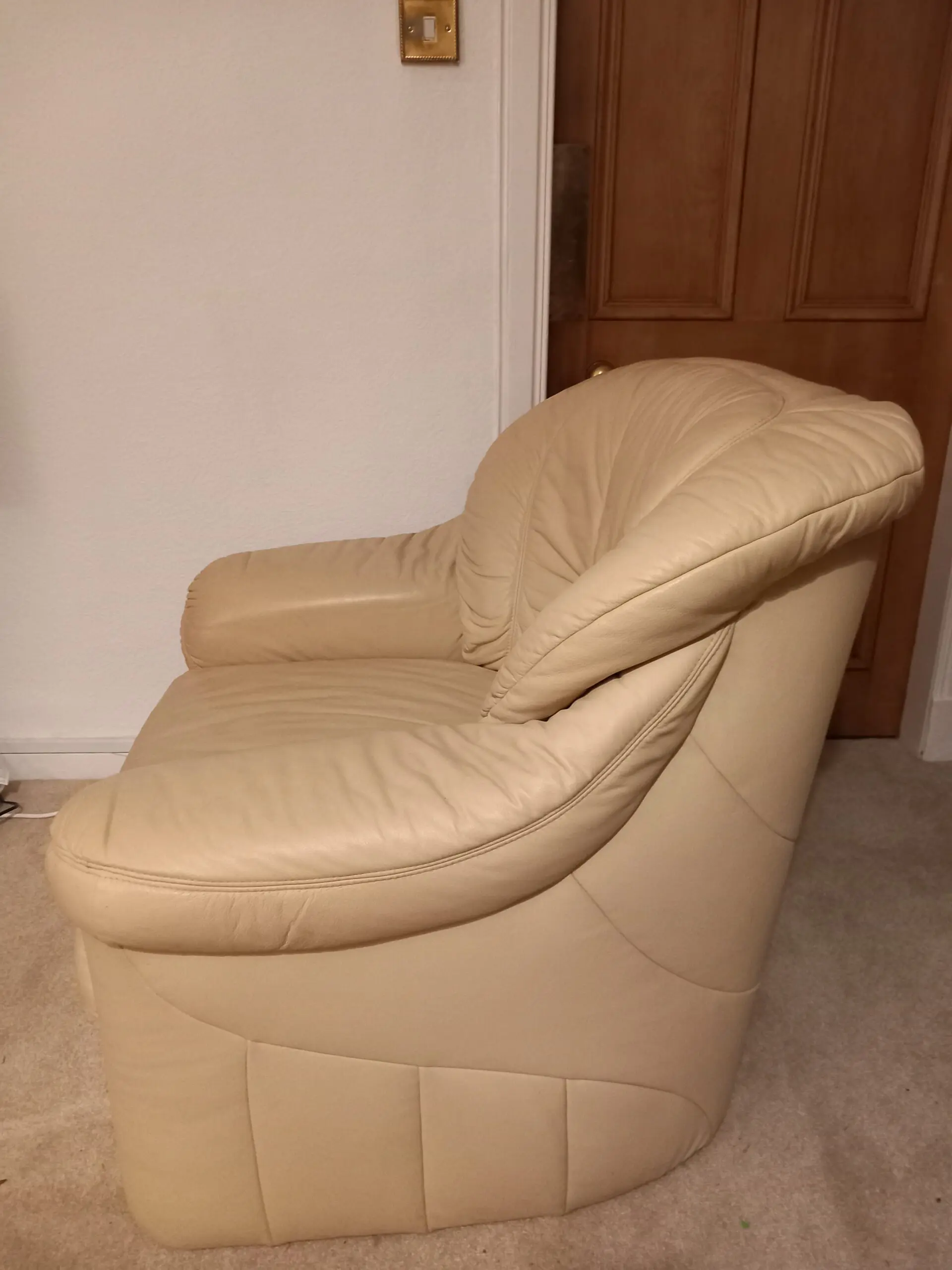 Matching cream leather 3-seater sofa and armchair. Good condition. Smoke free and dog free house.