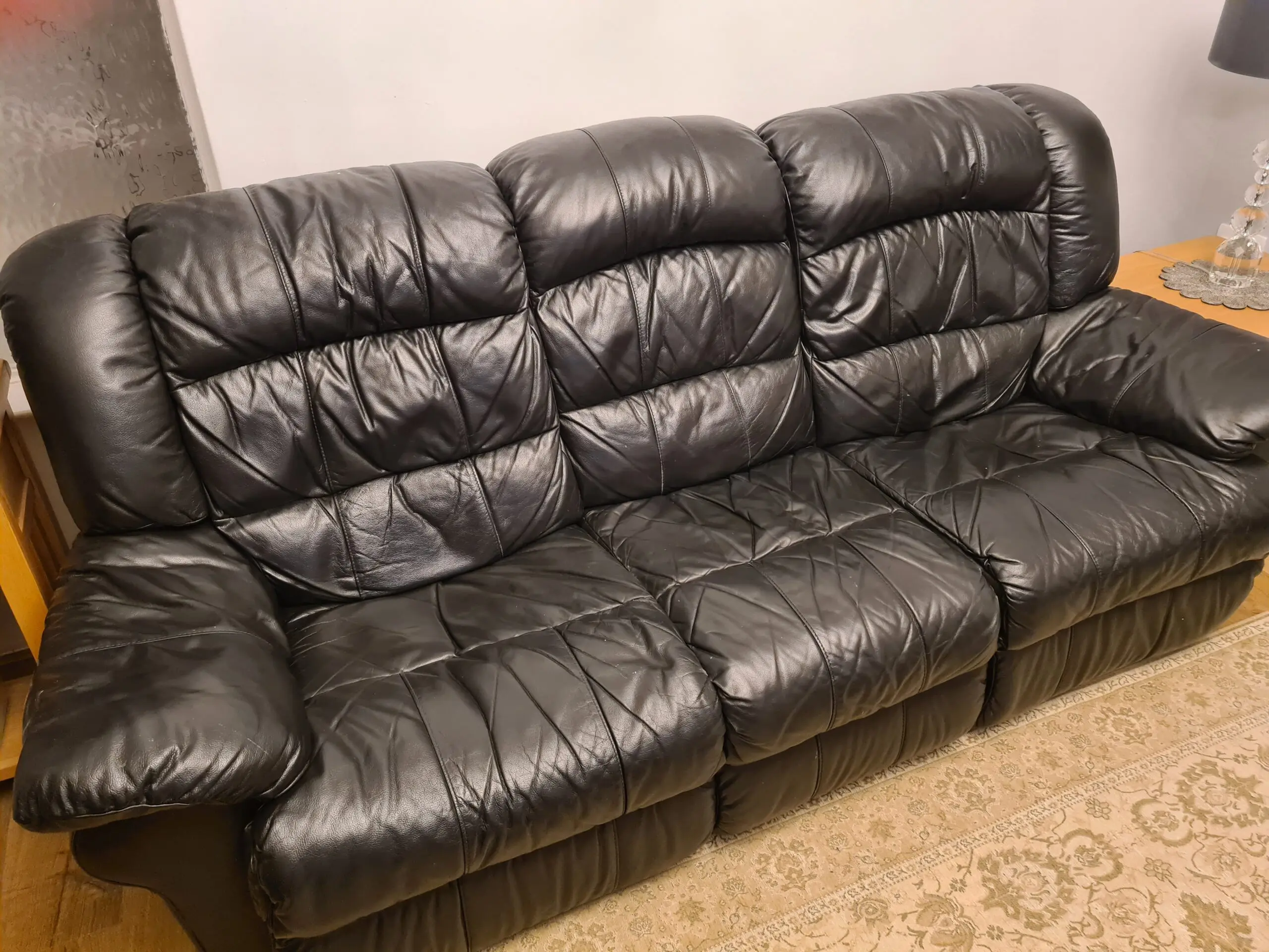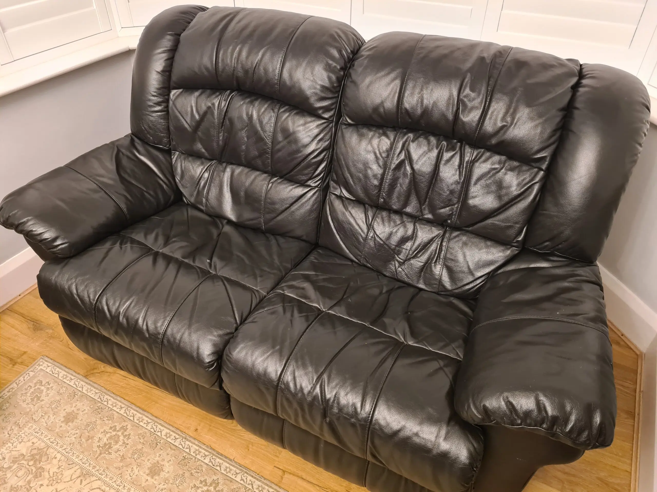 3 seater , 2 seater and 1 seater leather sofa, black, bought from DFS in good condition , easy to split each sofa