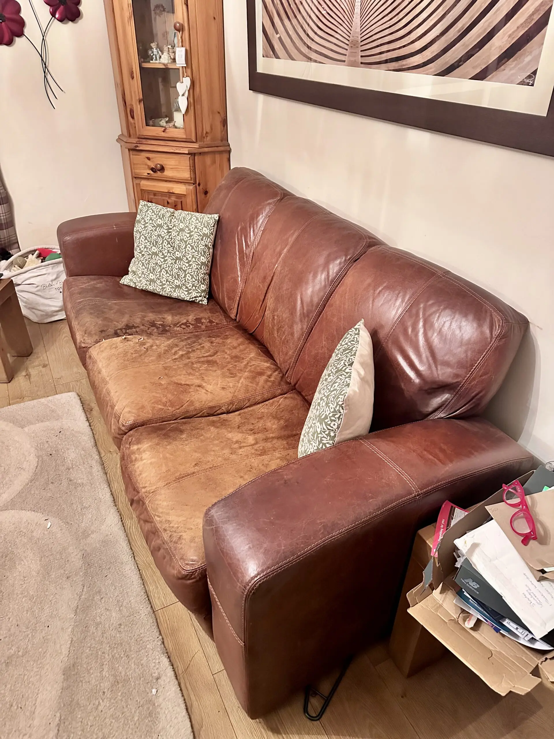 2 leather sofas, open to offers, potentially free if can collect ASAP.