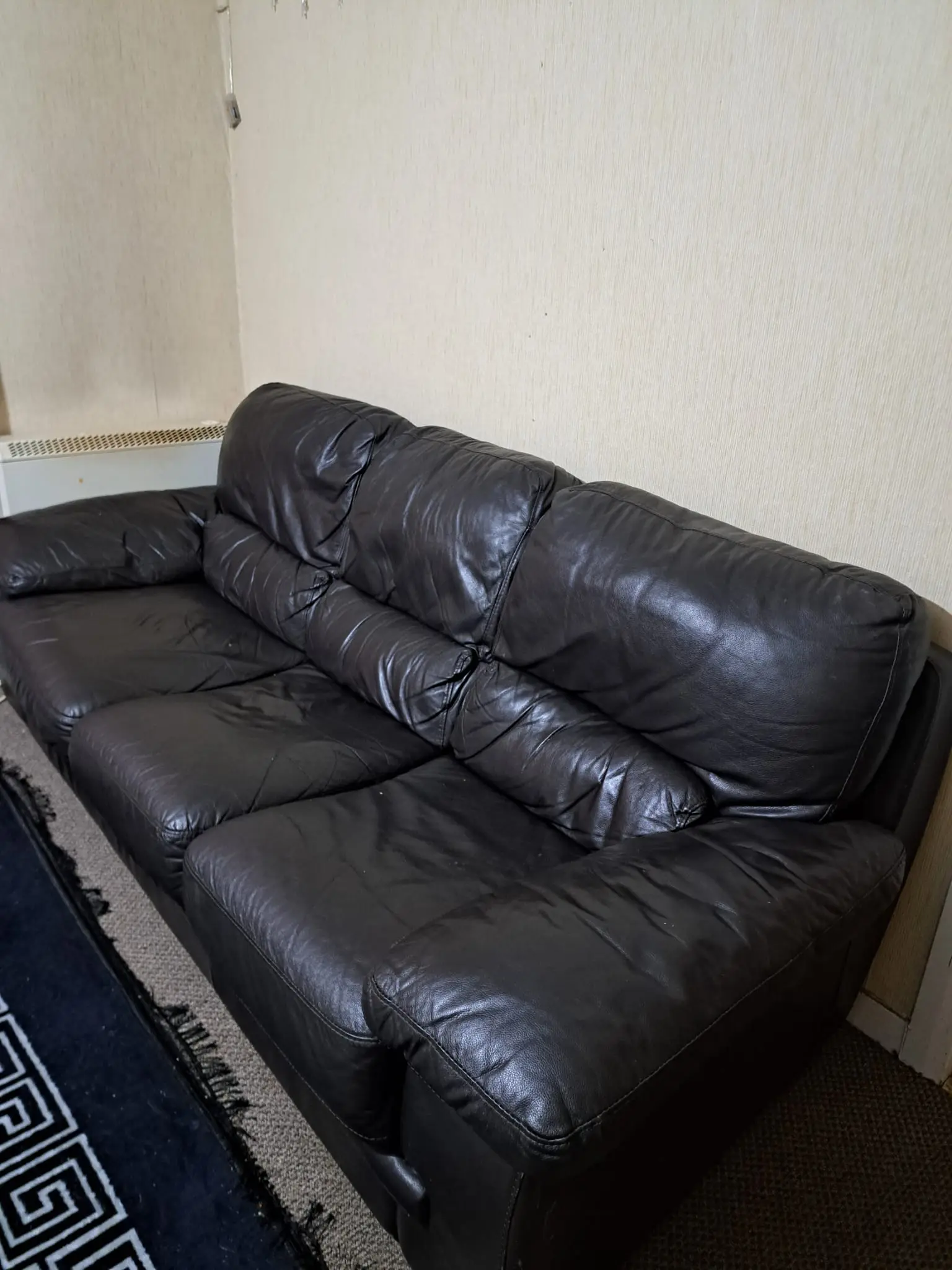 Its a very nice new looking 3 seater black leather sofa