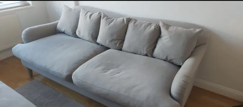 Loaf 3 seater sofa . 6 yrs old. Pet free smoke free.. child free home. It’s in woven cotton , Dove Grey colour.