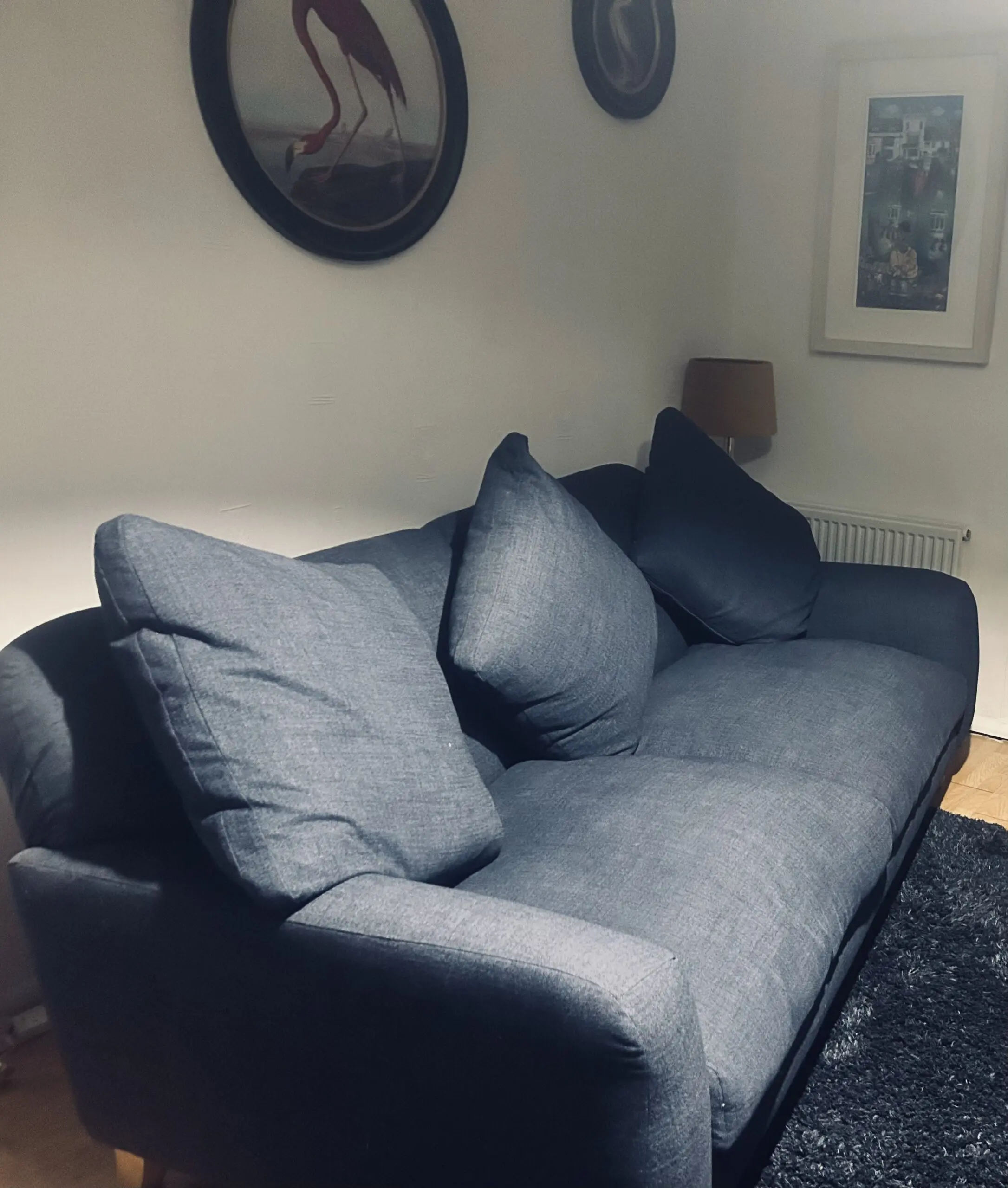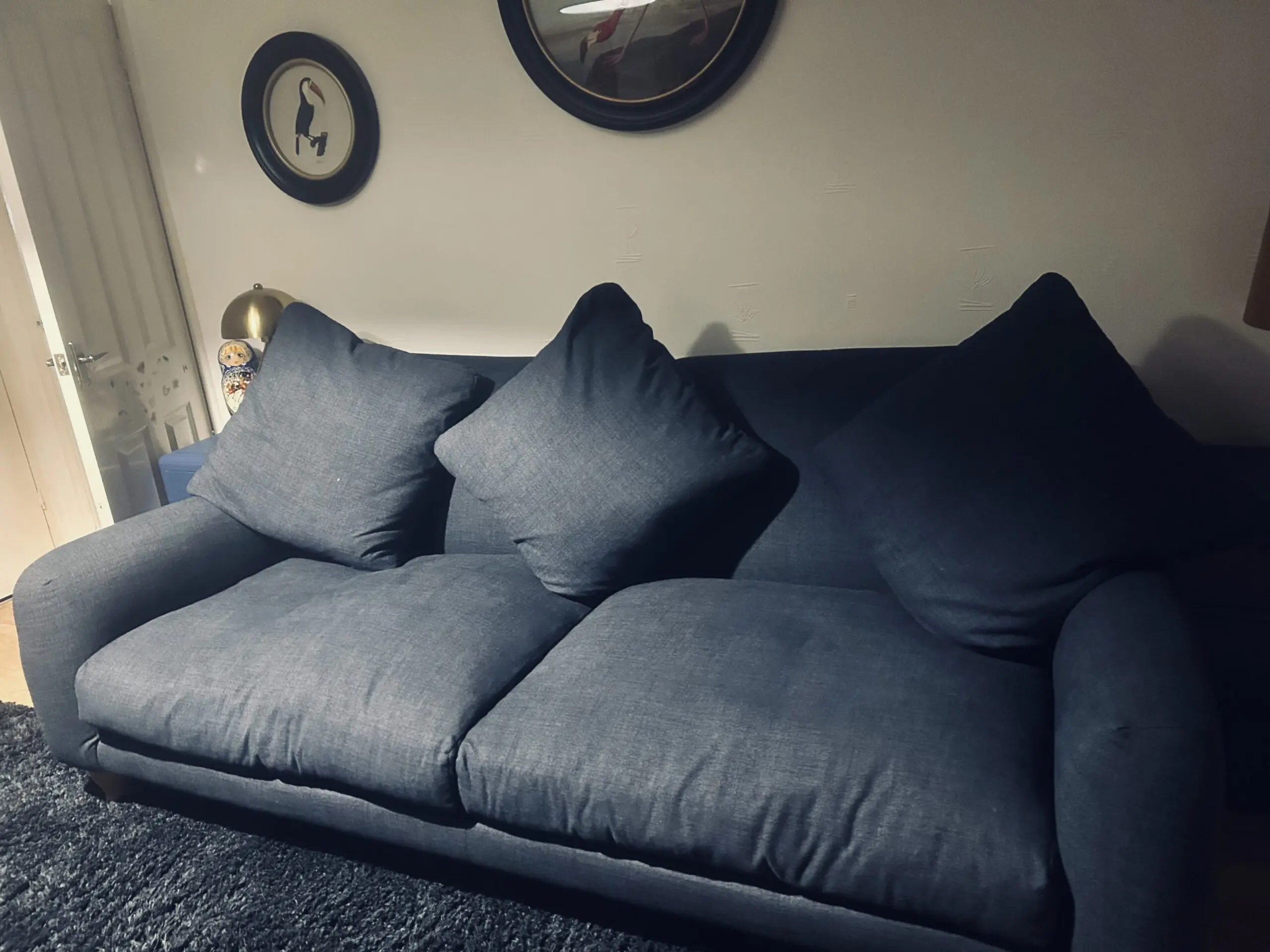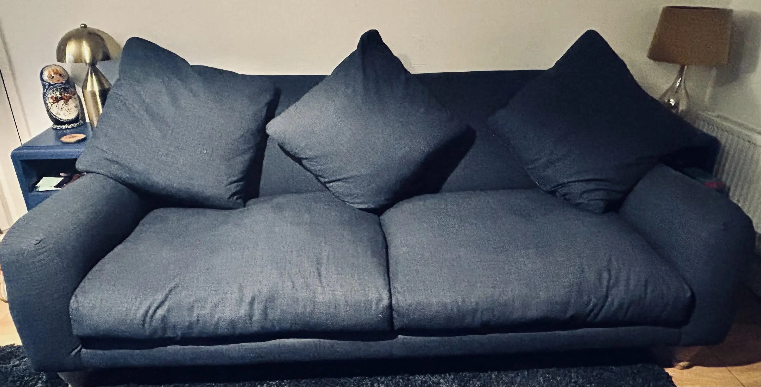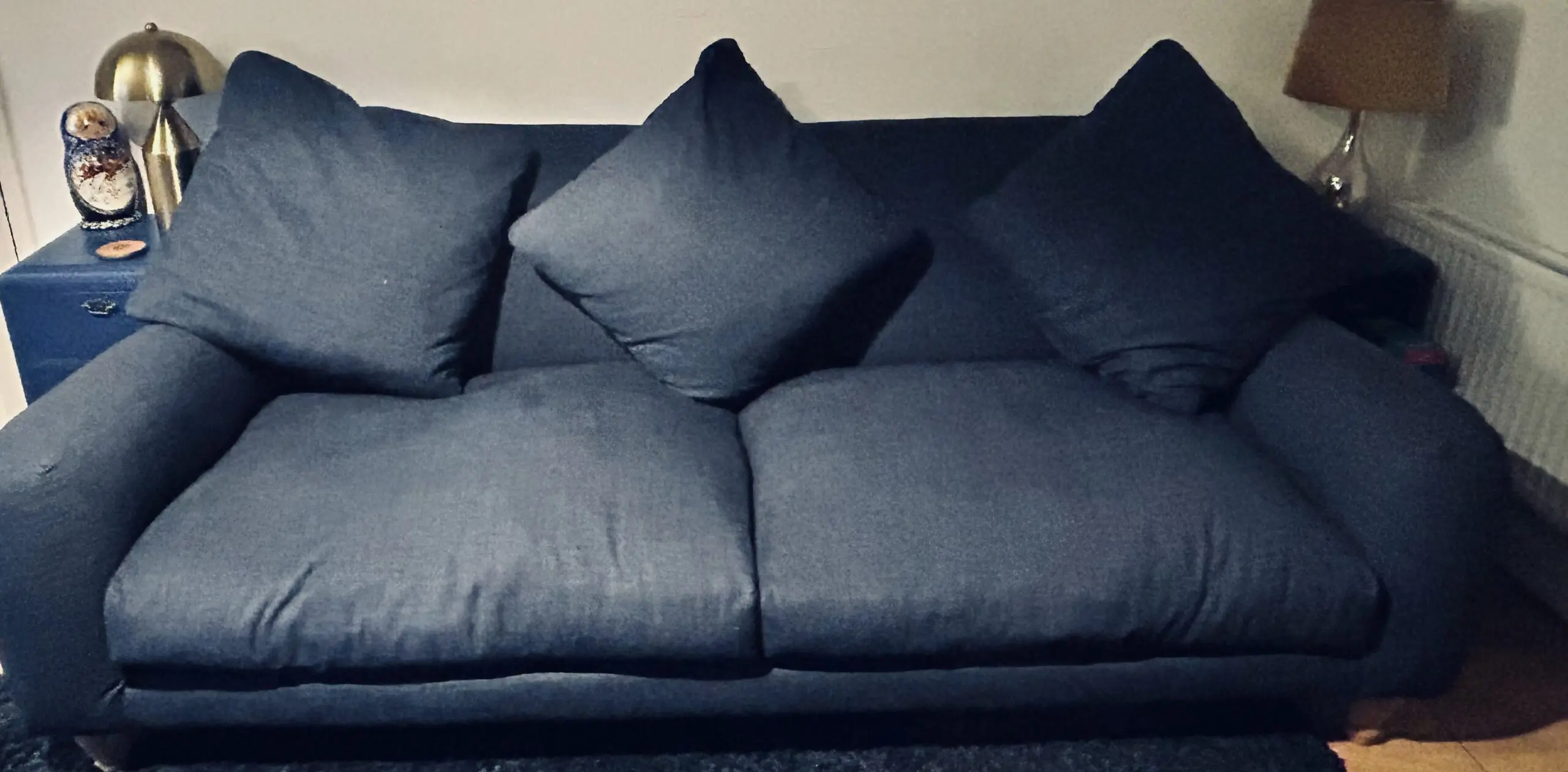 The sofa has been well cared for and remains in excellent condition for its age, with plenty of life left in it. It’s a wonderfully generous size — perfect for stretching out, curling up with a book, or hosting friends and family in comfort. While there are 3 big cushions in the picture, there are 4 in total and all will be included.