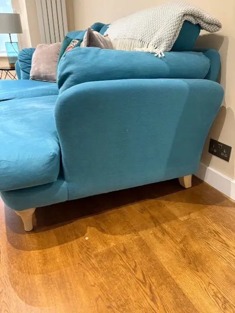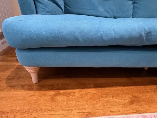 100% solid oak legs. Comes with shorter legs at the back in a sturdy design to help create a comfier sit.
