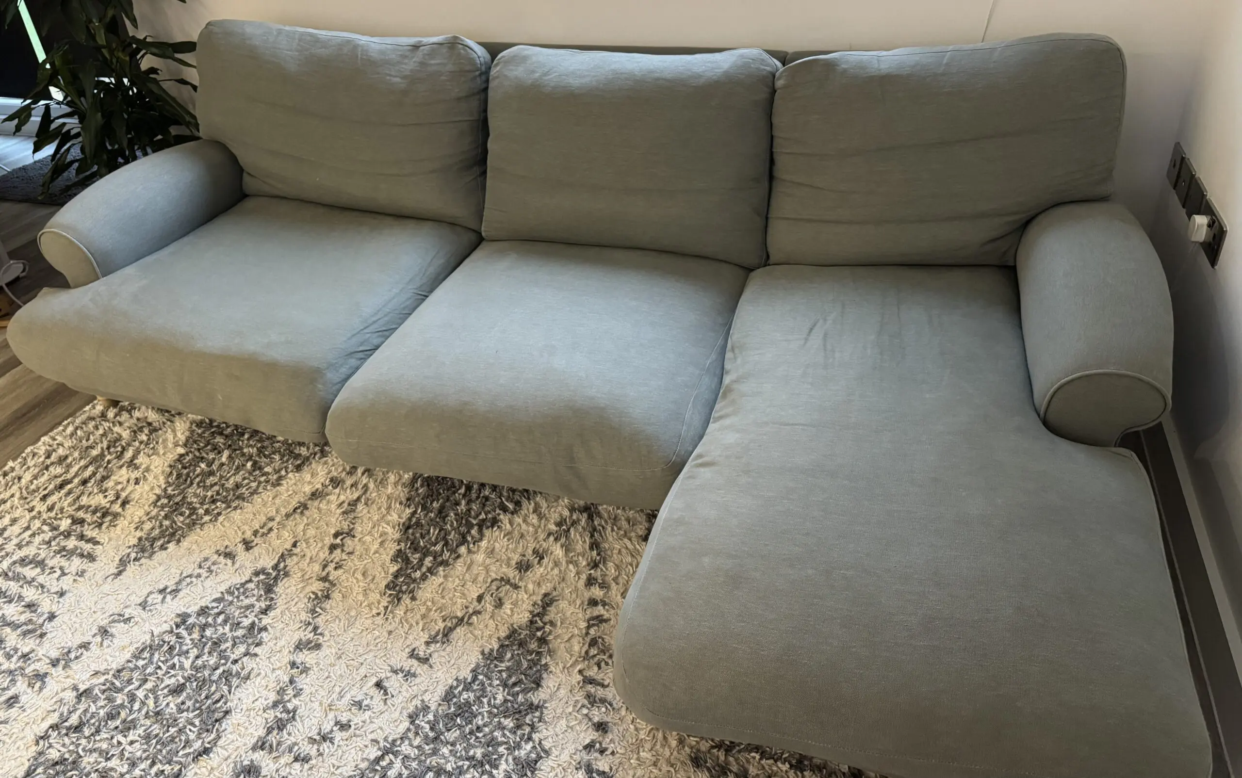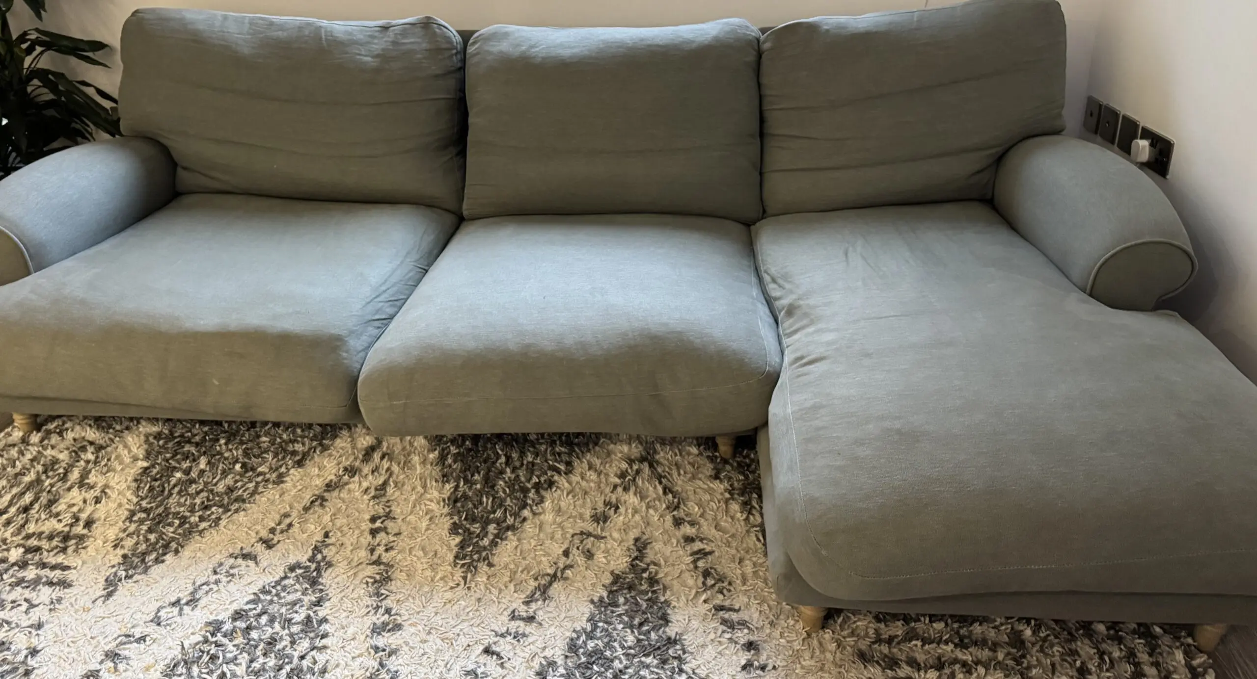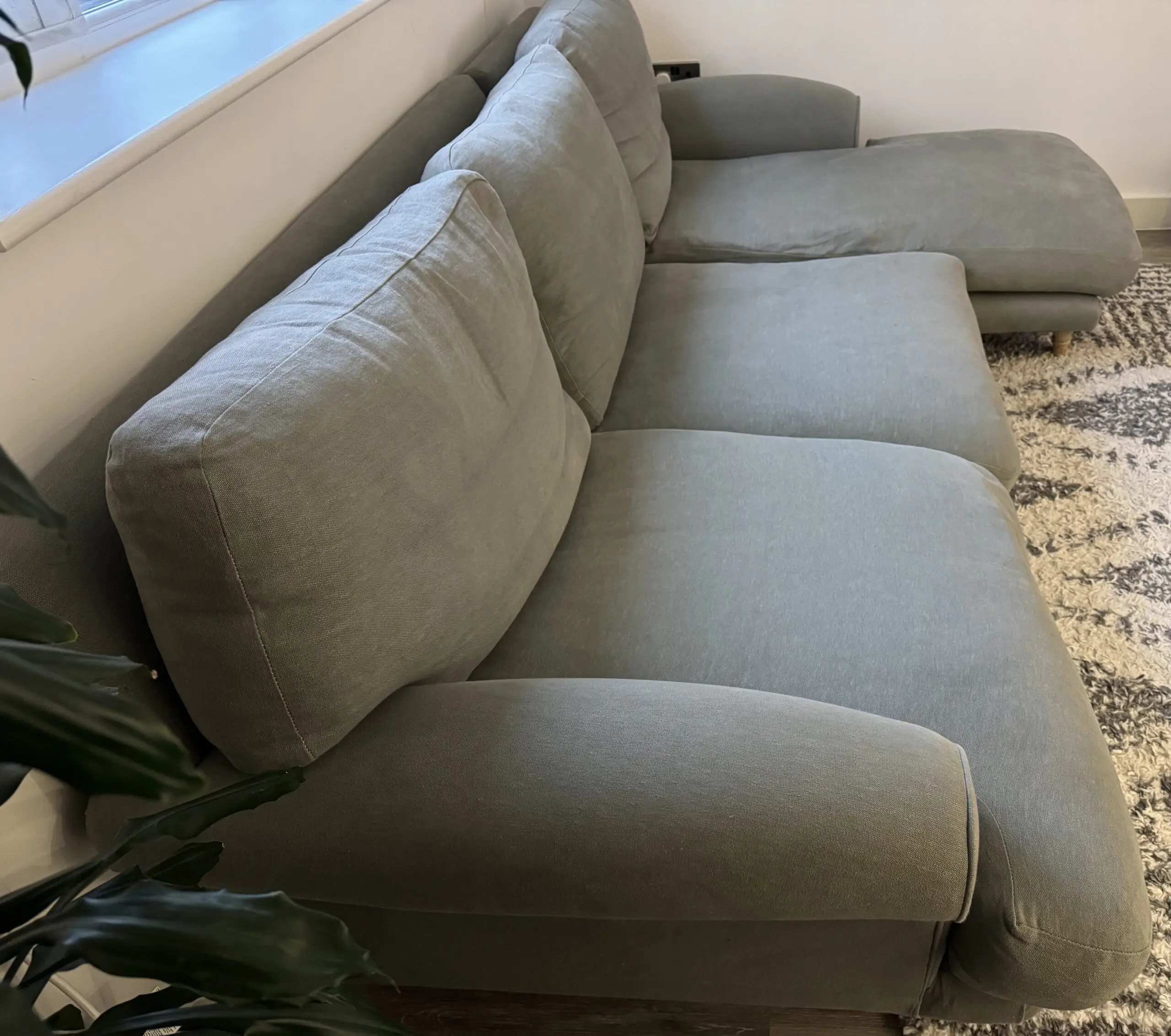 Loaf XL right hand Slowcoach chaise in Pear Drop (grey/green). Feather filled