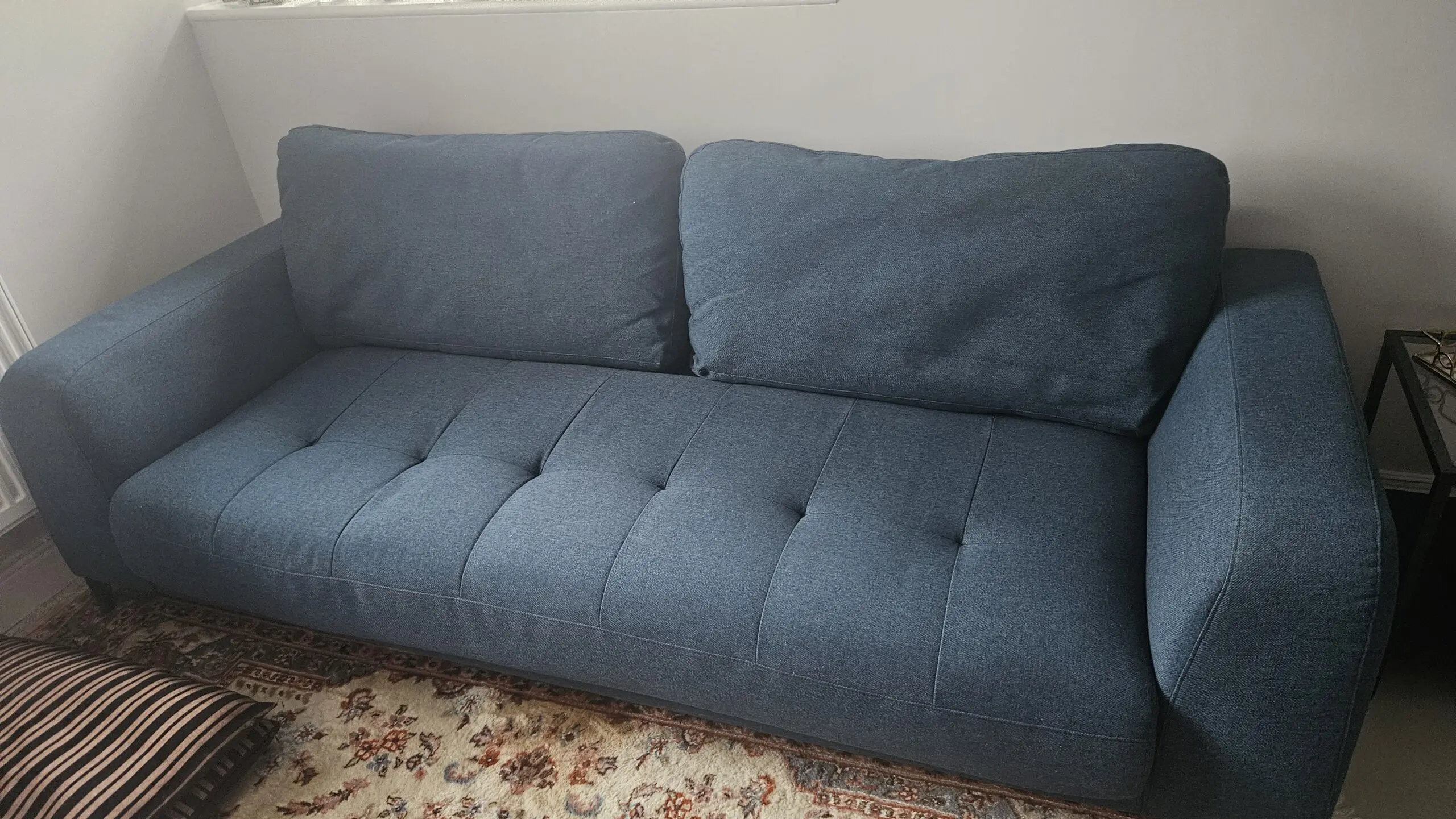 Excellent condition, lovingly used sofa(3 years only!) in the formal living room of a pet free, smoke free home, no stains, no sags, regularly fluffed back cushions.