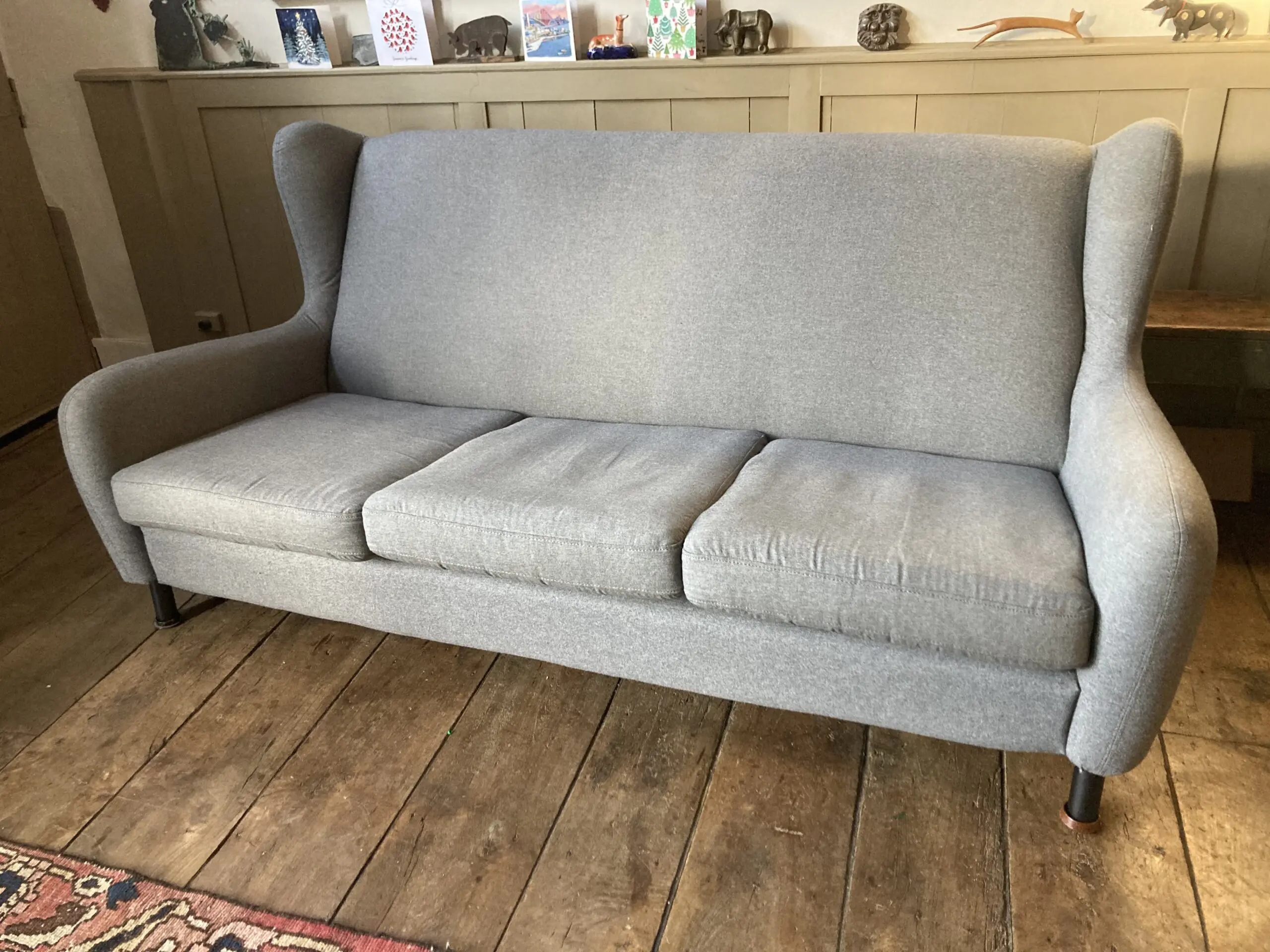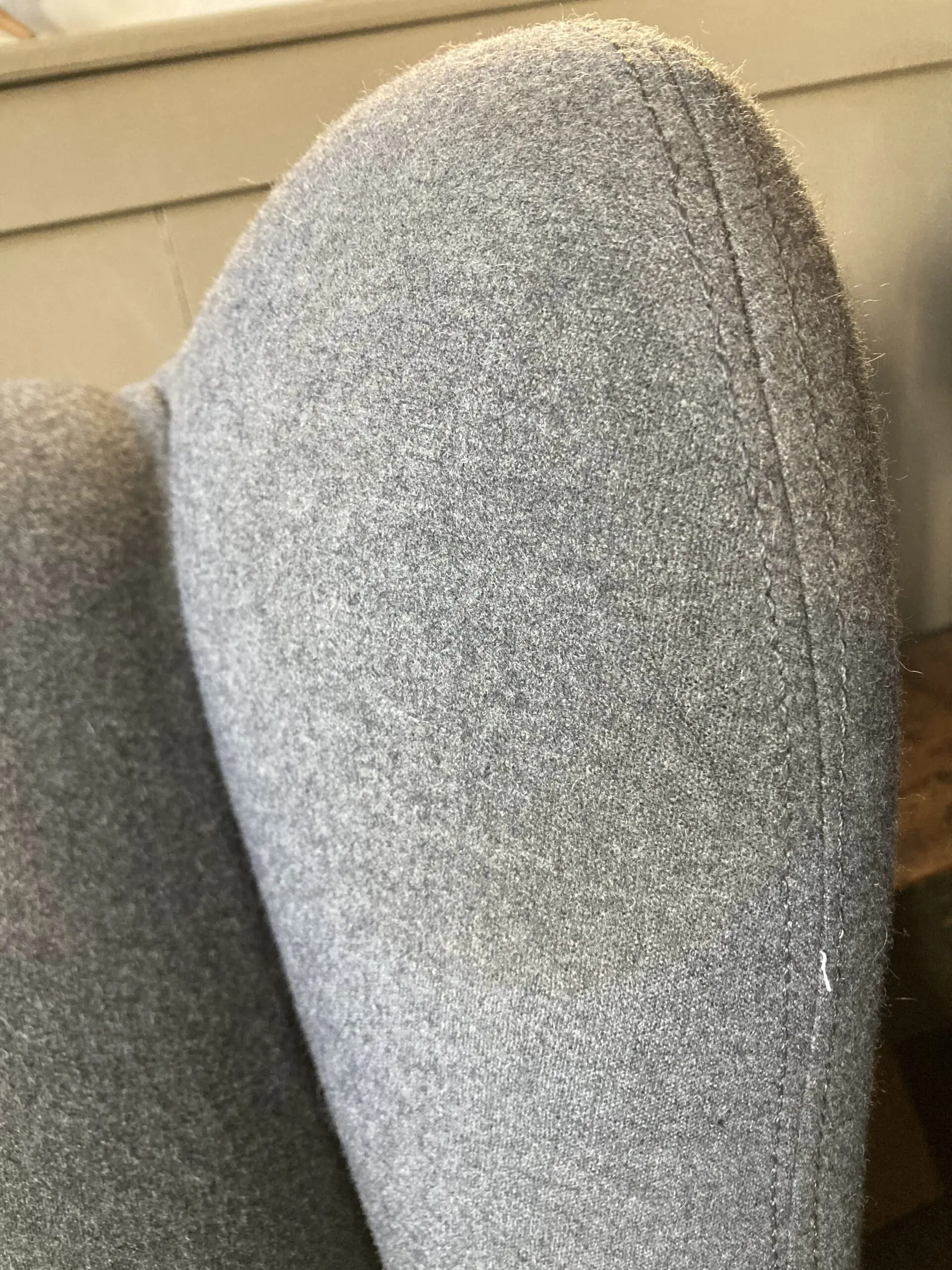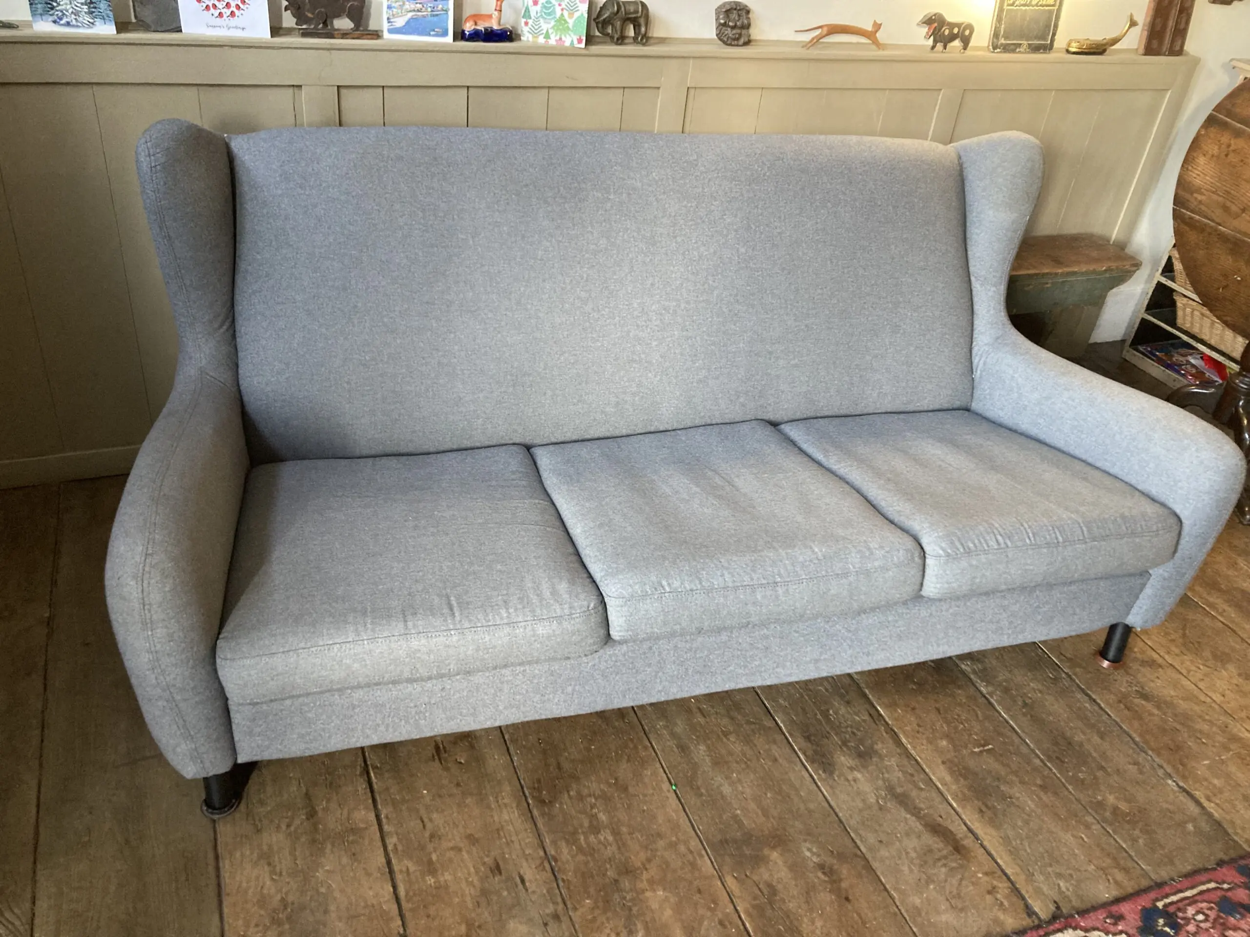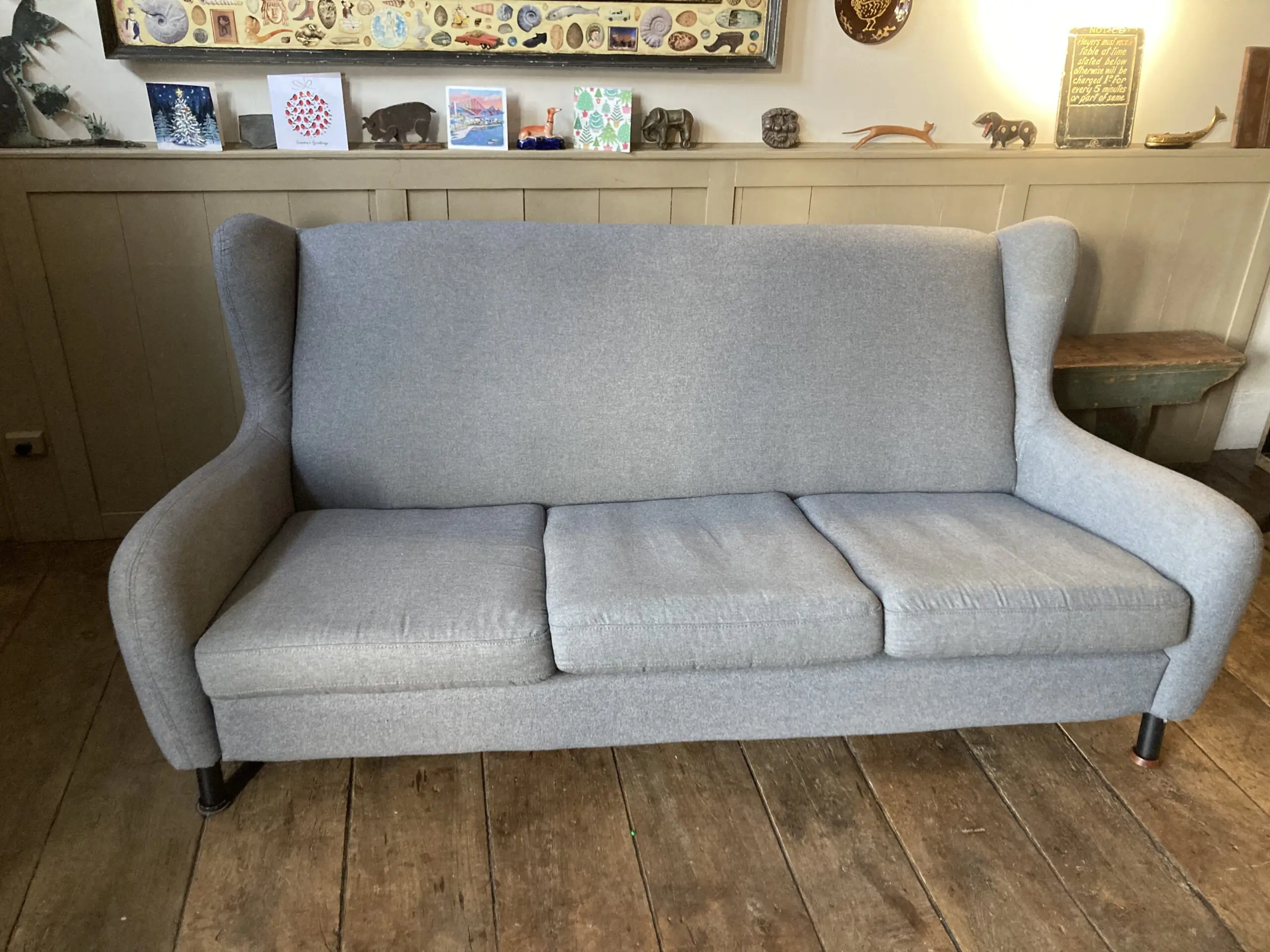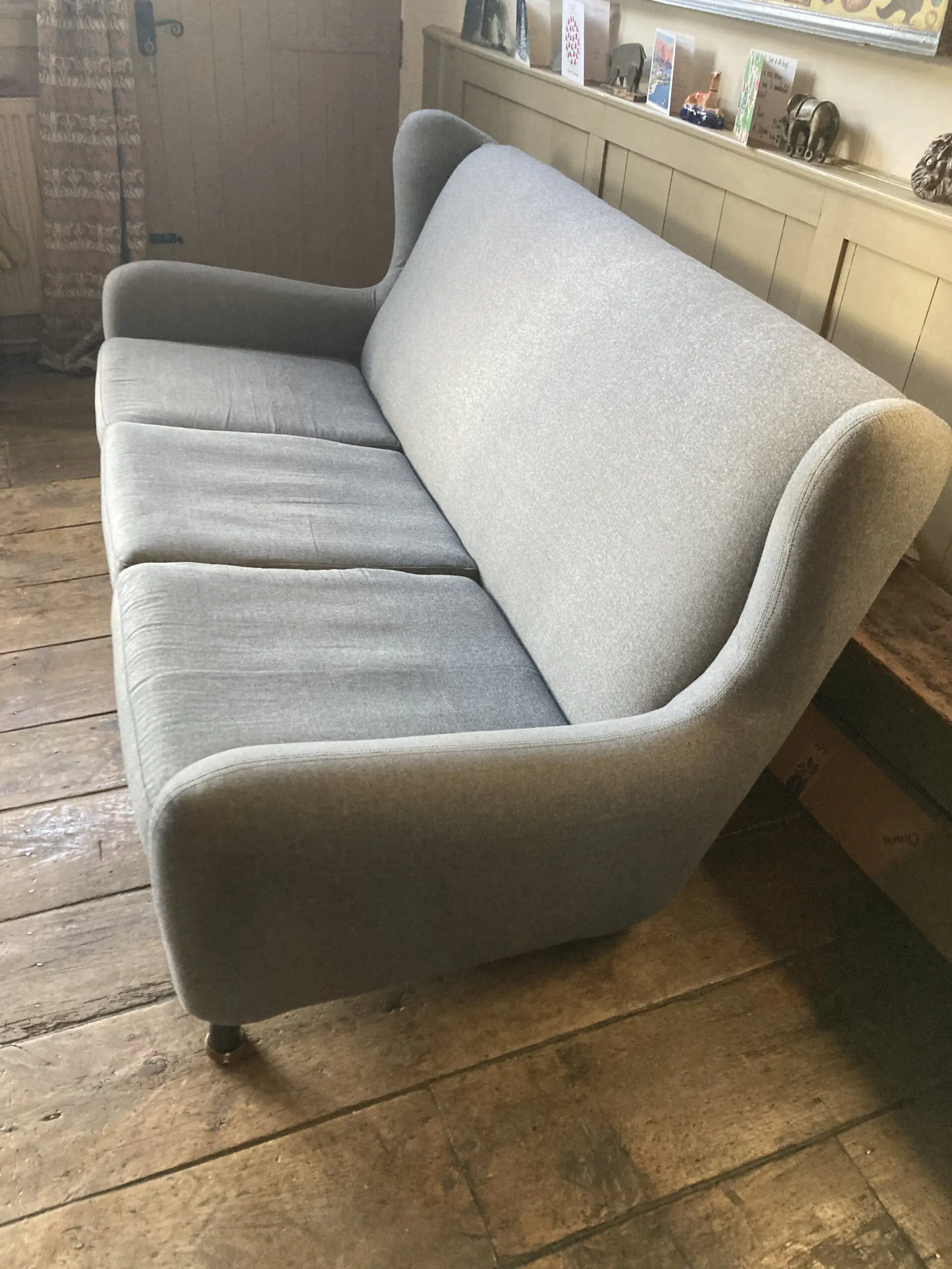 Bought around 8 years ago, smoke, young child and pet free home. Some marks and stains but not that noticeable due to dark colour. Never had it cleaned but could be. Very comfy and stylish just doesn’t fit our new front room. Some stitches coming loose could be repaired but doesn’t appear to be getting worse.