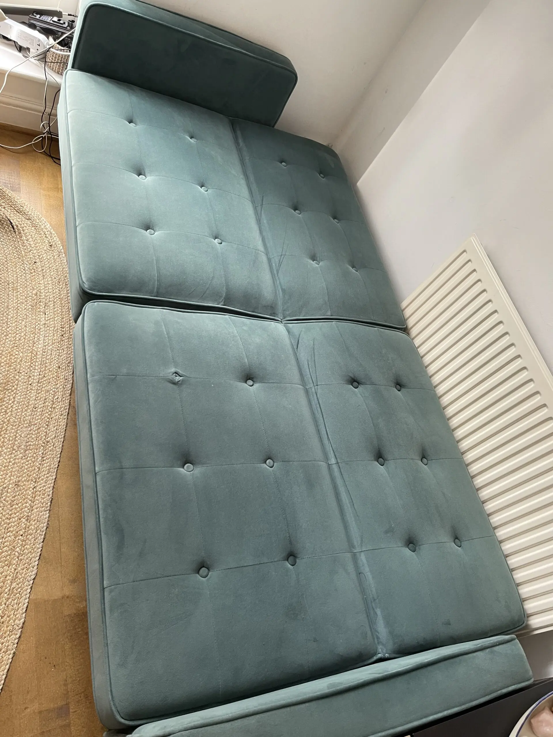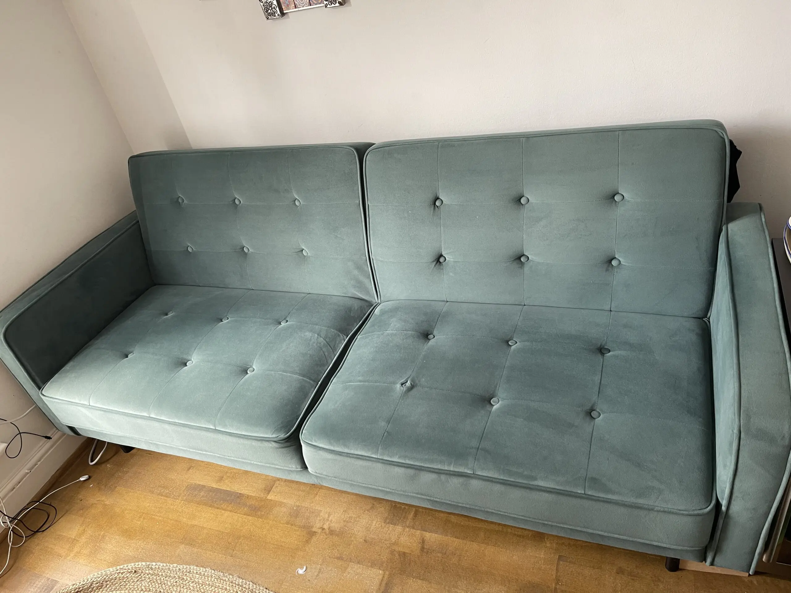 This stylish 2-seater sofa features classic mid-century design with elegant button-back detailing and clean lines that would suit any contemporary living space. The compact size makes it perfect for smaller rooms, flats, or as additional seating in larger spaces. Raised on sleek black legs, it offers both comfort and style with well-proportioned cushions. The timeless design and rich colour would complement both modern and traditional décor schemes beautifully.