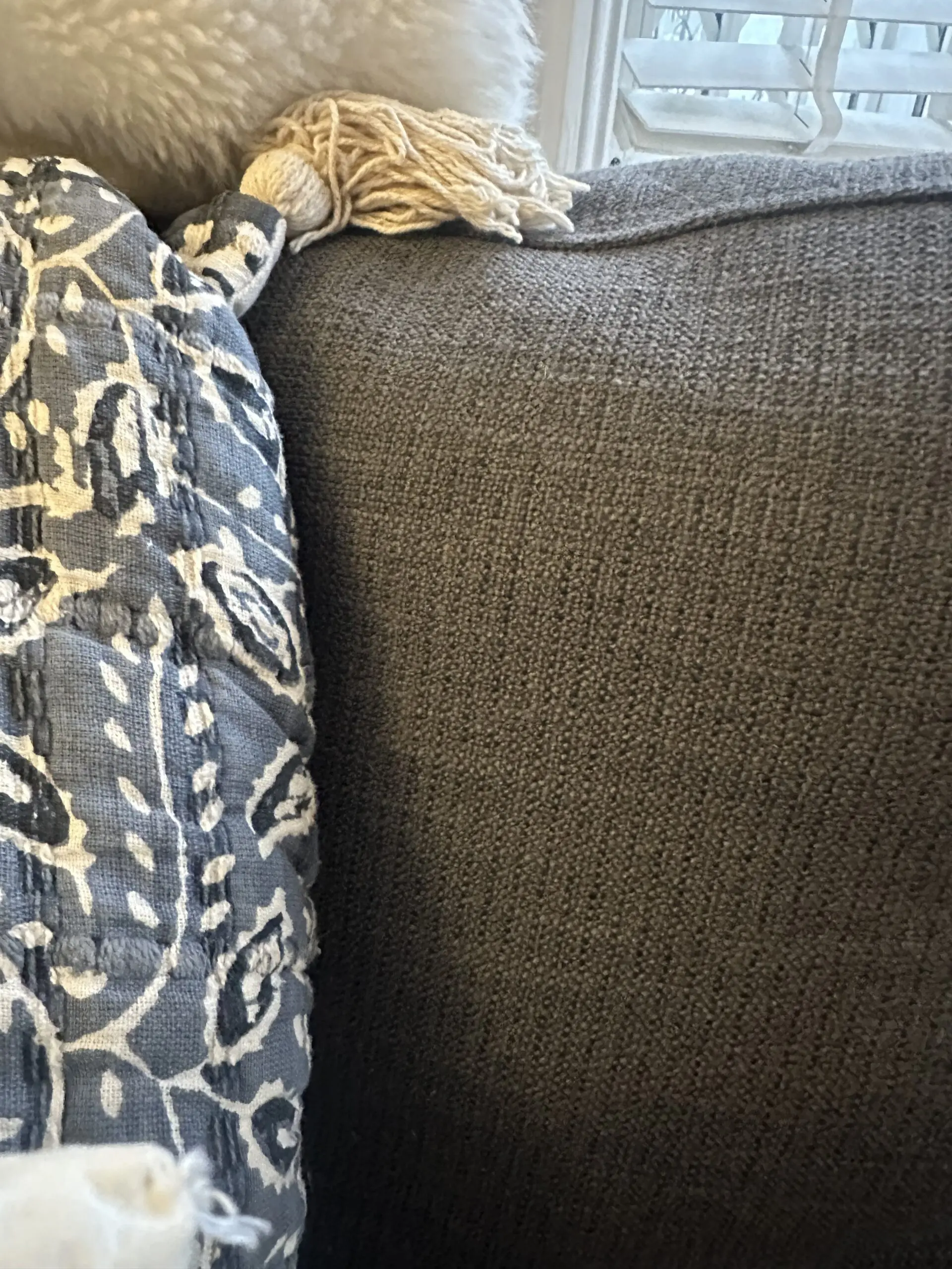 • Upholstery: Durable “Oyster Grey” flat-weave fabric.
