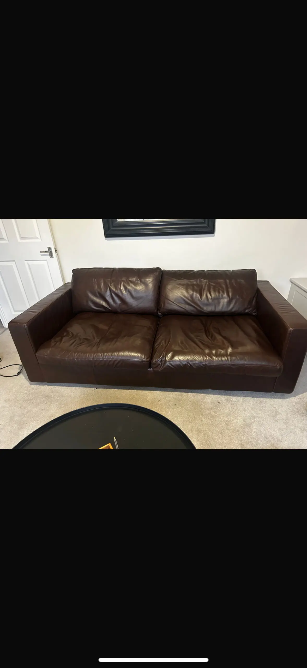 Brown leather three seater sofa from Marks and Spencer.