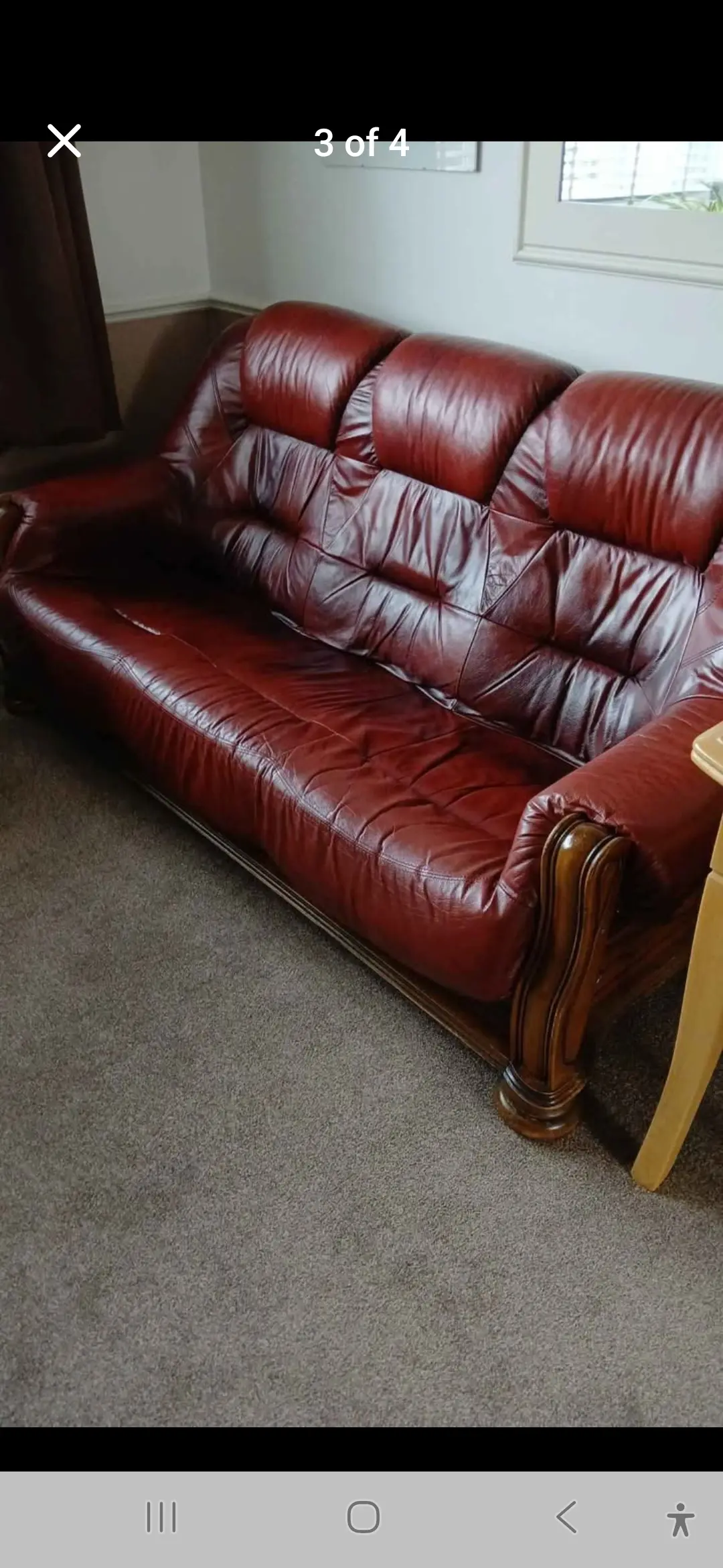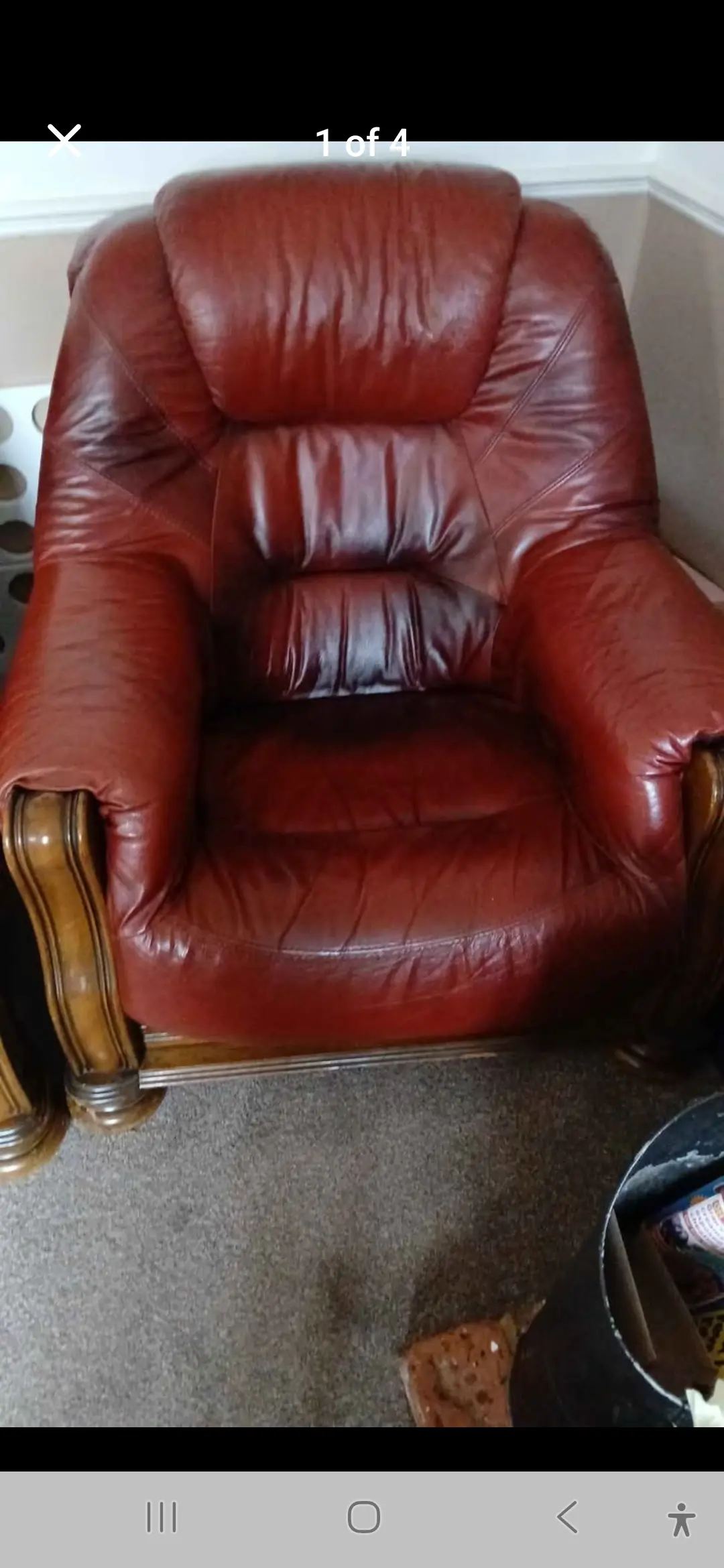 Originally from Belgium good quality leather no rips or marks or wearing a few marks on wood based from moving very comfortable