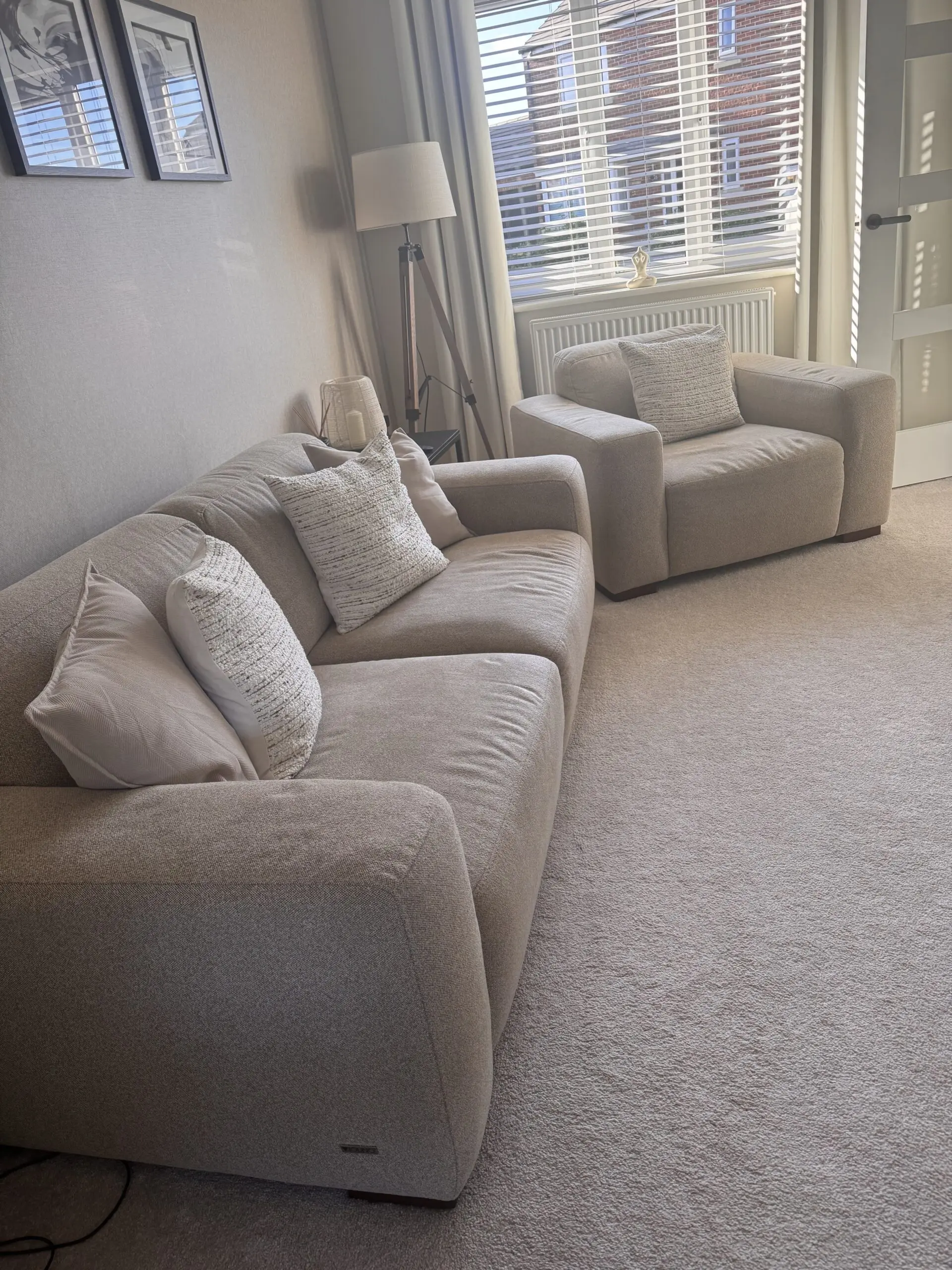 Bought this 10 months ago when I moved into my new house as my previous sofa was delayed by 3 months and had to cancel it. It’s not the sofa I wanted as I wanted a corner sofa which I have bought. The sofa to buy new was £799 and the chair £549