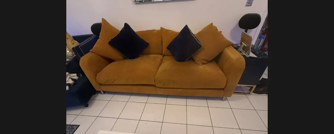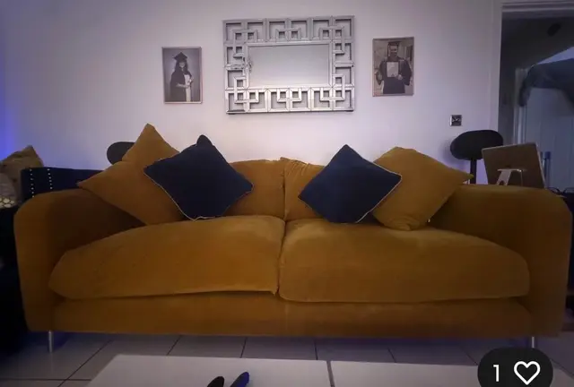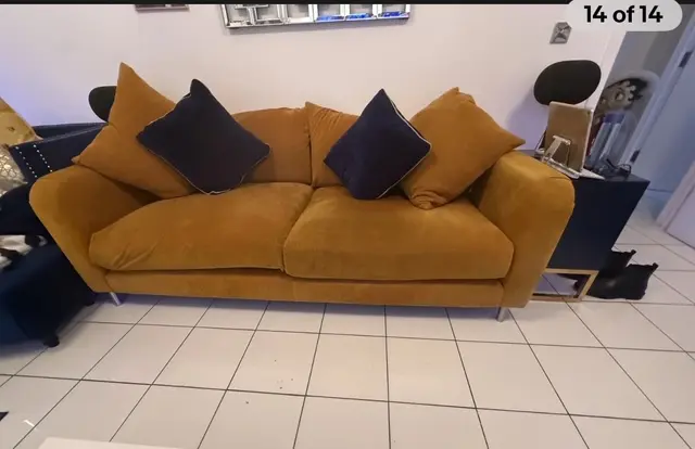 Mustard Colour: Sofology features yellow/mustard sofas, a popular choice for adding warmth and personality, pairing well with grey or navy tones.