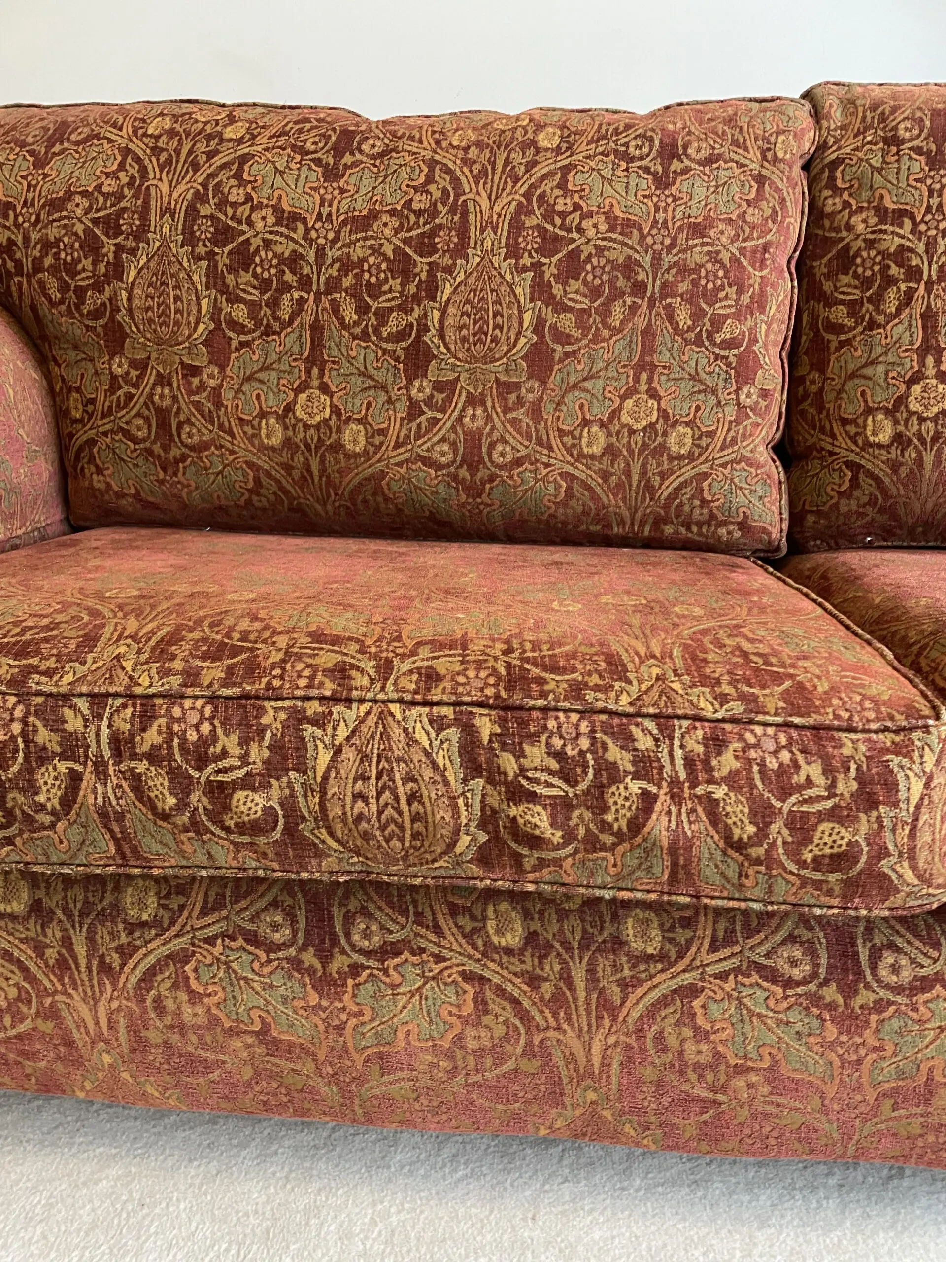 Fantastic condition and very comfy original MultiYork sofa. It has been seldom used as located in a second room and was originally protected with Guardsman fabric protection. The additional arm caps have helped maintain the original condition.