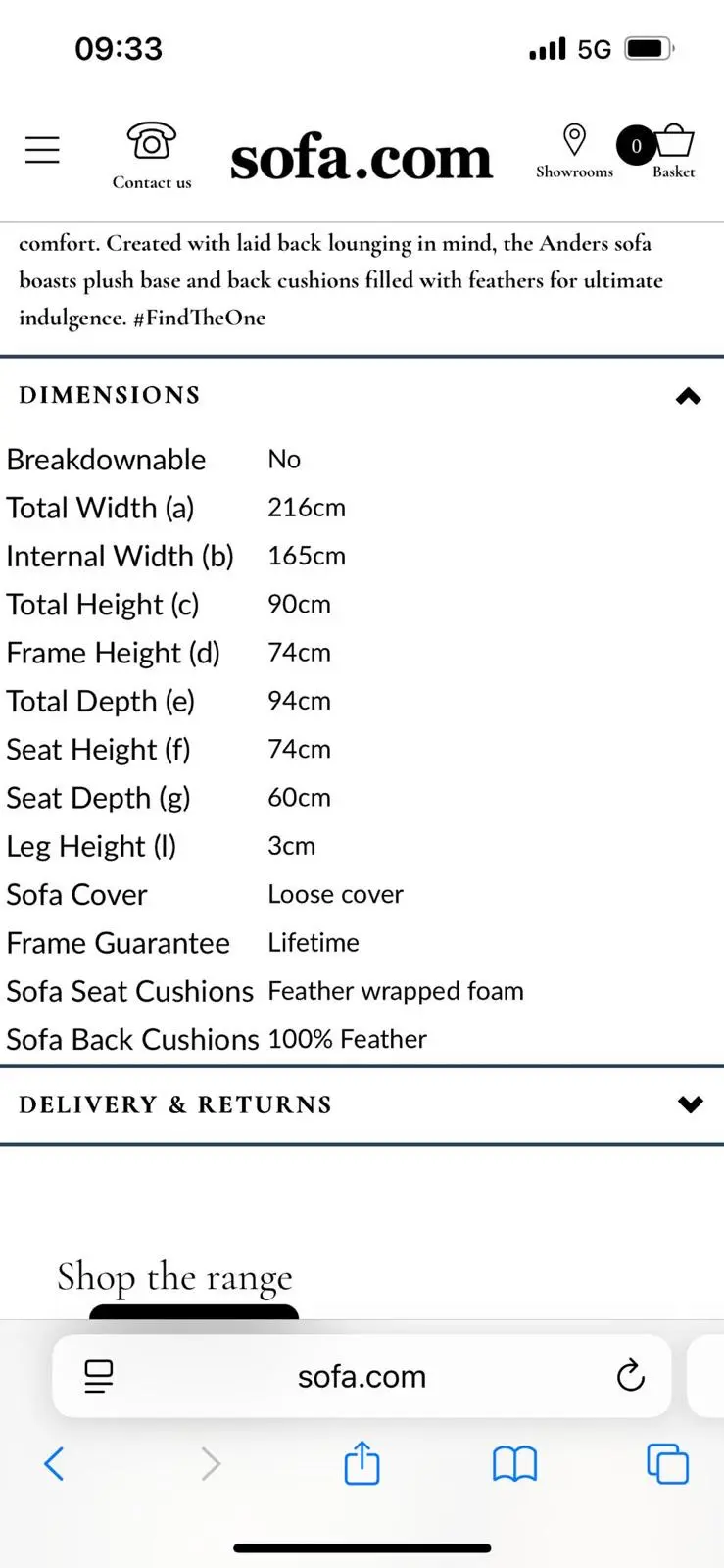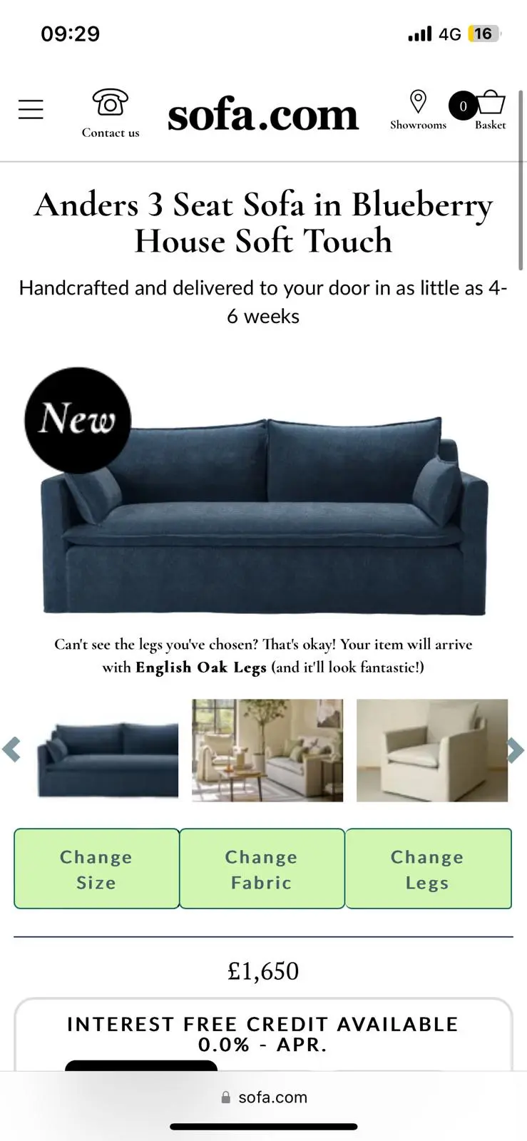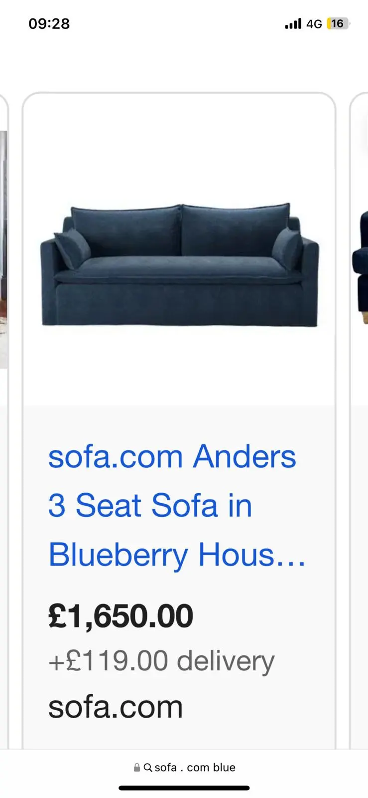 Sofa.com Anders/Isaac 3 seater sofa in midnight blue linen
