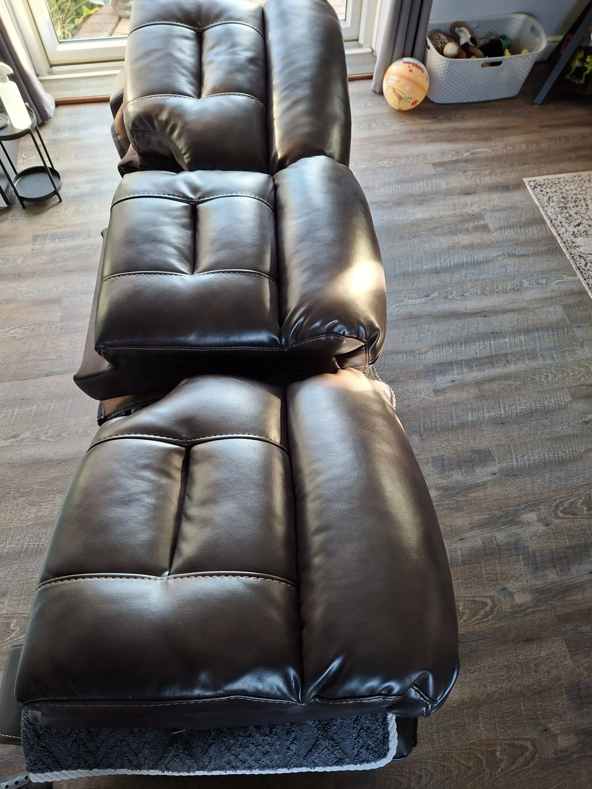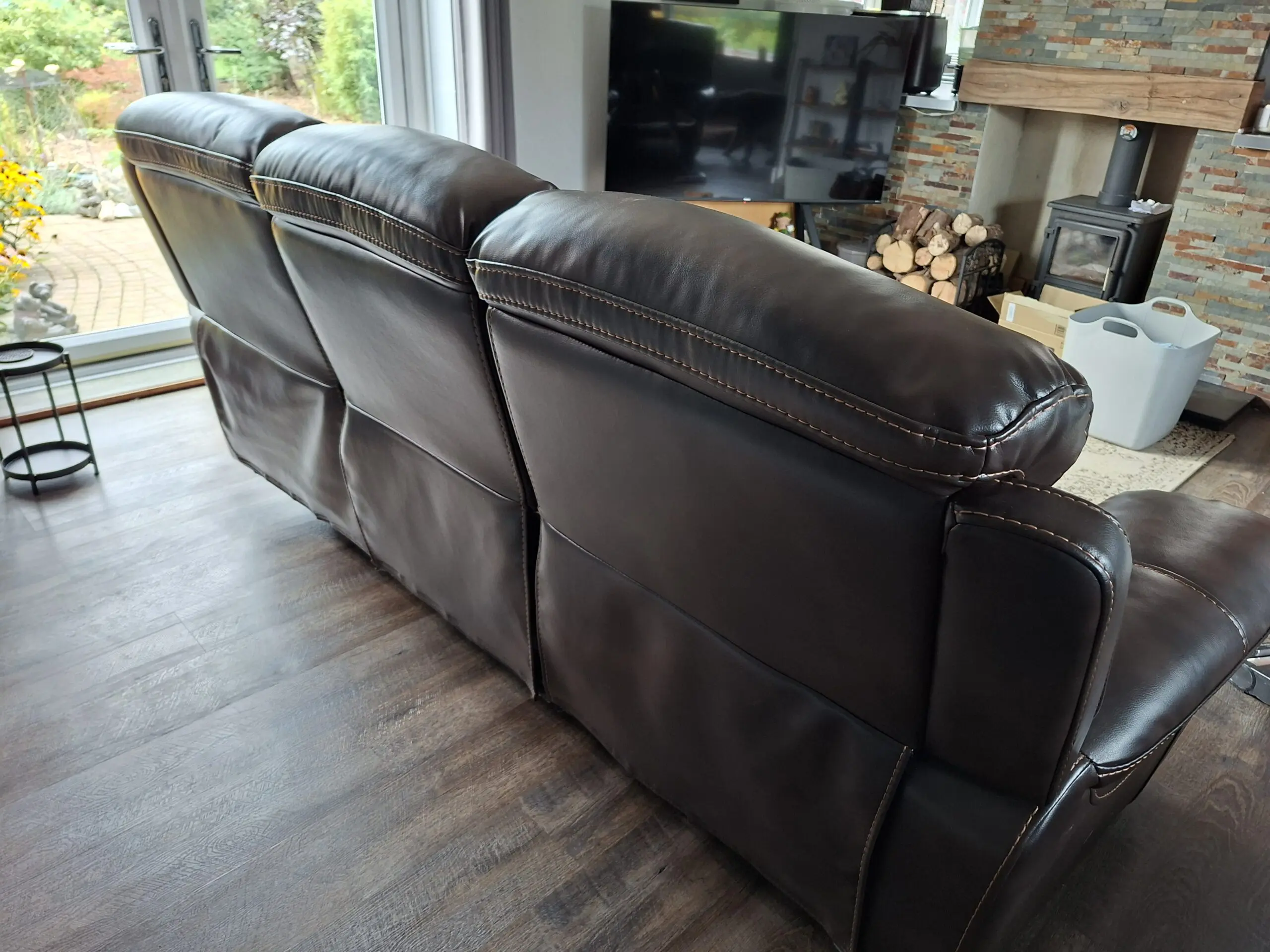 3 seater sofa, in great condition, pics do not do it full justice,no rips, tears or marks, always been protected by covers. Both ends have fully working manual recliners. The back of the seats can be removed for easier transportation. Grab a bargain it cost us around £700.
