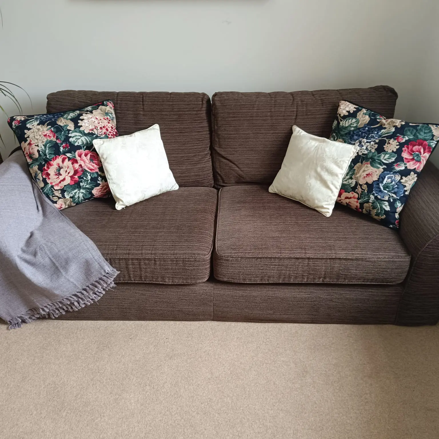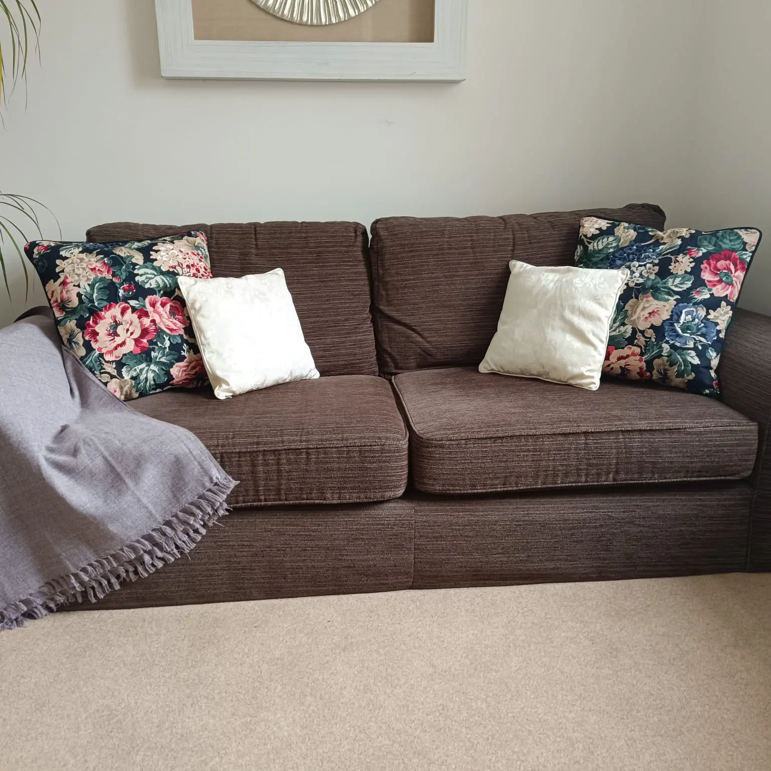 This Next brand Brown sofa is a 3-seater couch in excellent condition. It is a piece made in the United Kingdom with corduroy upholstery fabric. The classic round arm style and floor-level features make it a stylish addition to any living room. With no additional parts or assembly required, this sofa offers a cosy seating option for adults. Stylish and comfy, great addition to any lounge.