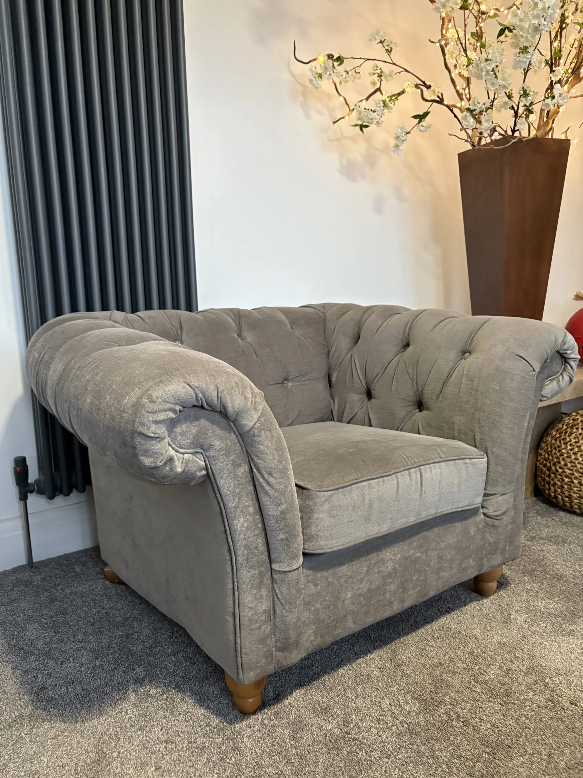 Next Gosford chesterfield 3 seater sofa and chair in colour grey for sale: this sofa is in excellent condition