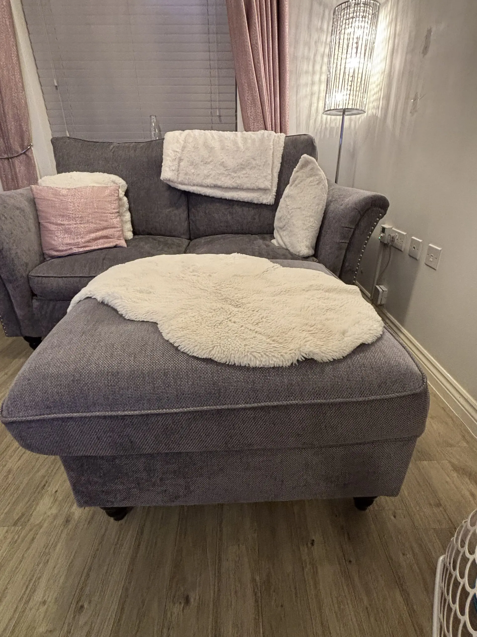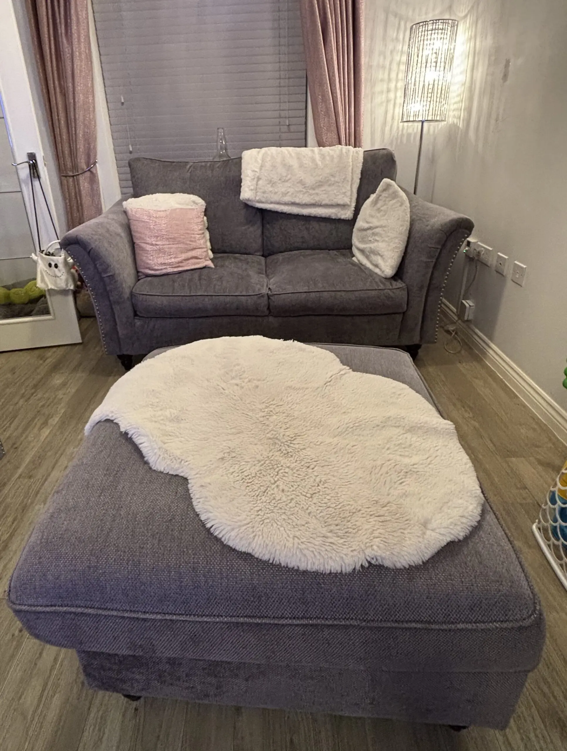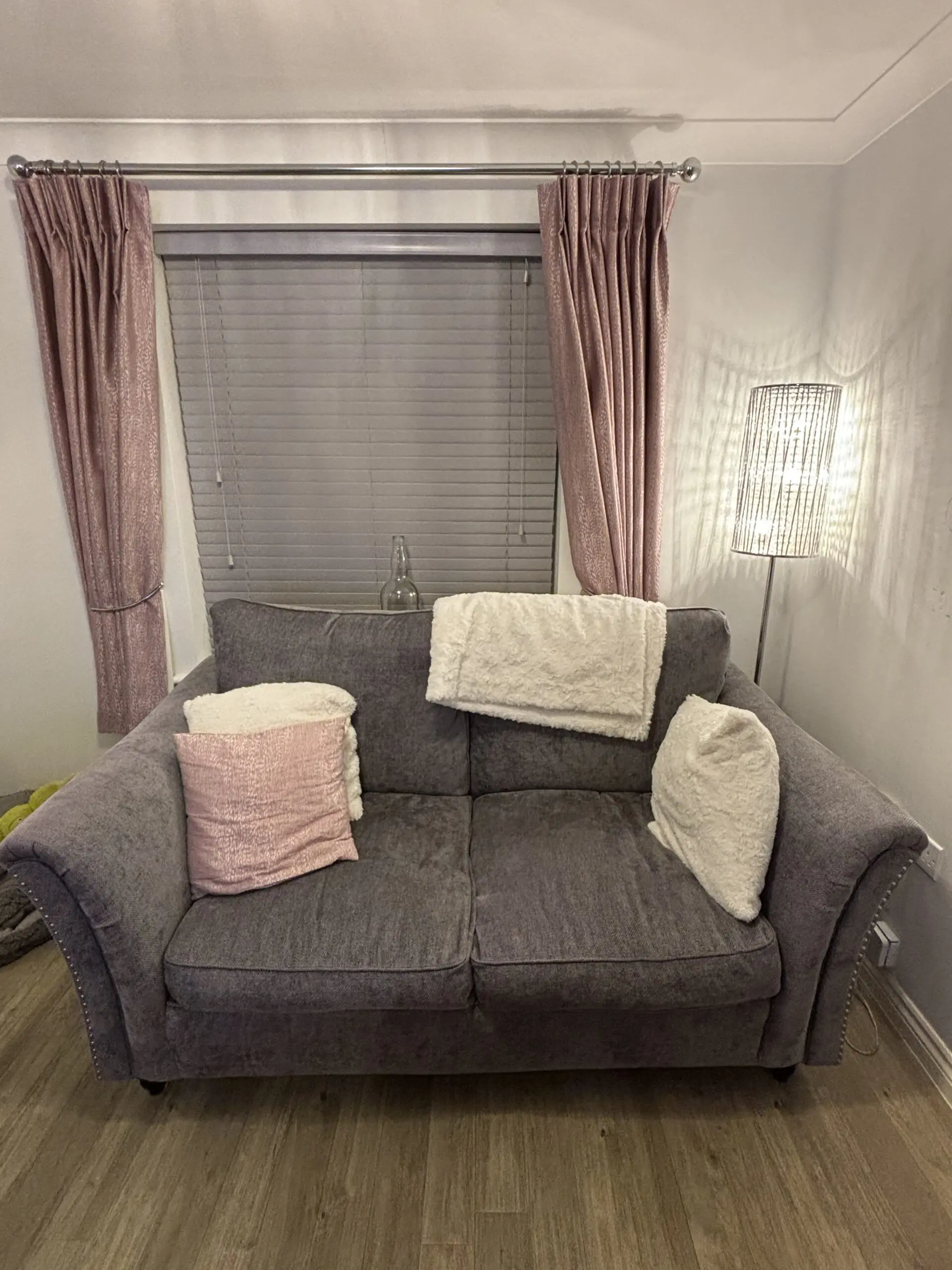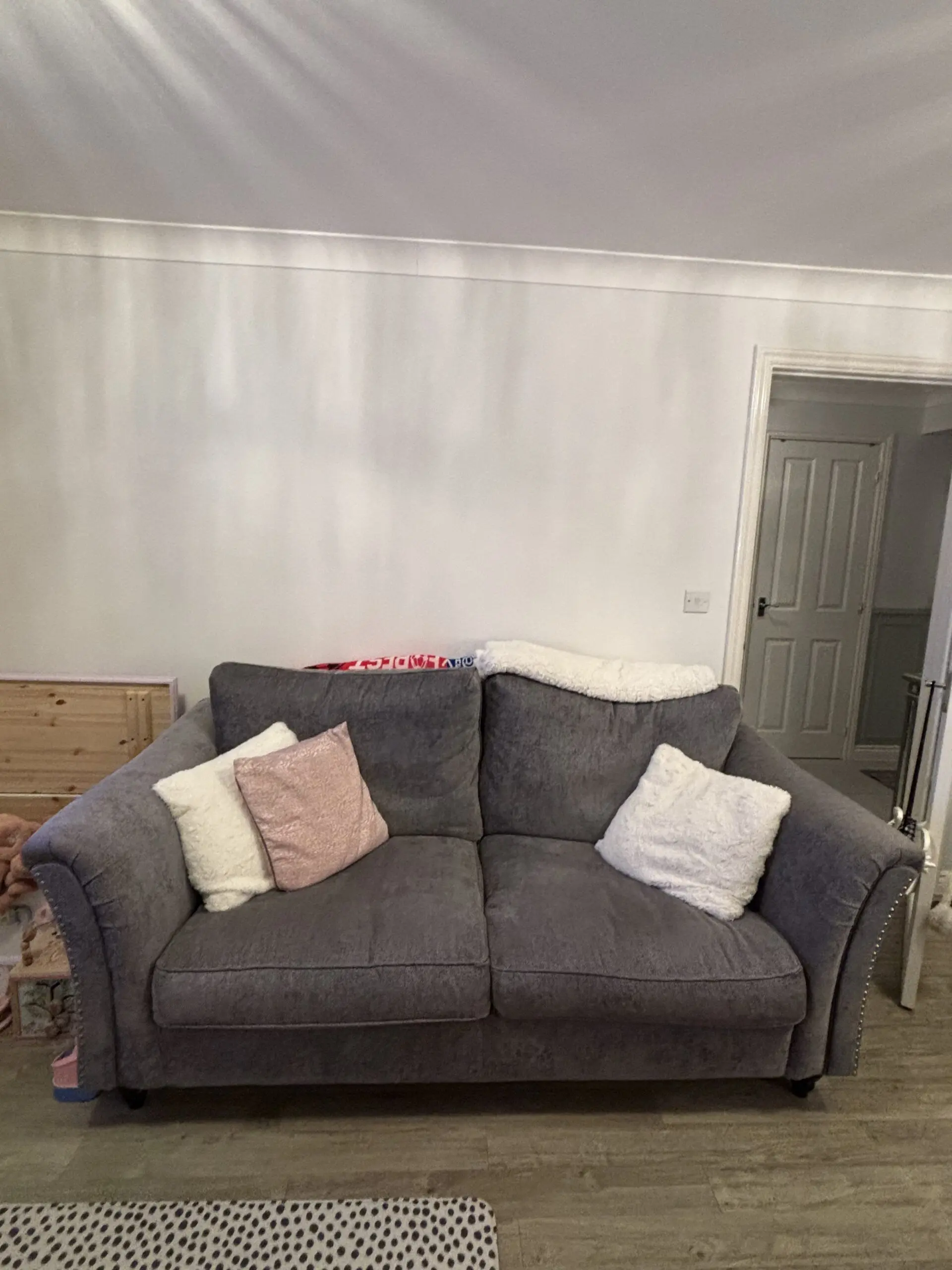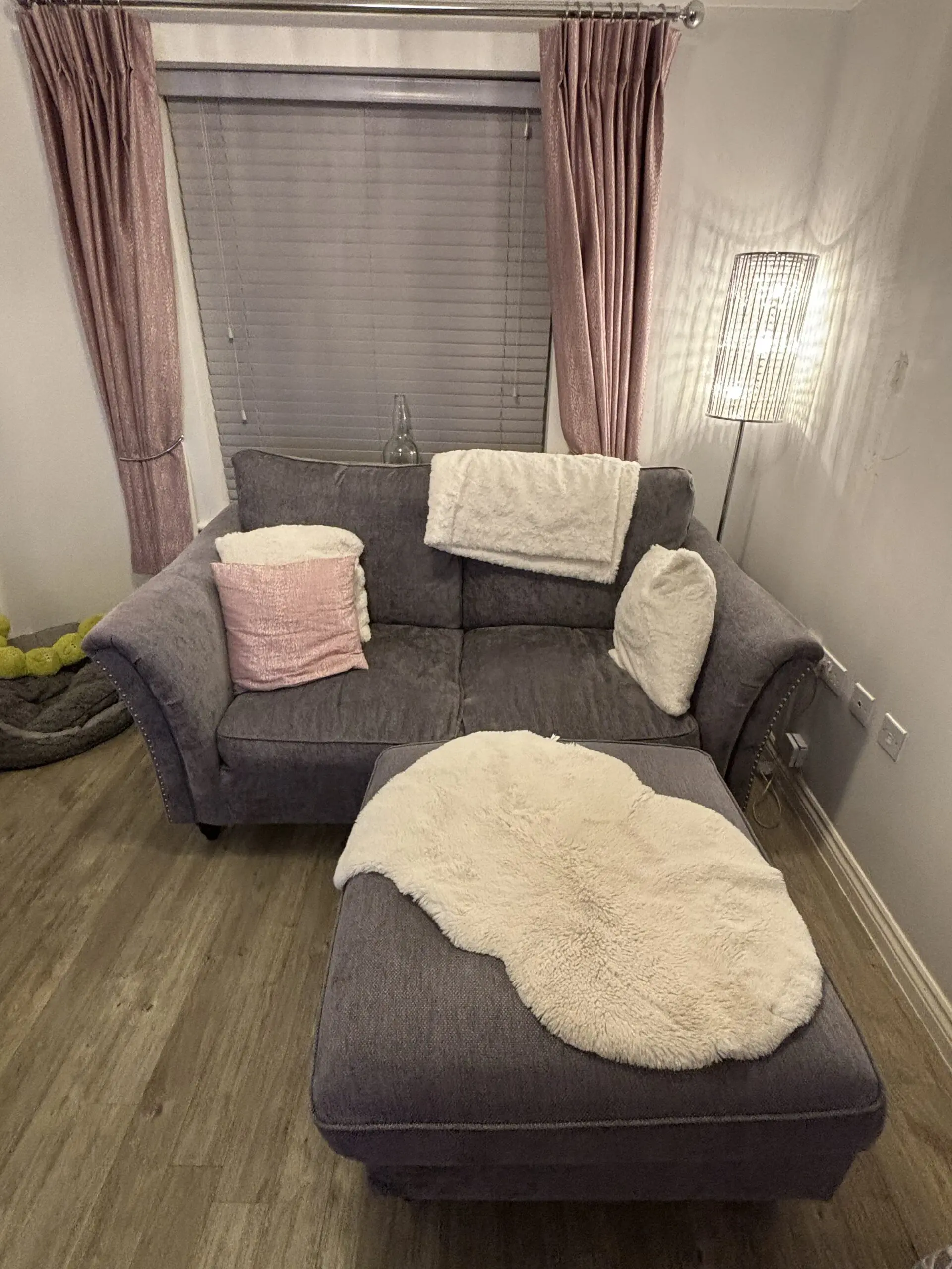 We have a 3 seater sofa, 2 seater sofa and matching foot stool for sale. In excellent condition barring one mark at the back of the 2 seater sofa
