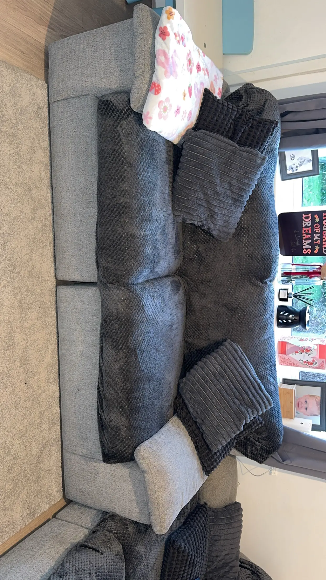 Oak furniture land grey Morgan sofa, I have two 3 seaters, include cushions and the grey blankets