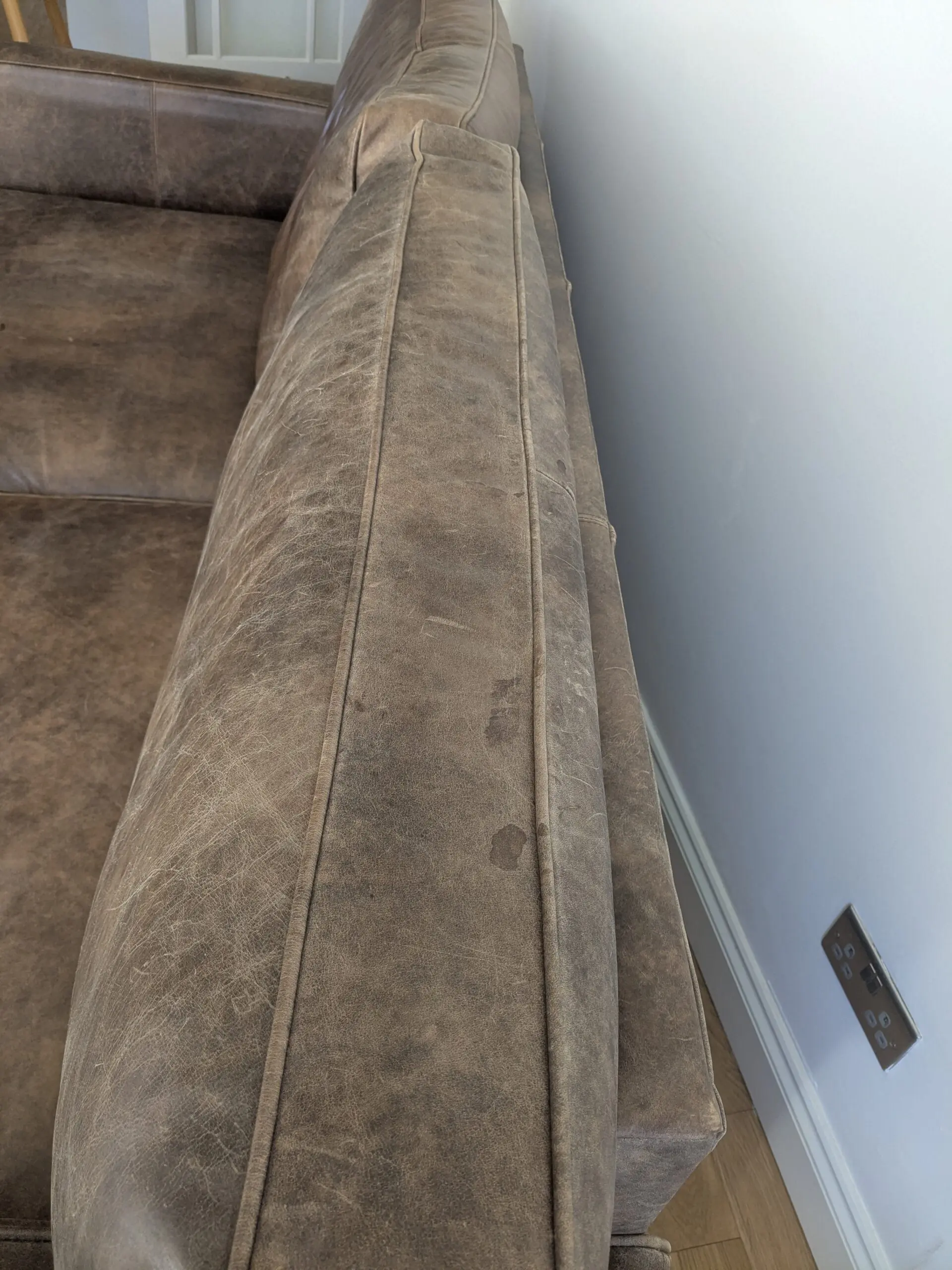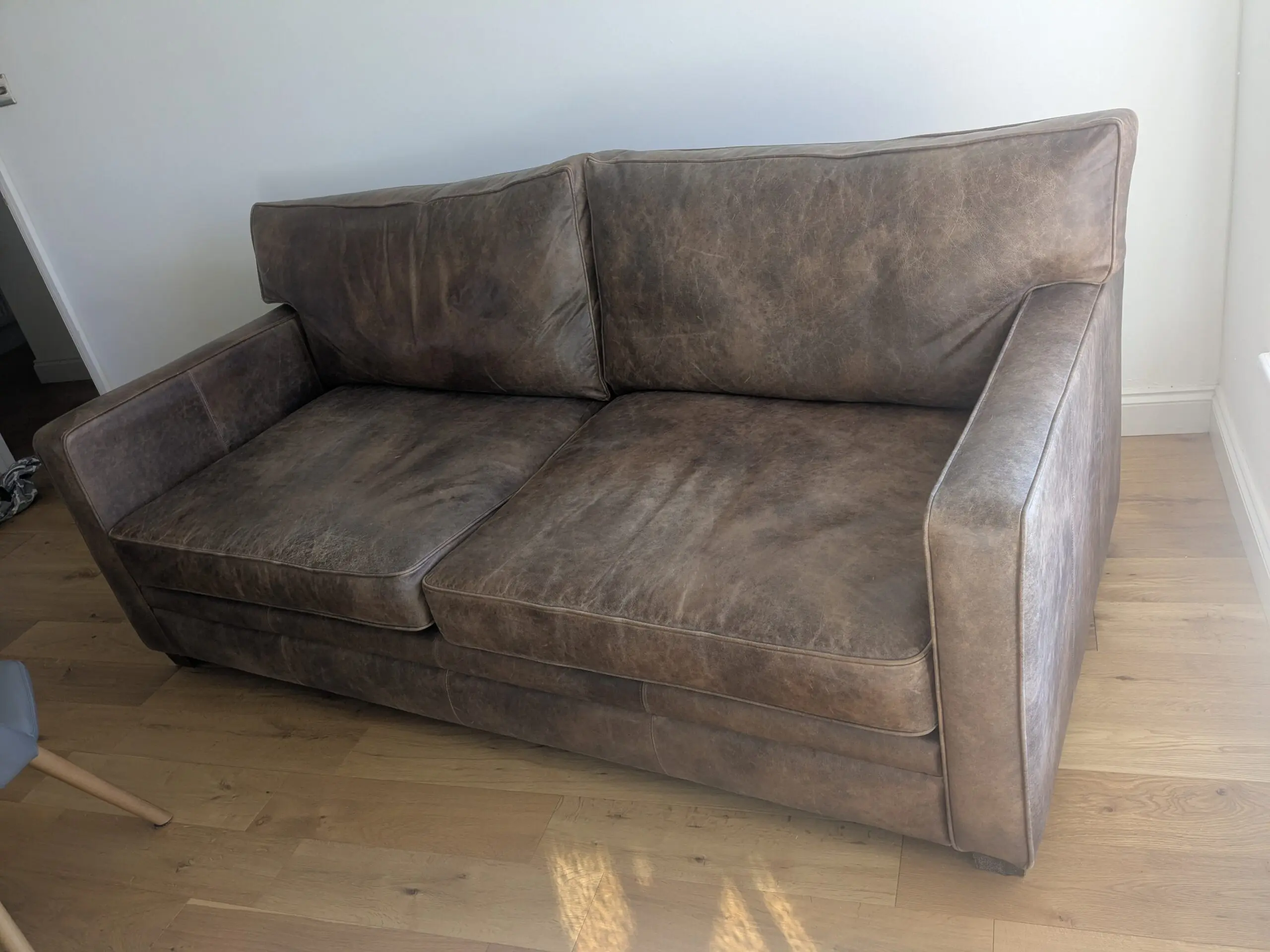 Big 3 seater leather sofa with chunky square arms and extra deep feather topped cushions in Old Boot’s Hobnail Leather. Durable leather with a super soft buttery feel. Really relaxing.Family Friendly Leather Solid Beech Frame Individually handcrafted. Overall Dimensions: 205cm (w) x 100cm (d) x 89cm (h)
