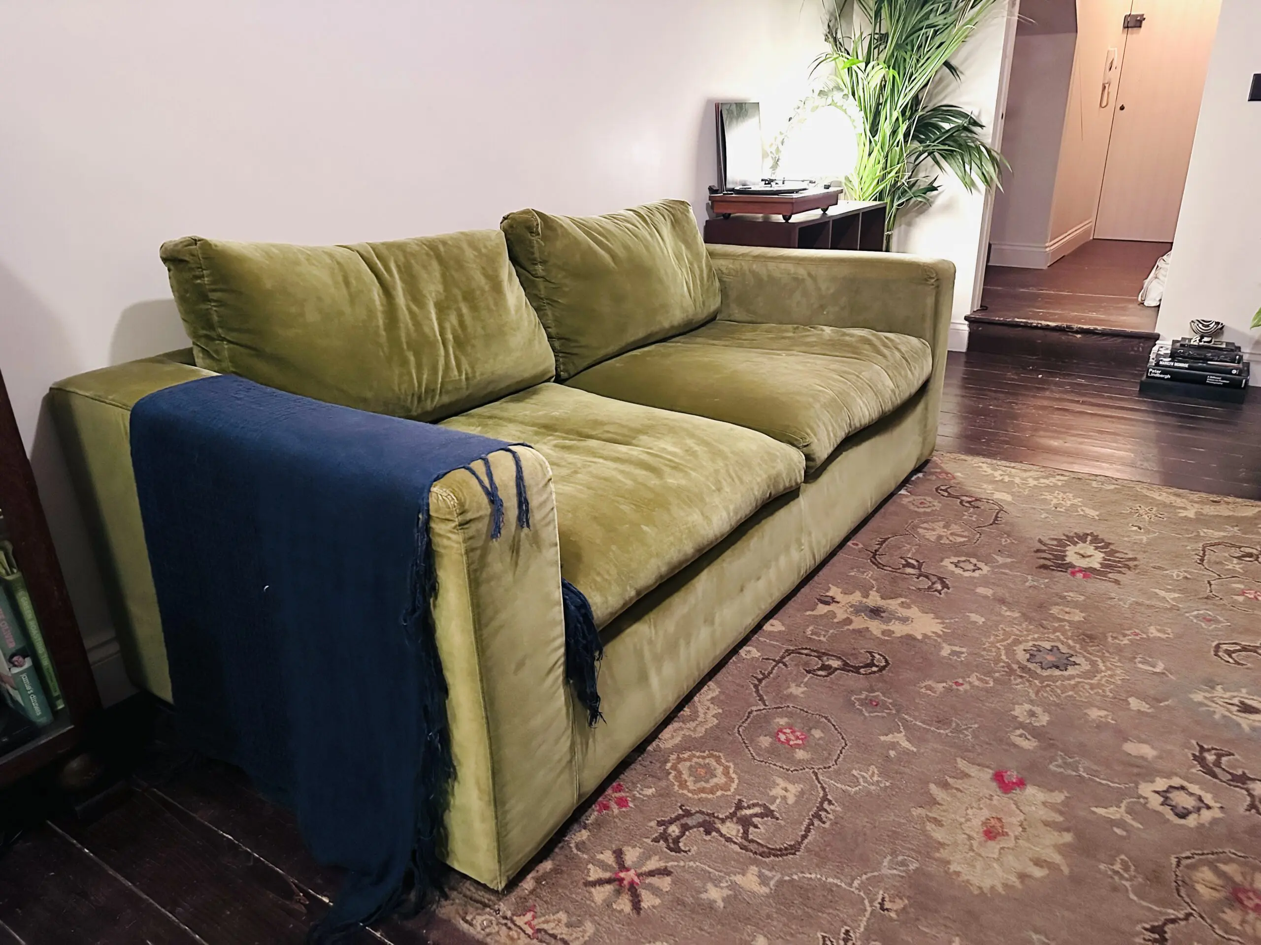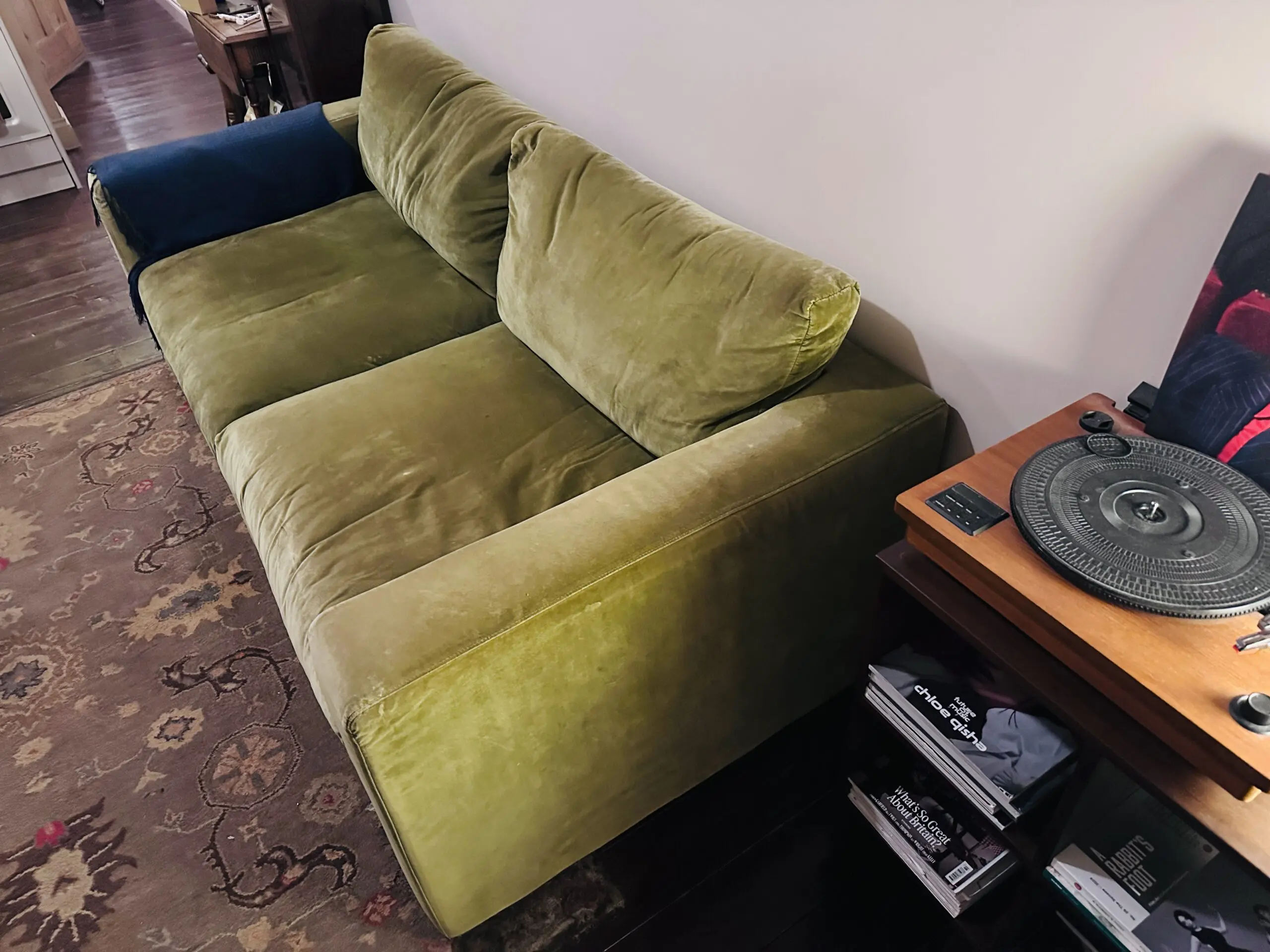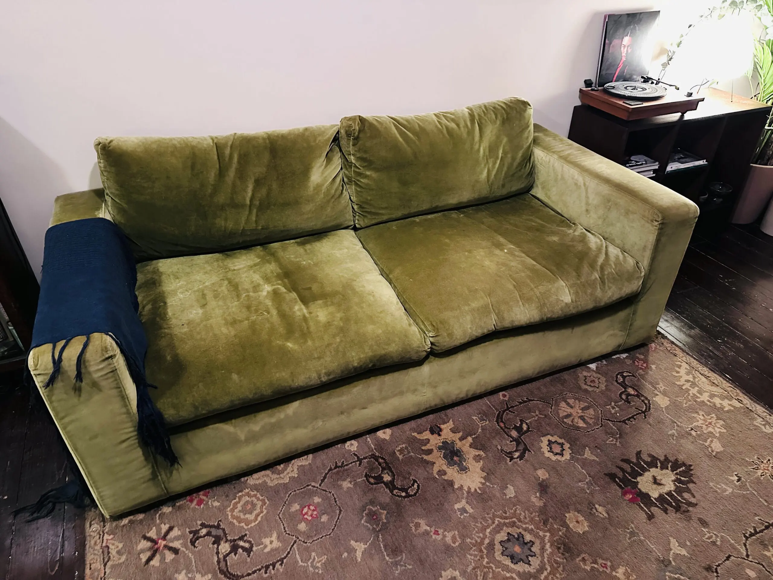 The velvet has some wear in places as can be seen on the pictures.