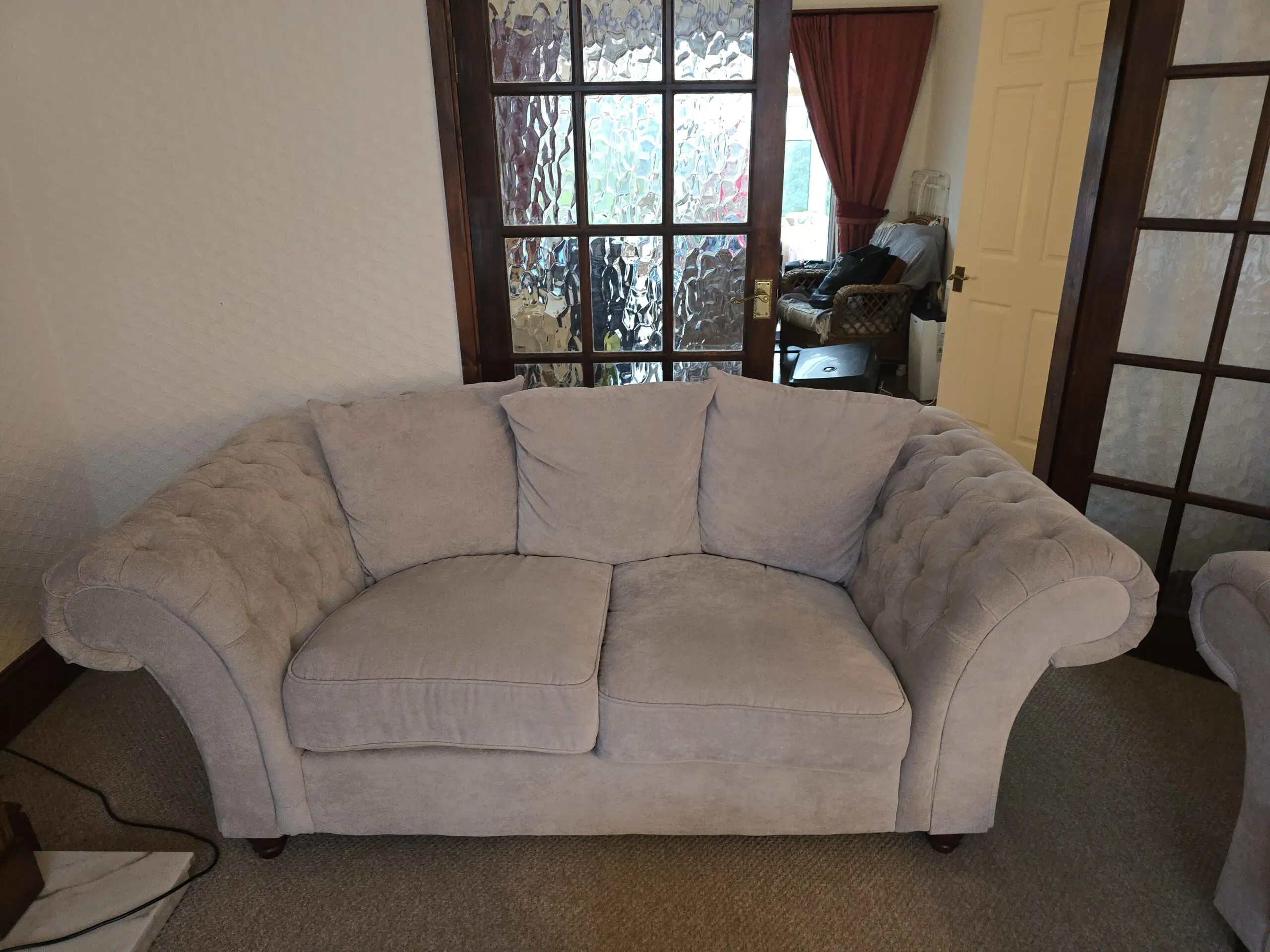 One 3 seater and one 2 seater beige/ oatmeal colour sofas