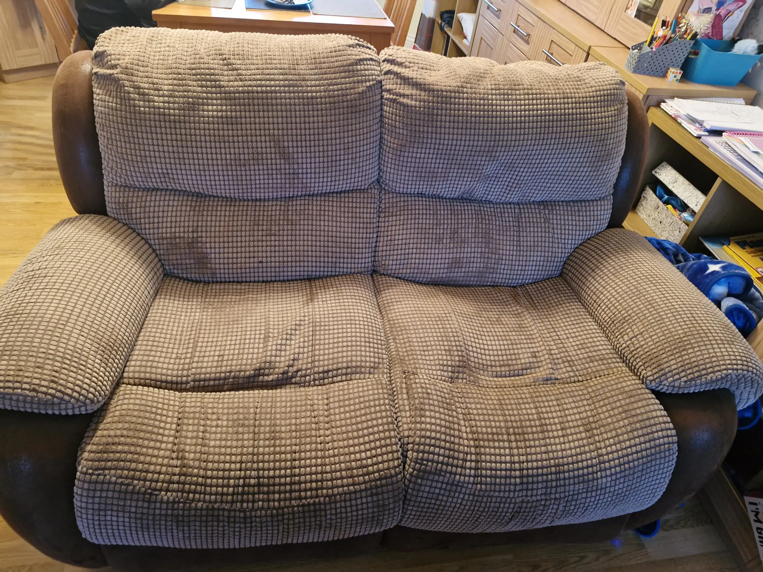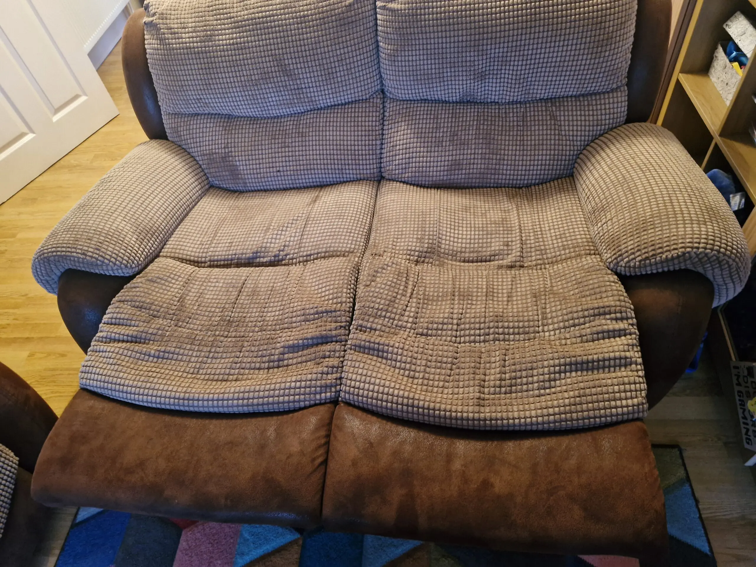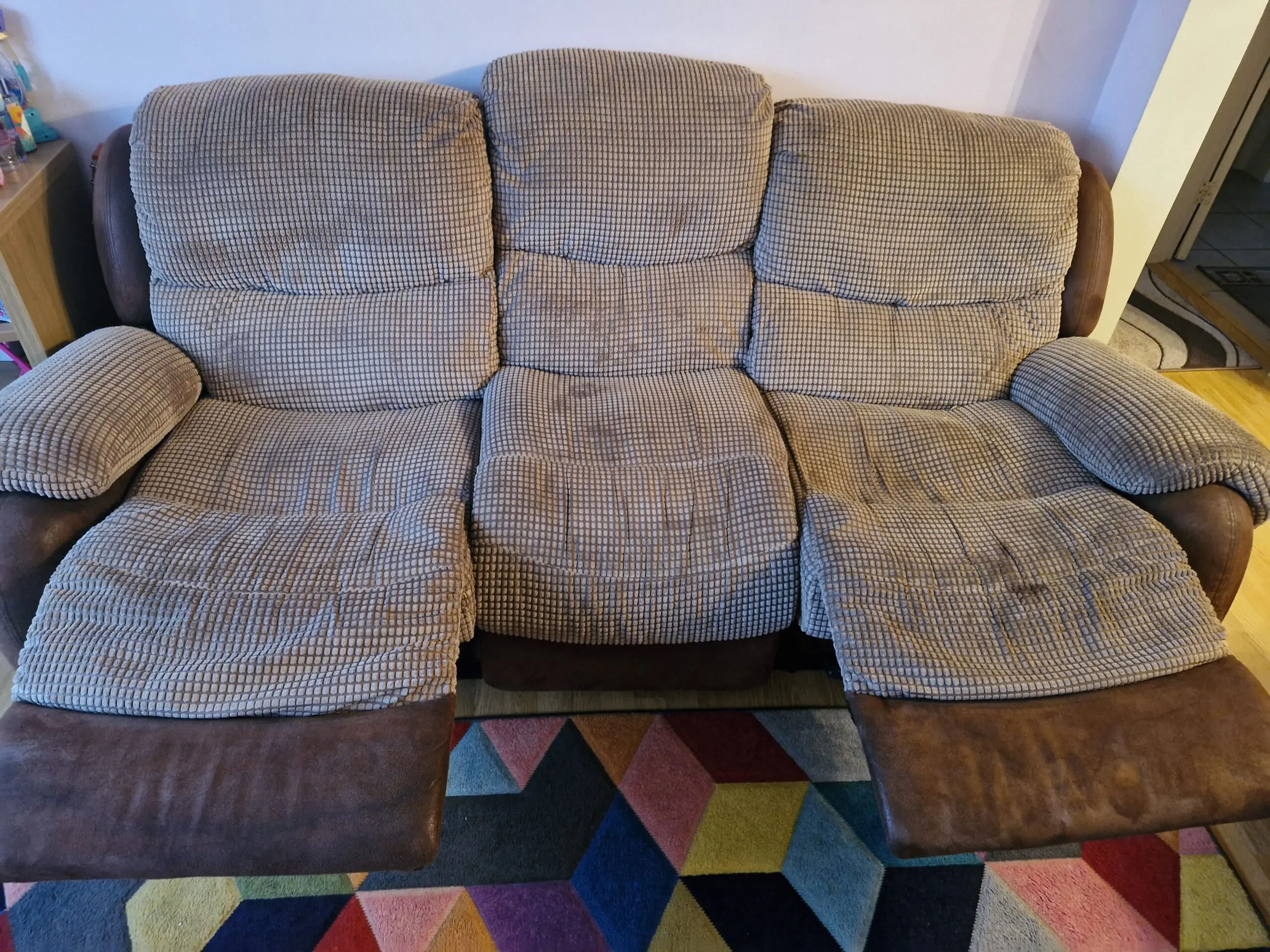 Three seater abd two seater recliner sofas in good condition, only one seat is pretty used abd recliner works harder.