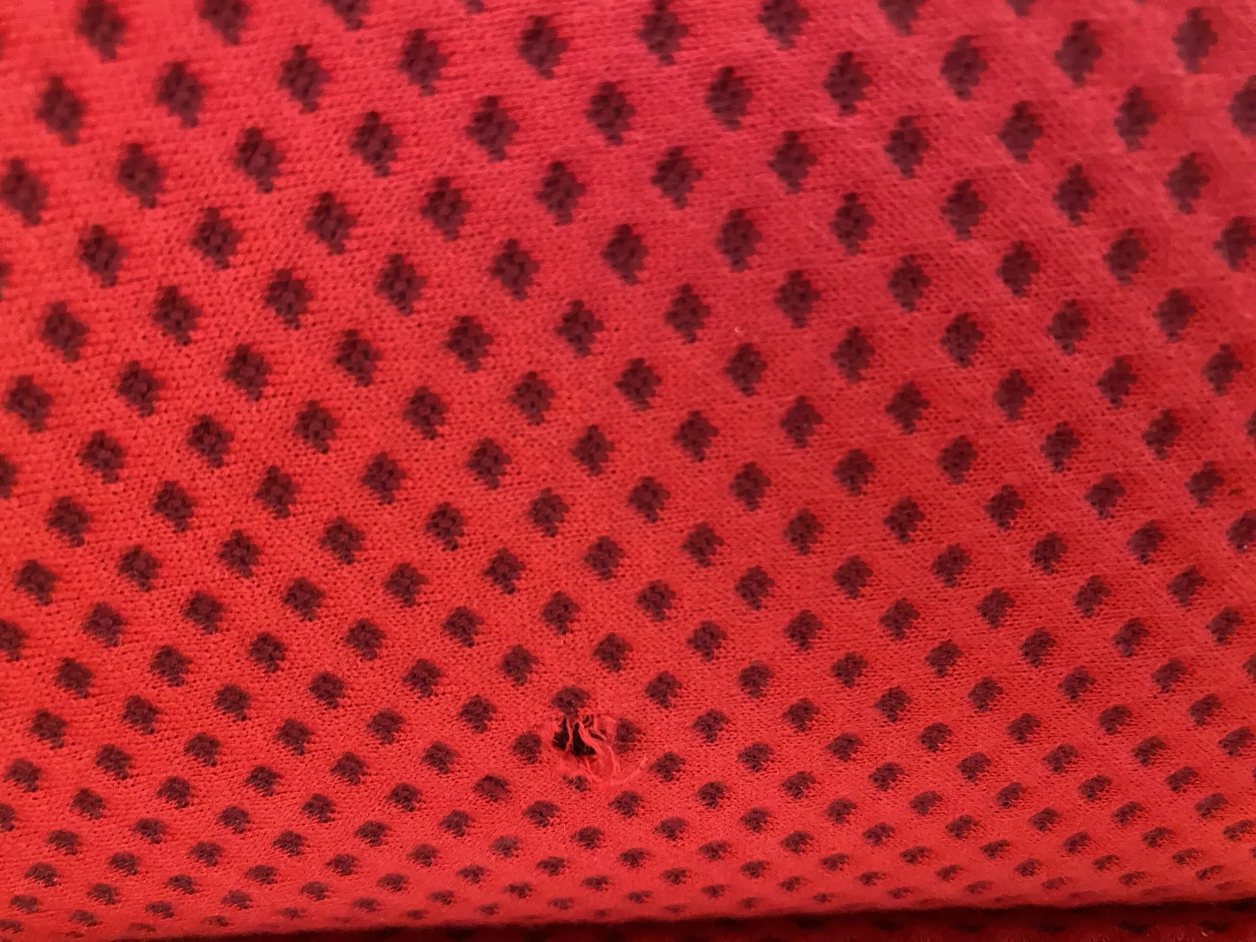 It does have two small tears from the previous owners. One on the arm and one on the base. These are shown in the photos.