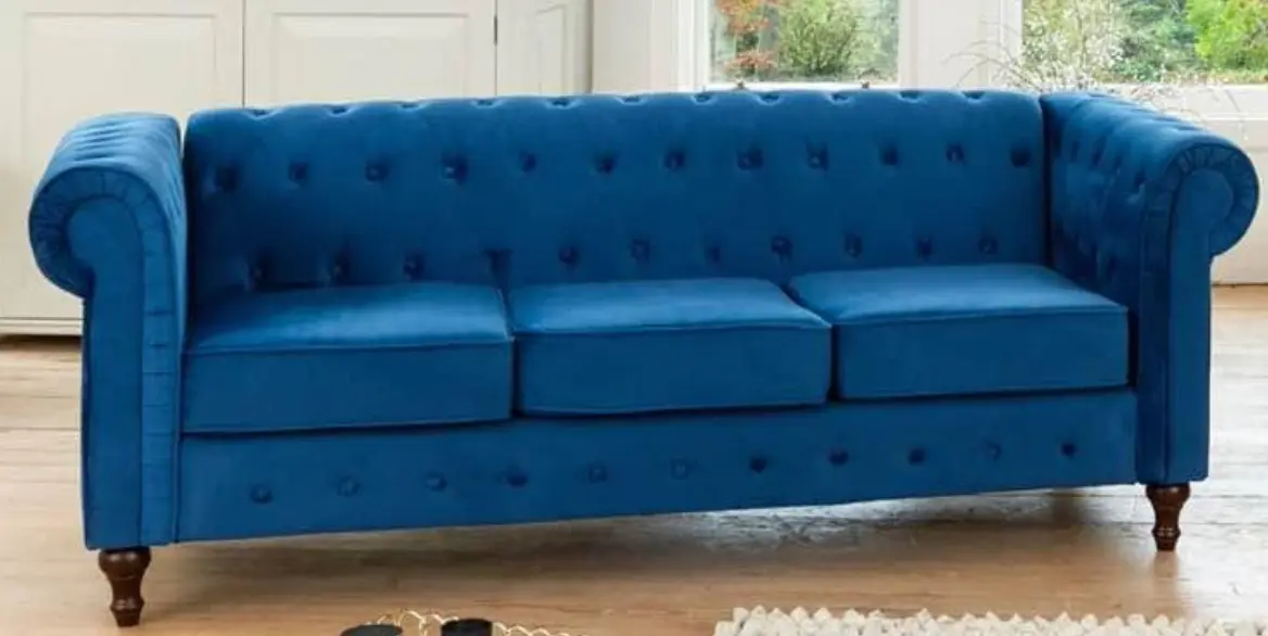 3 seater beautiful royal blue chesterfield sofas. Barely used. Looking for a new home for them.