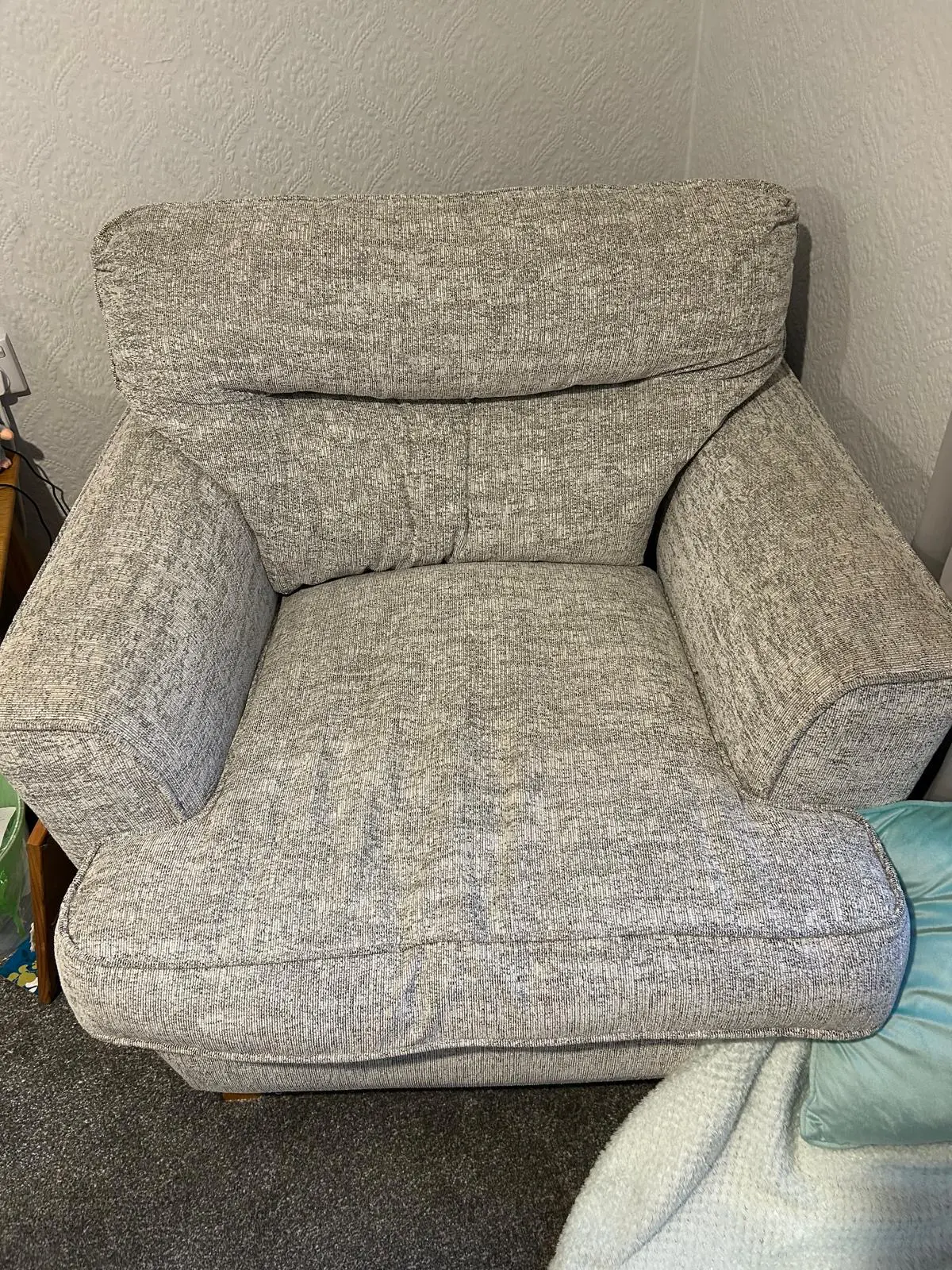 Lovely 3 seater sofa and chair – nearly 4 years old very minimal use of chair and only used by one person for sofa. Selling as need recliner chairs.