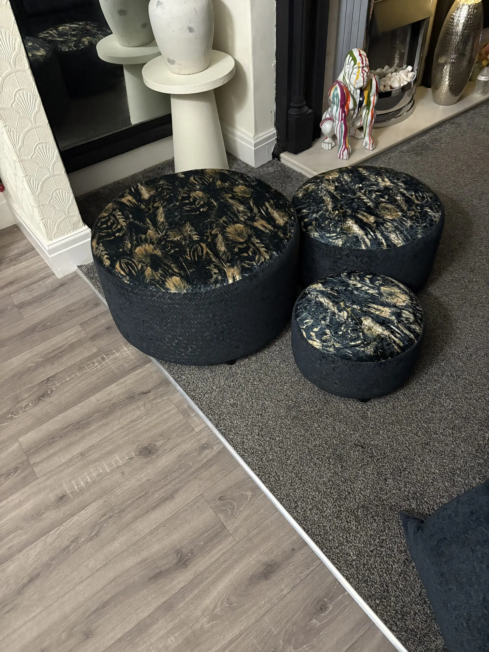 Here I have a 3 seater Italian style sofa with 3 footstools which inter lock, selling due to needing a bigger sofa for the family and only had this sofa a year.