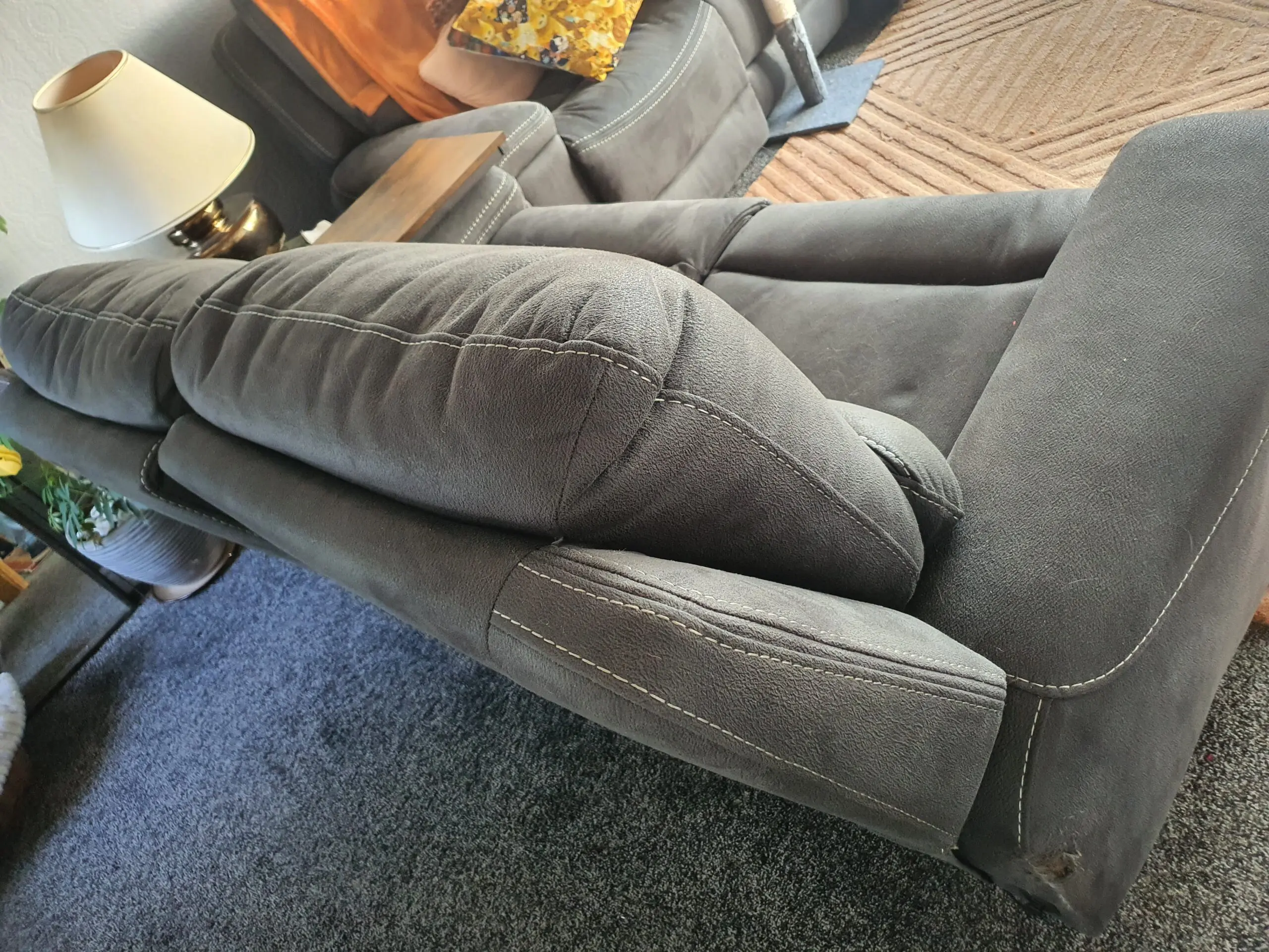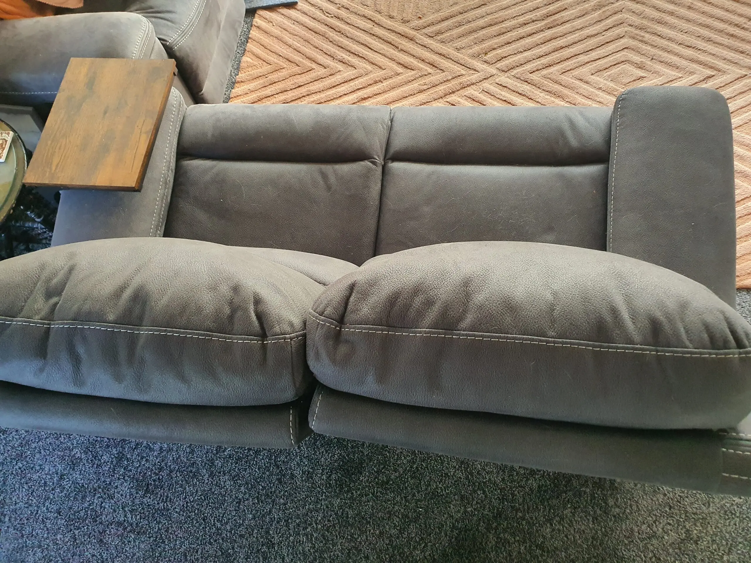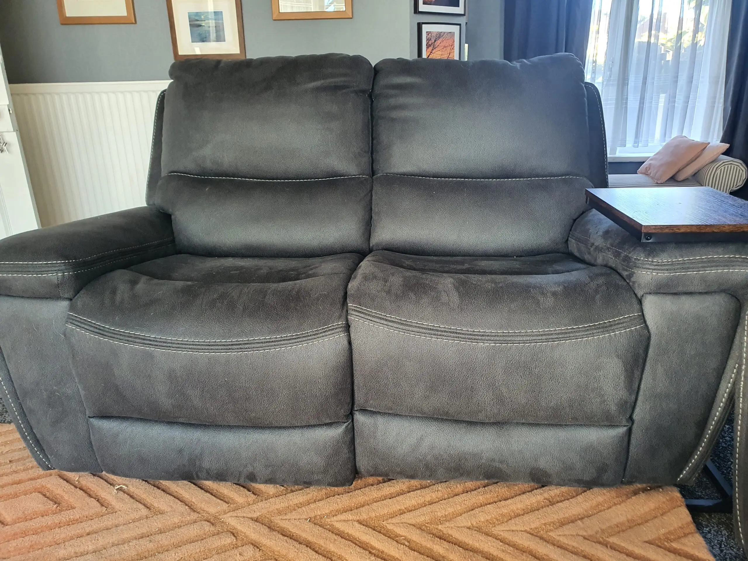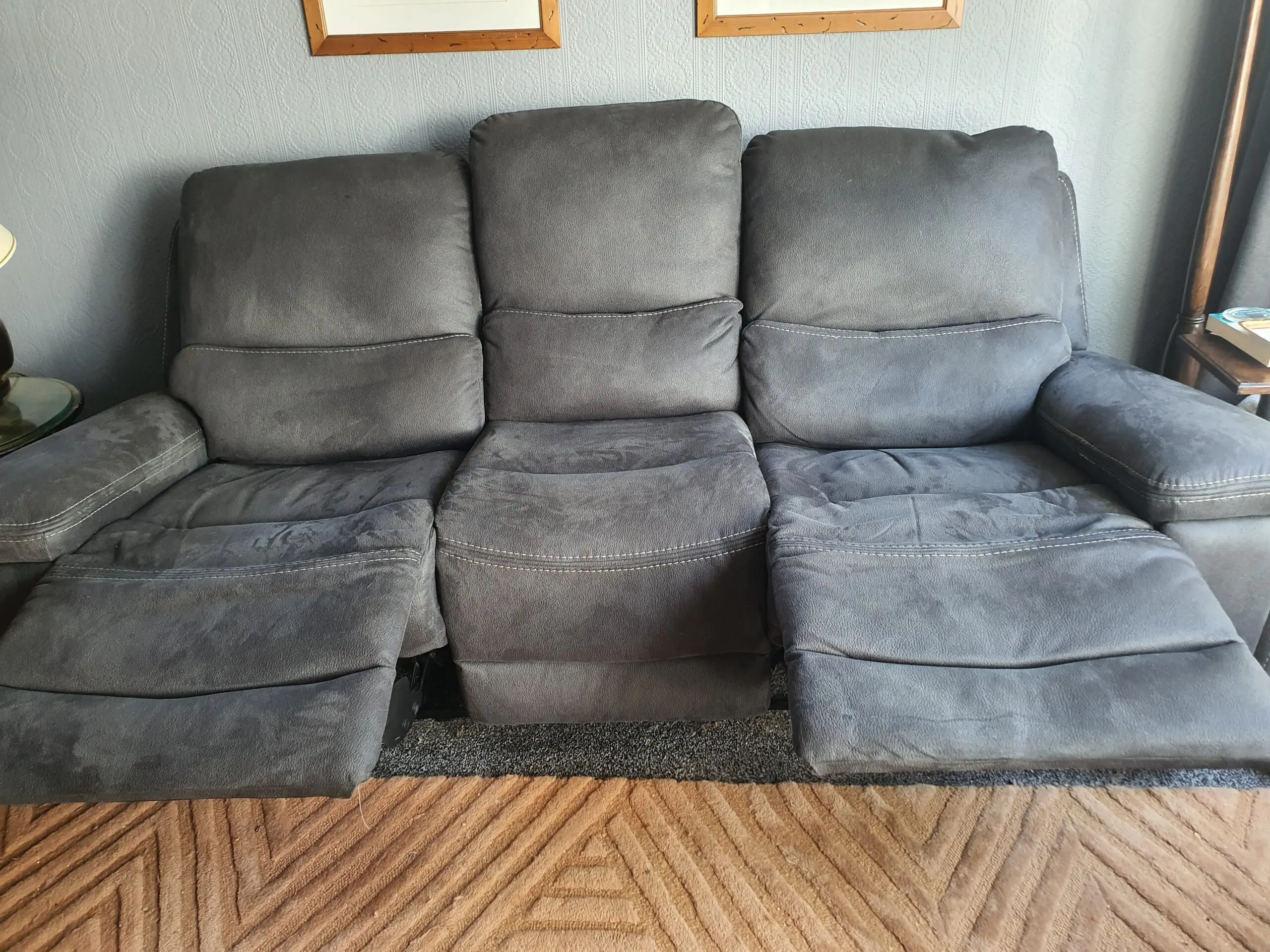 This is a comfortable, high-backed, 3-seater and 2-seater sofa set, both with powered reclining facility at each end. They are only 11 months old and we are selling them because we have decided to redecorate and they will no longer match the room.
