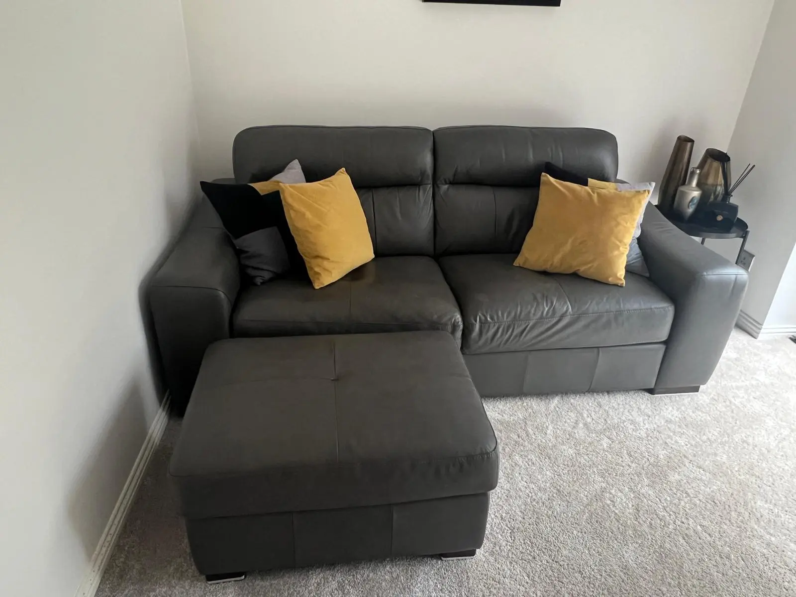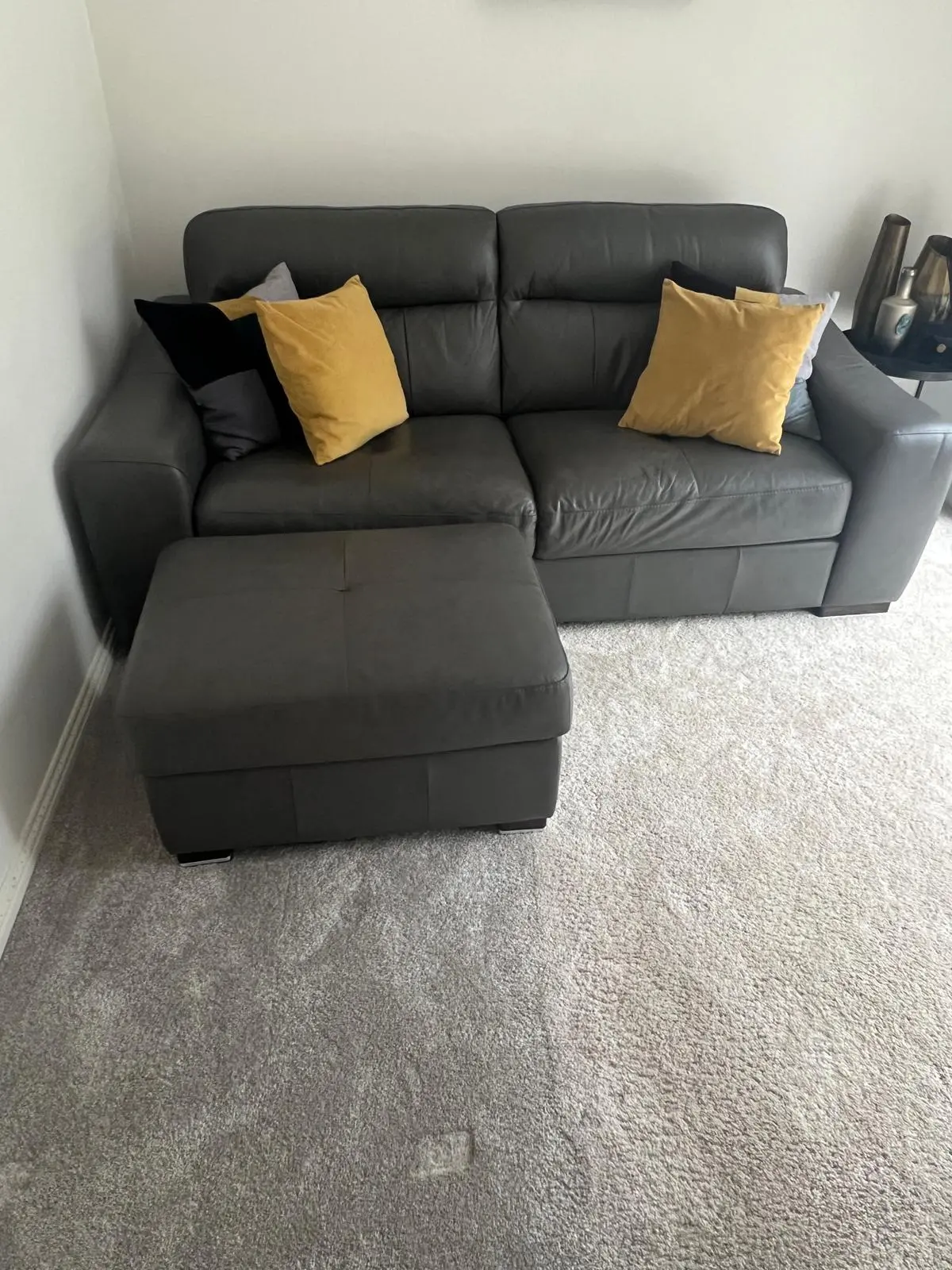 Sisi italia grey leather sofa + footstool