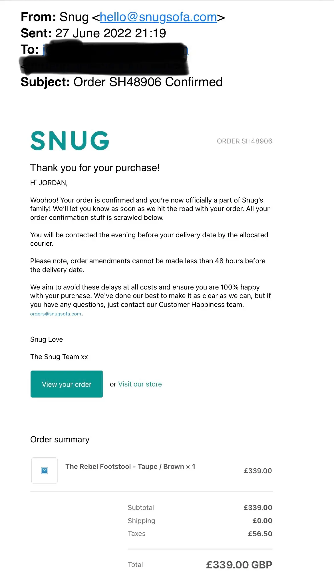 Stylish and super comfy Snug Rebel 3-seater sofa, complete with matching footstool.
