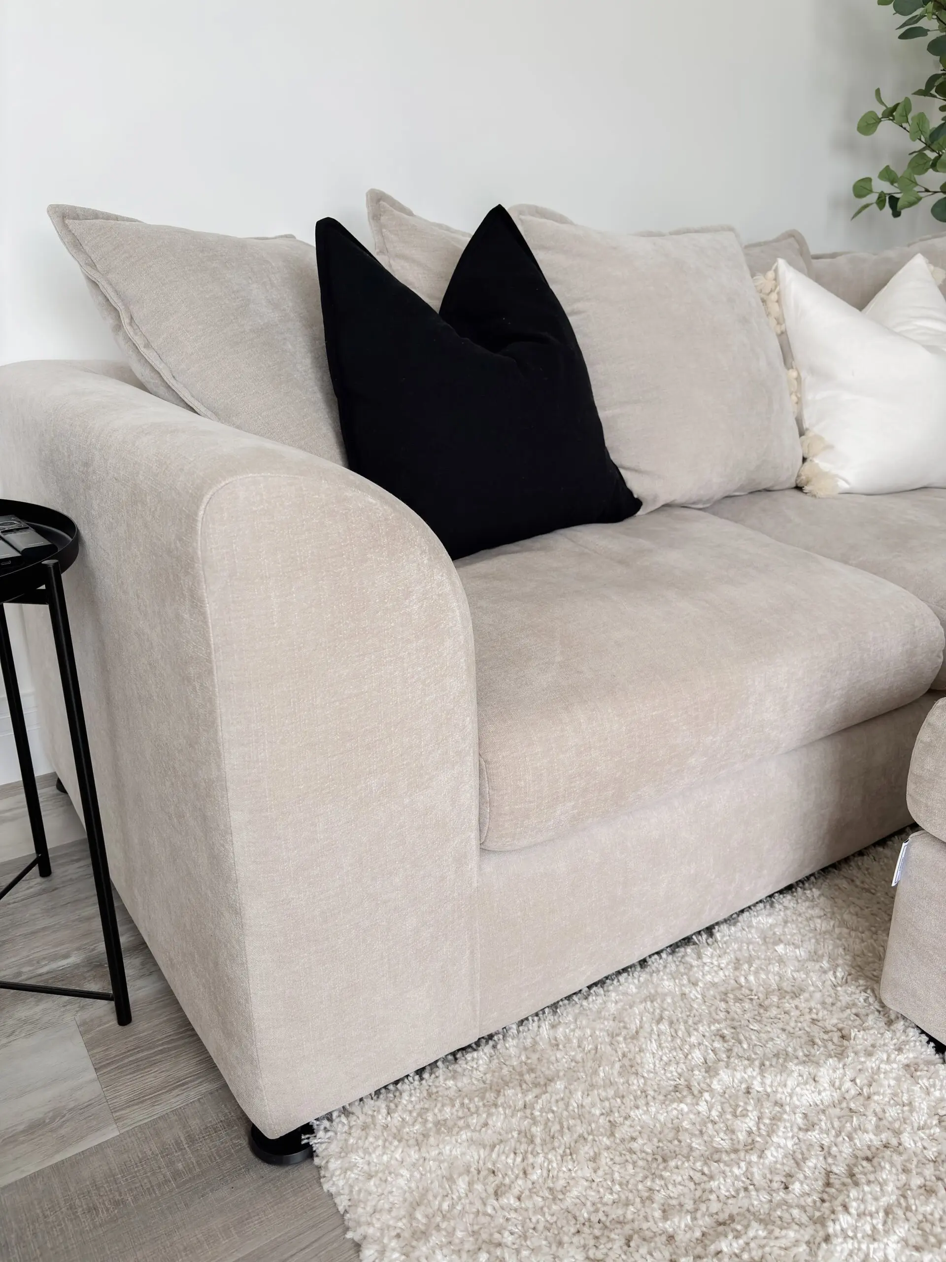 Cushions included except the two small black and cream.