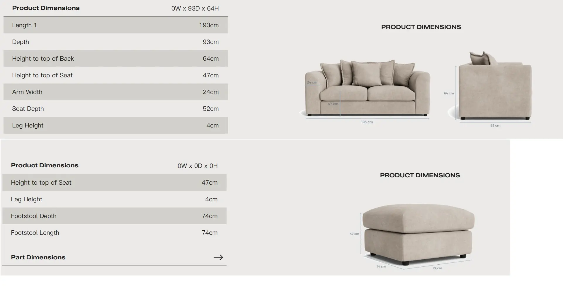 Sofa – Product Dimensions