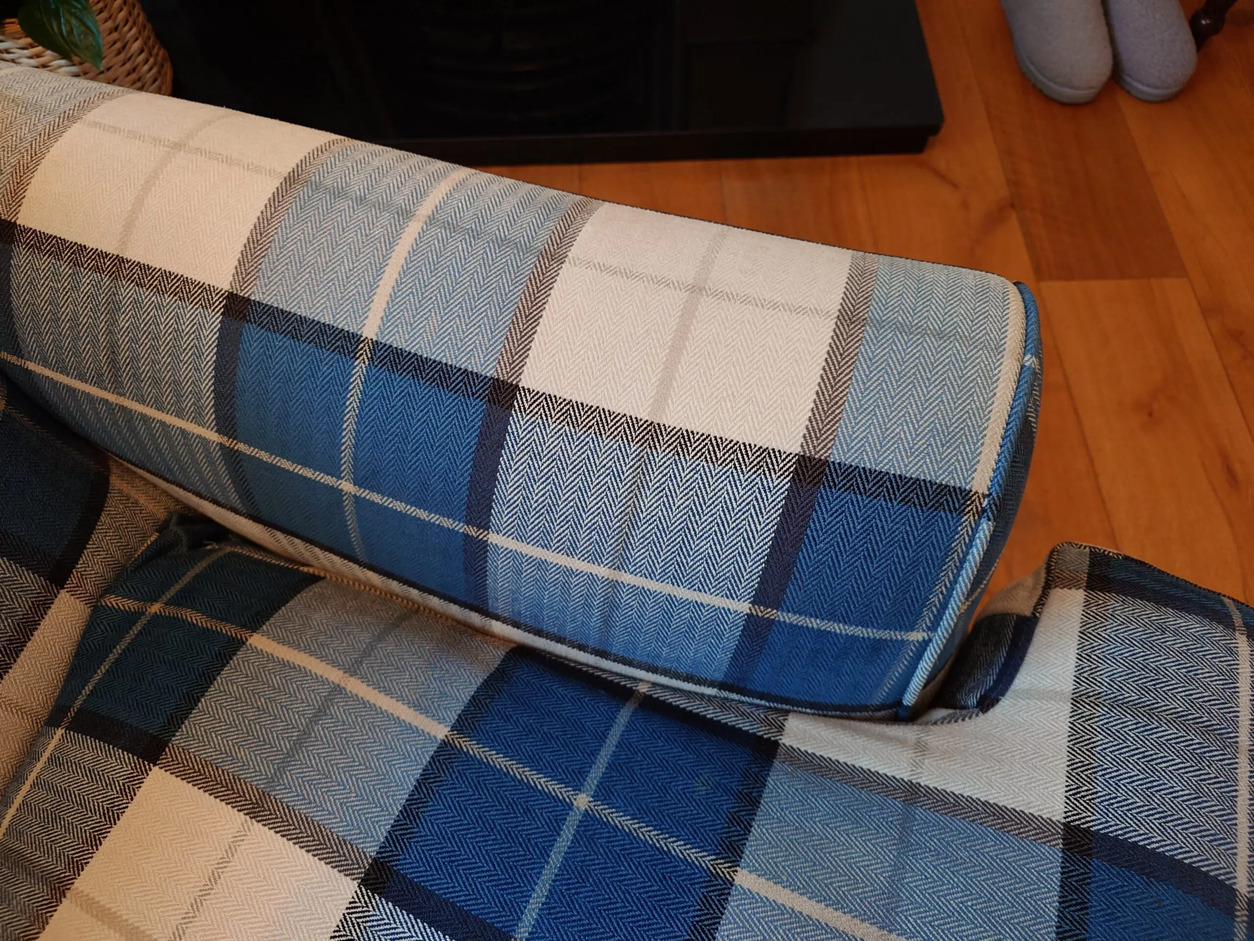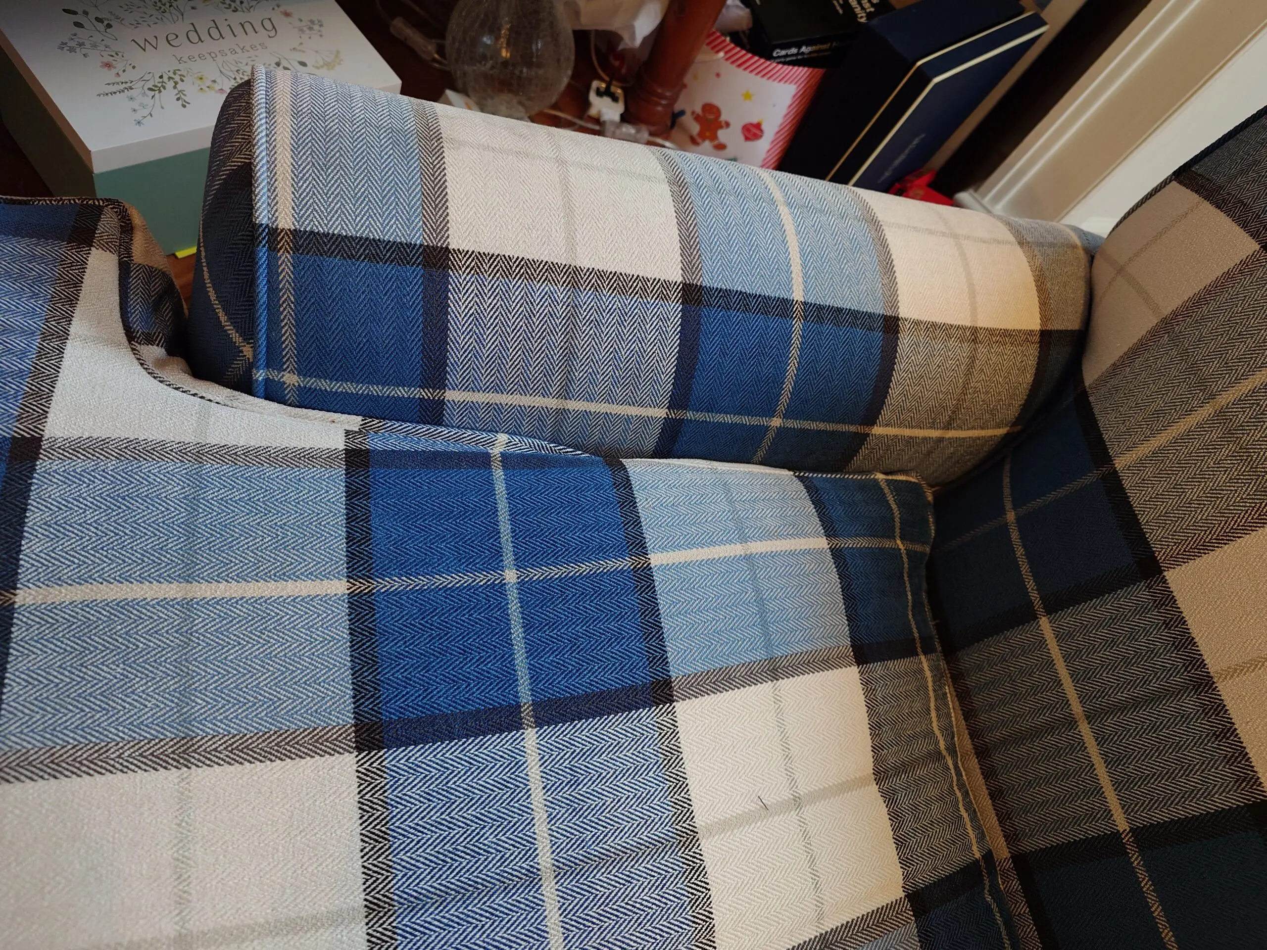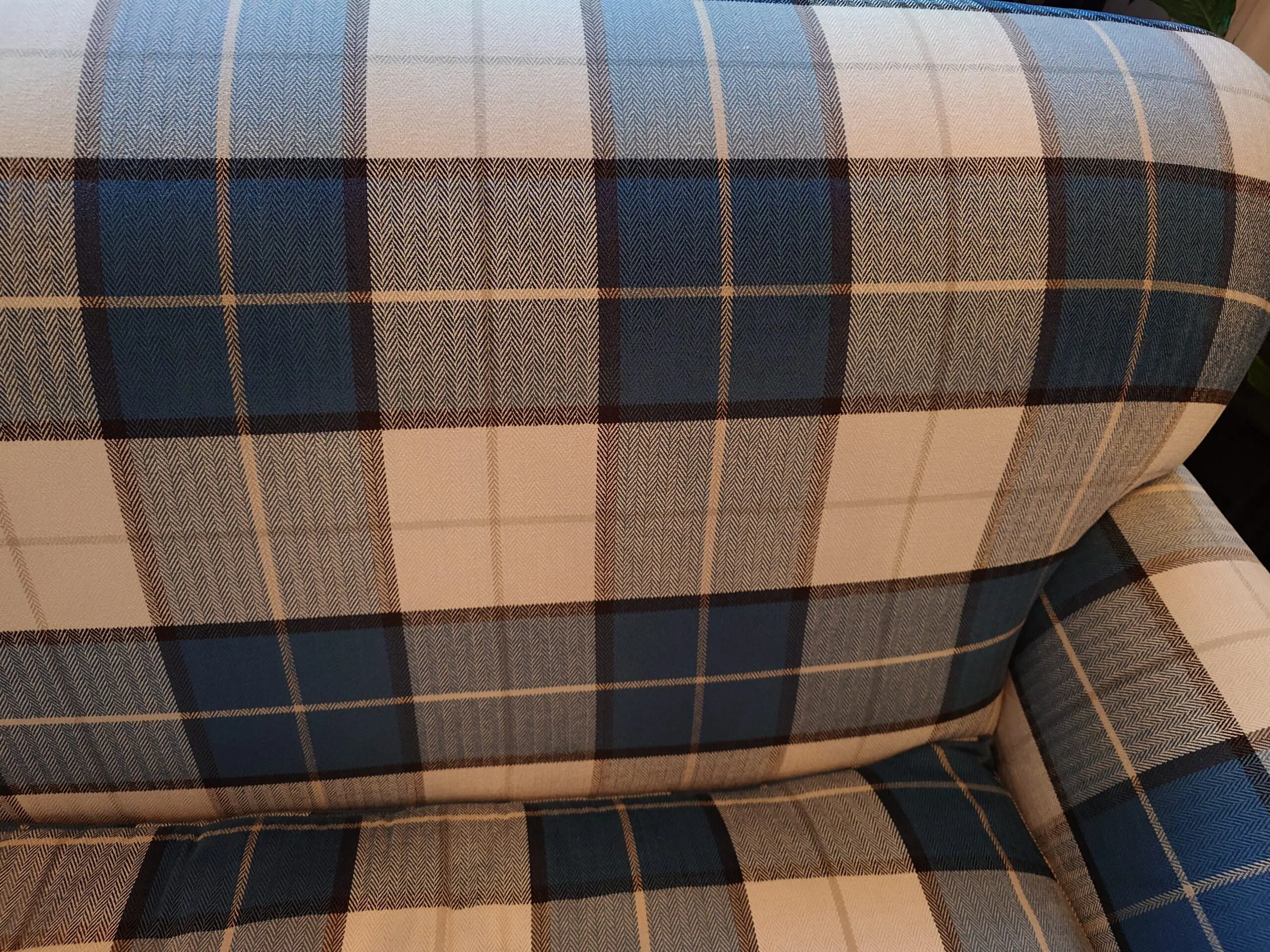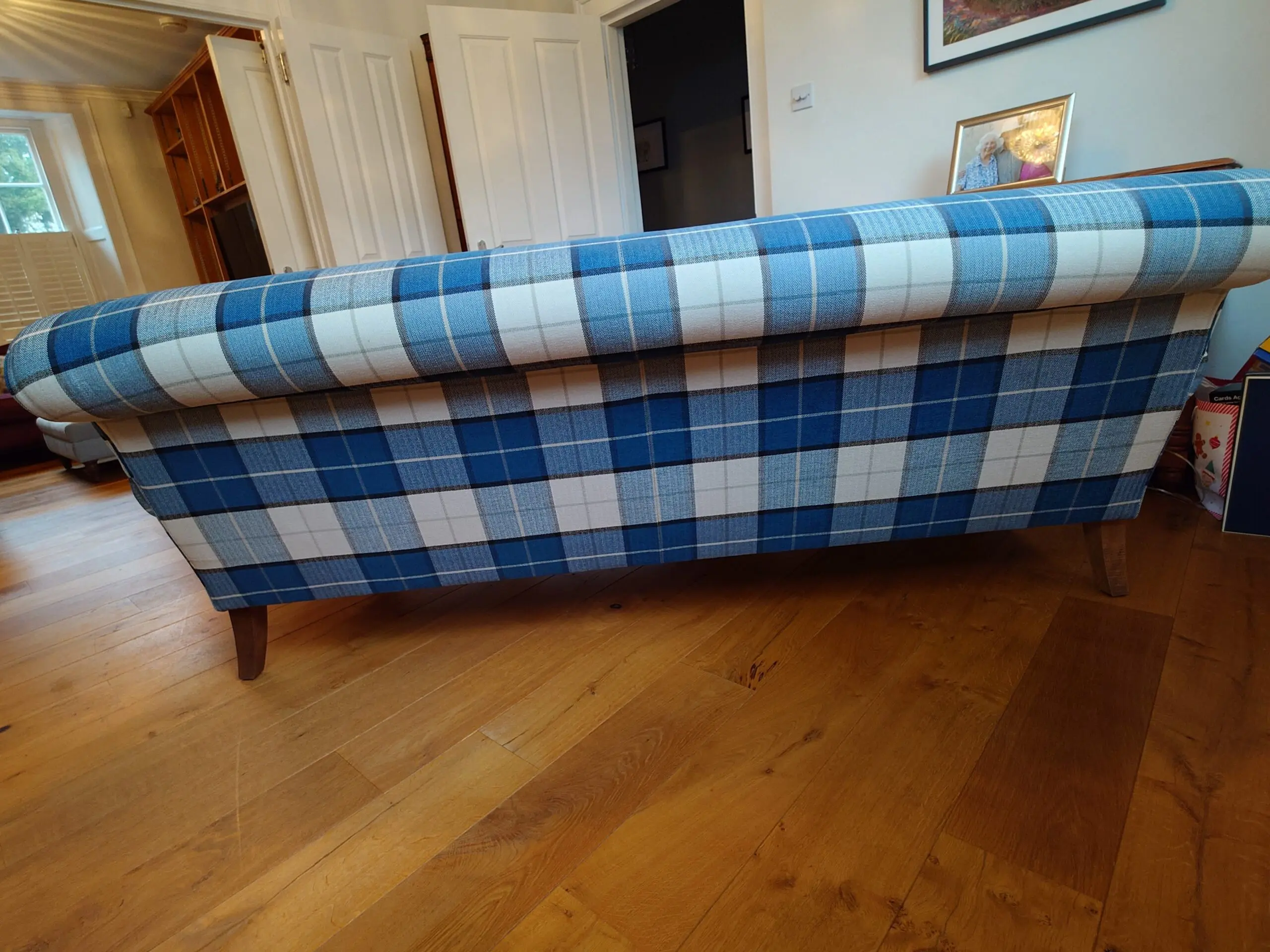 Sofa.Com 3 seater Saturday sofa . Fabric is Herringbone check in Cobalt from Romo Bonham 7494. Seat is feather wrapped foam and legs are oak. Hardly used and in excellent condition