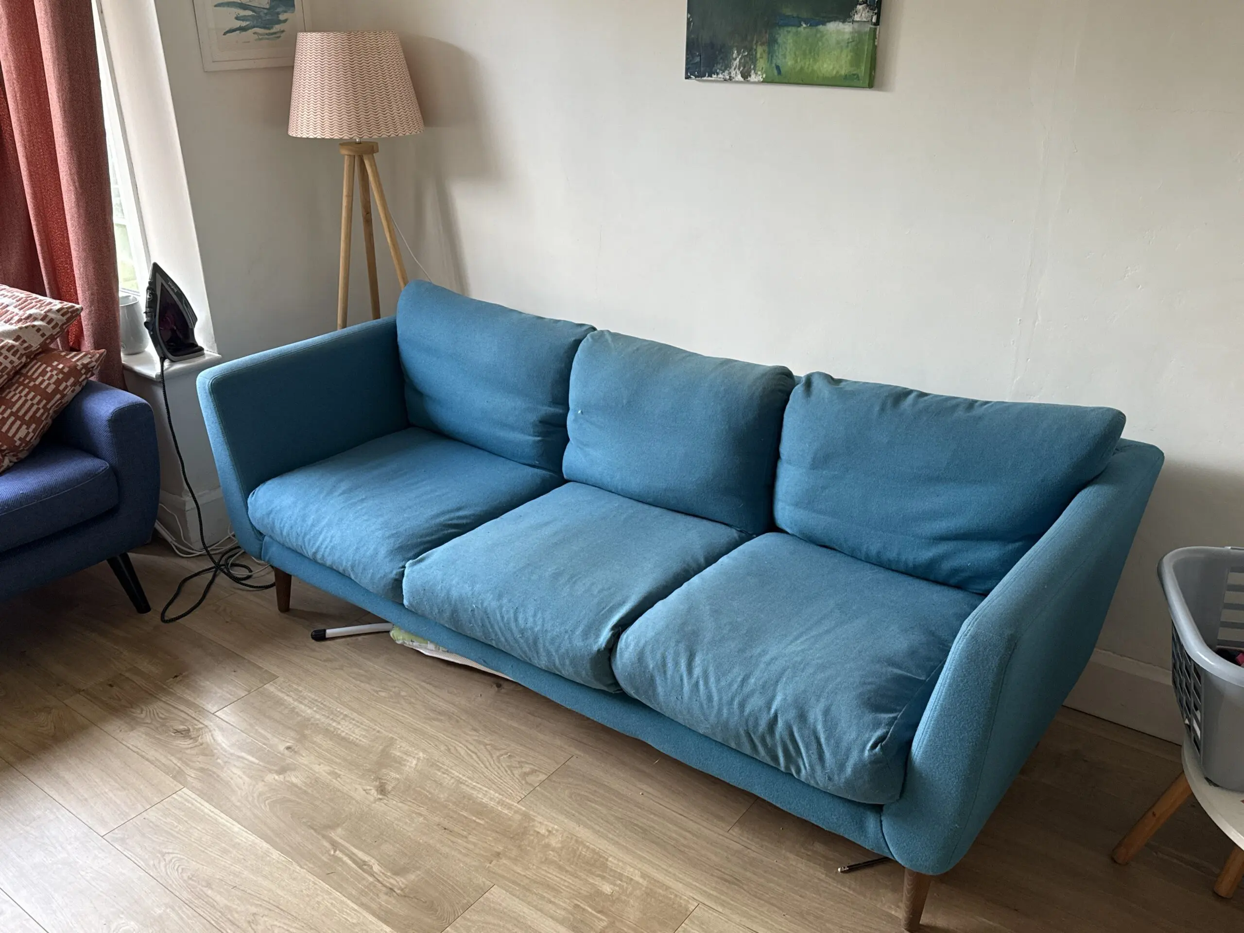 3 seat sofa from Sofa.com. Bright blue wool covering, from smoke free and pet free home.