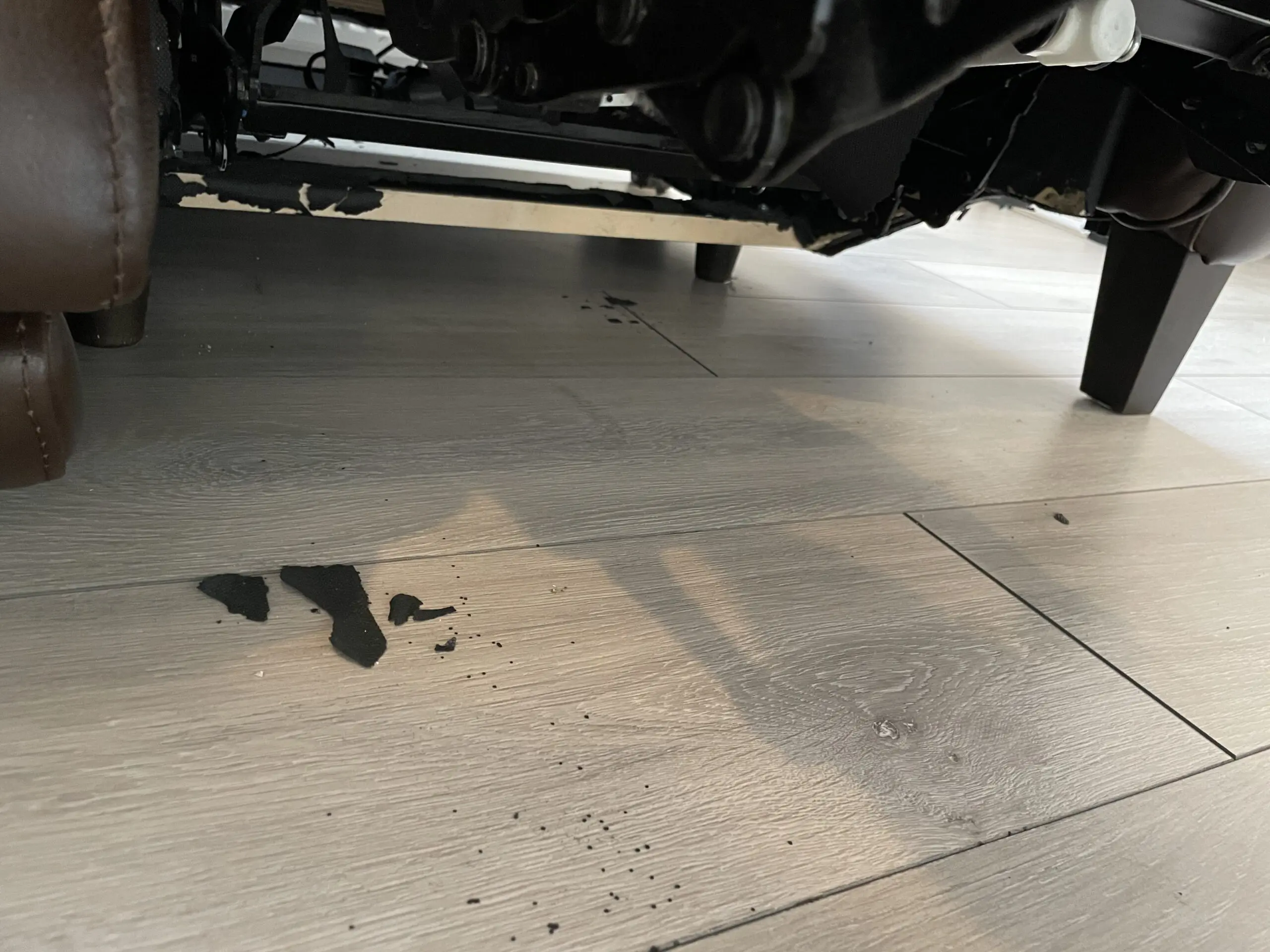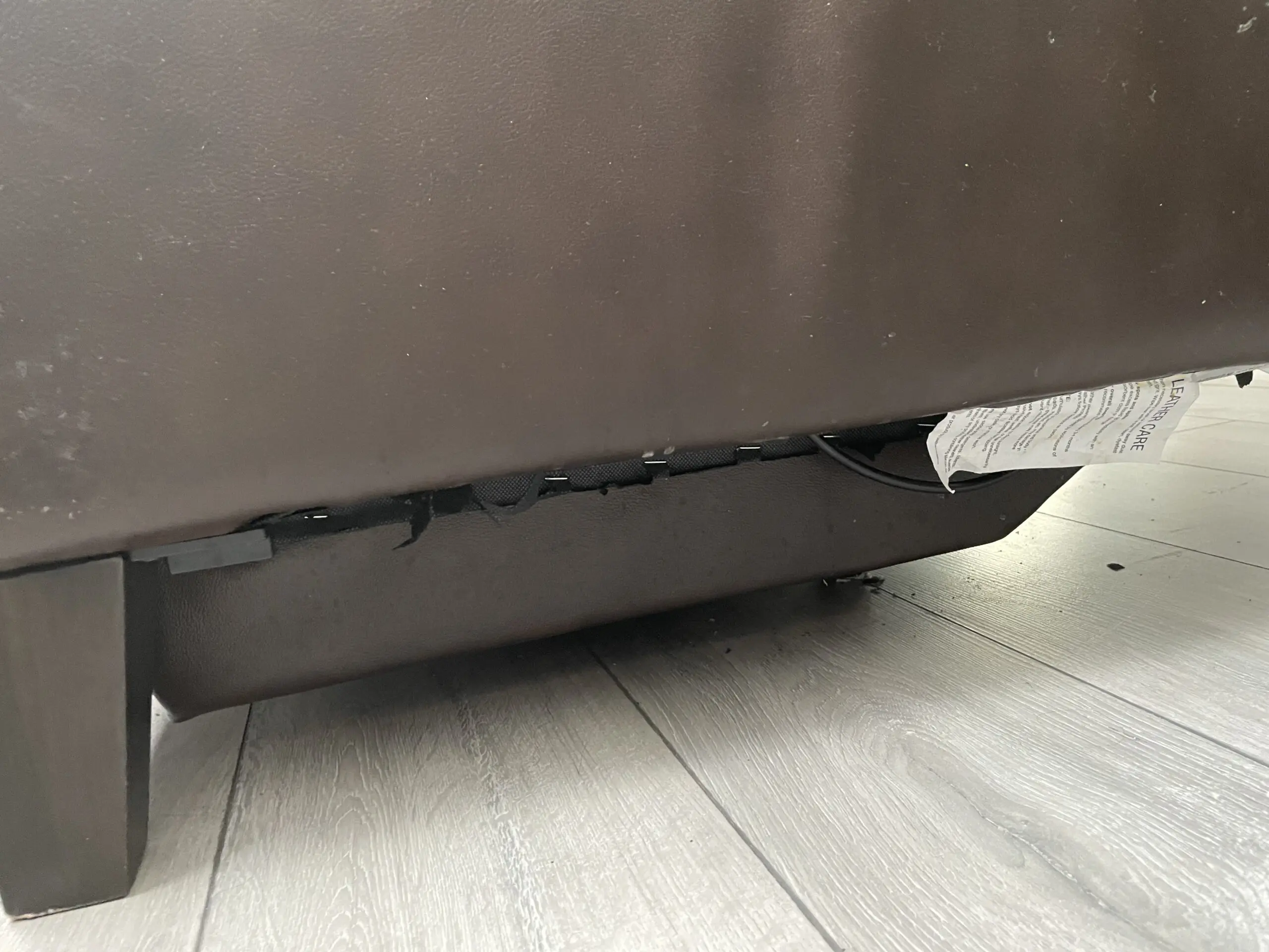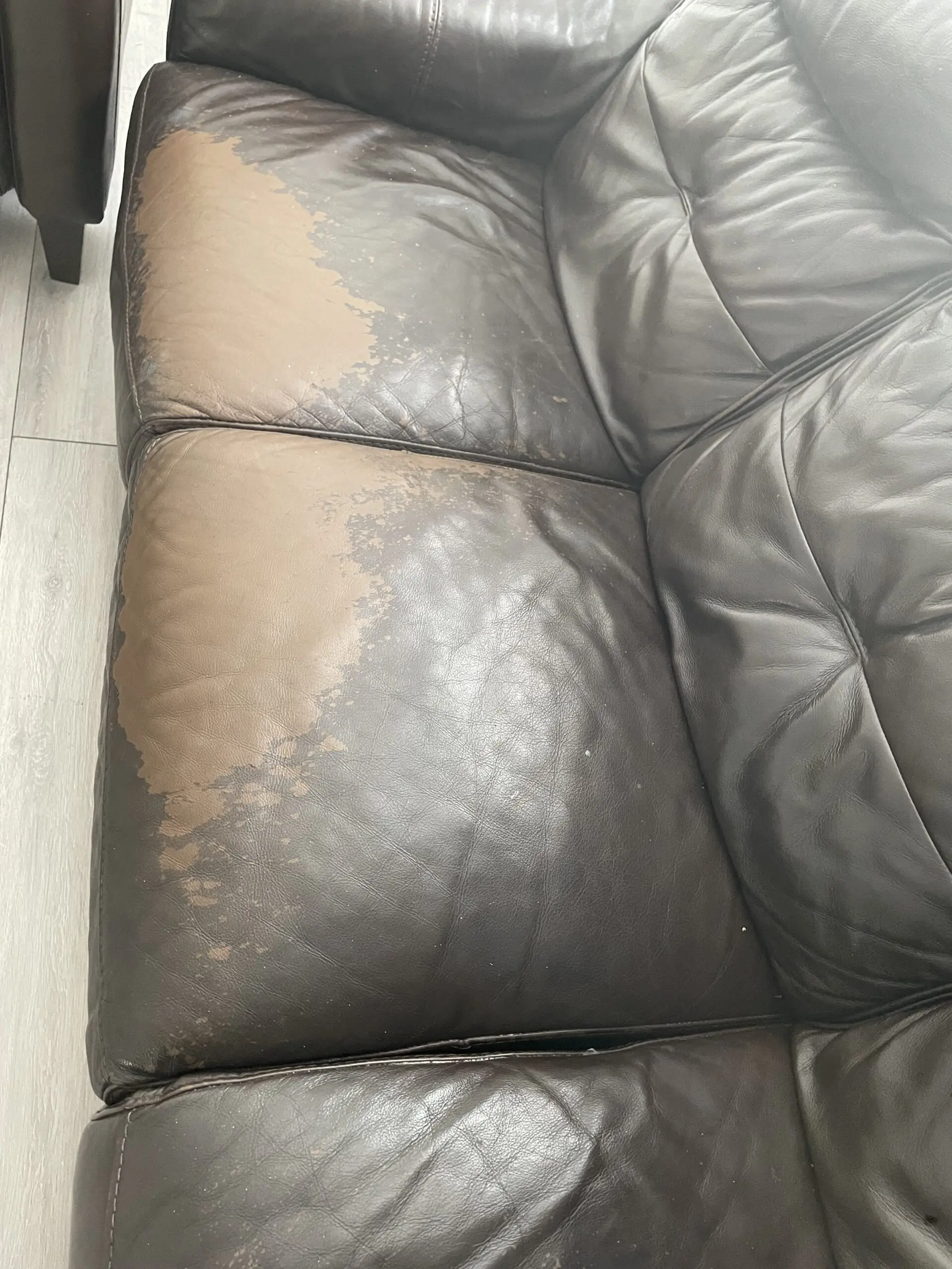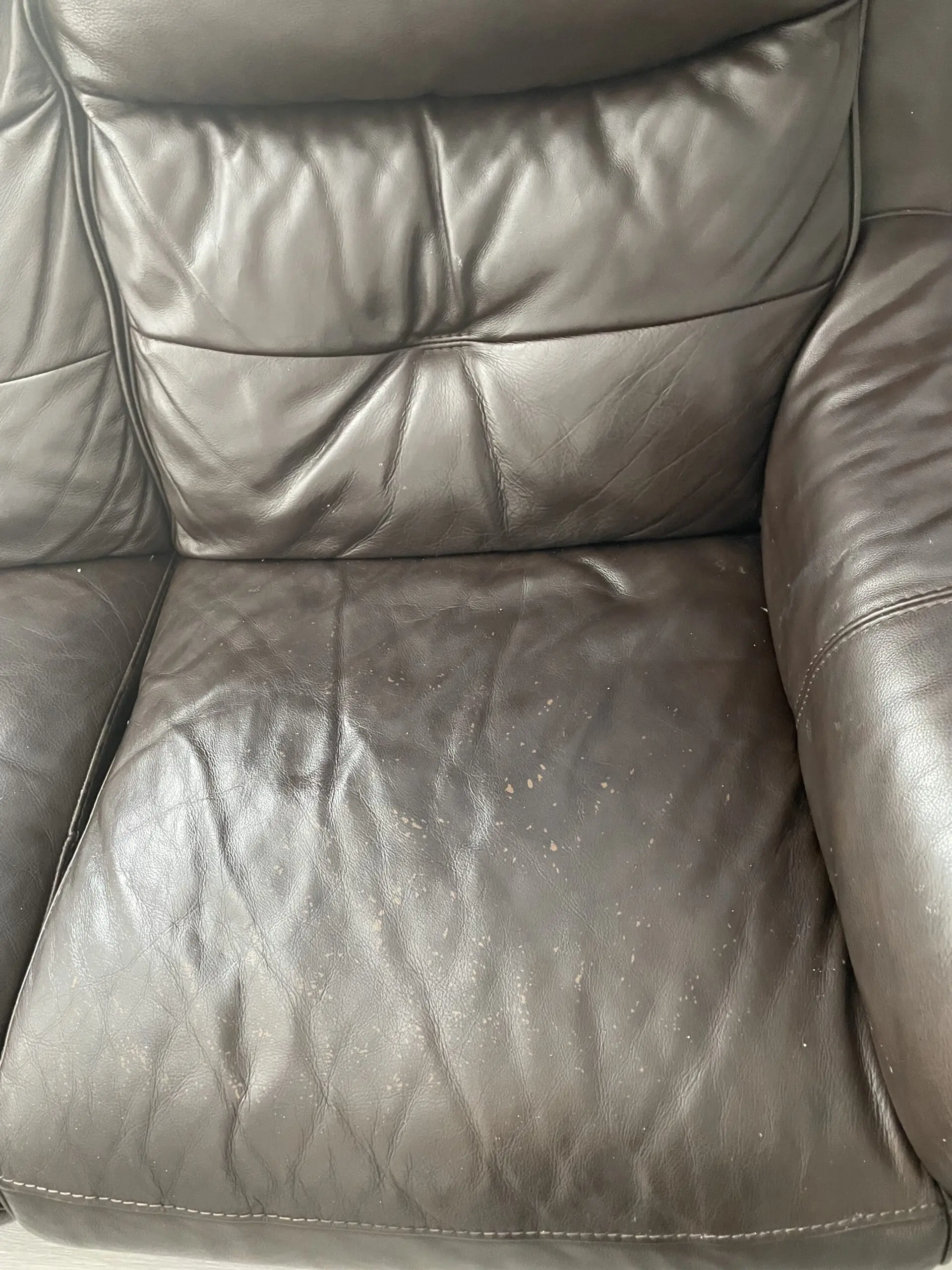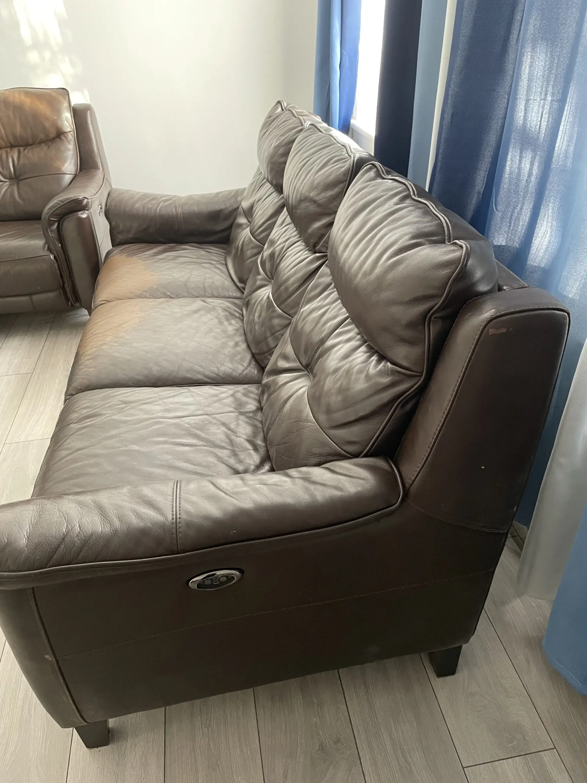 3 seater electric recliner sofa with charging system. The leather of the sofa some places fade away as pictured. The underneath of the sofa material been damaged. Both can be replaced.