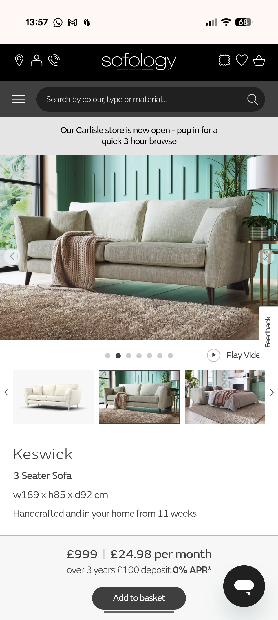 Just had my sofa delivered from Sofalistic. I was slightly nervous but it’s absolutely immaculate, delivery was great and even though it was quite difficult to get through the doors the guys did a great job. The whole experience has been very simple and I would definitely recommend.