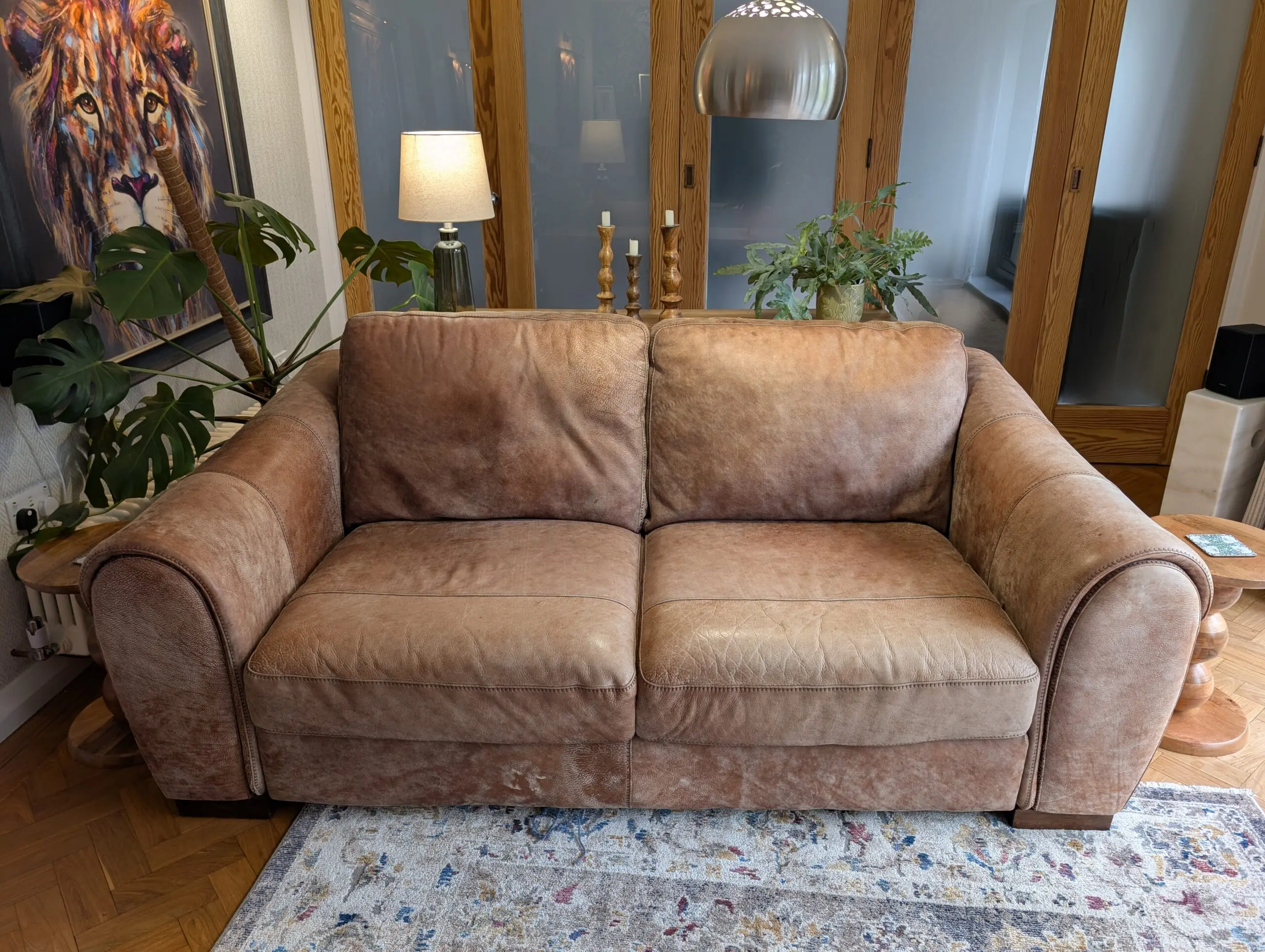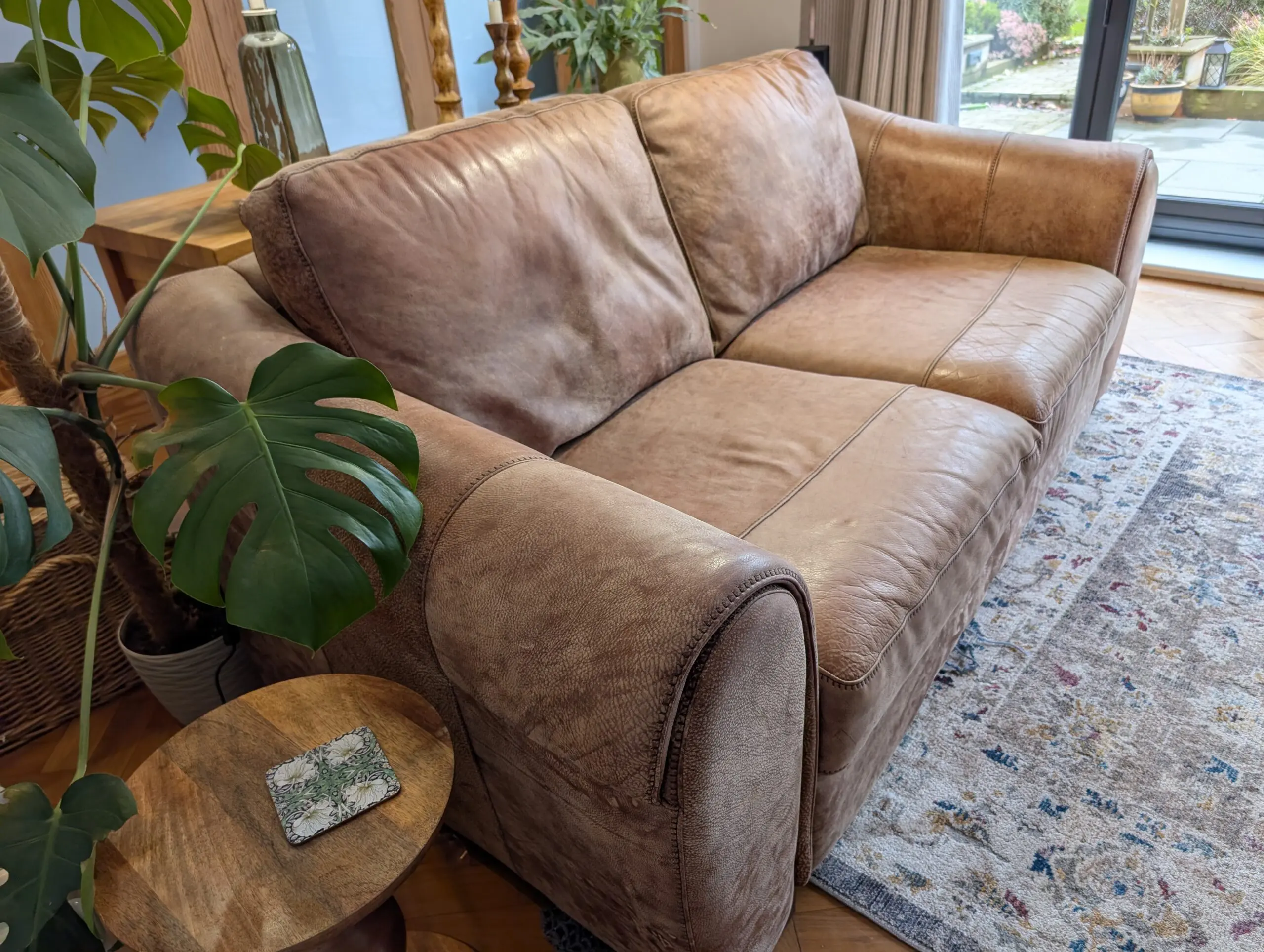 Sofology Galleria brown leather sofa, 3 seater. 4 years old with moderate use and still in great condition. RRP £1849.