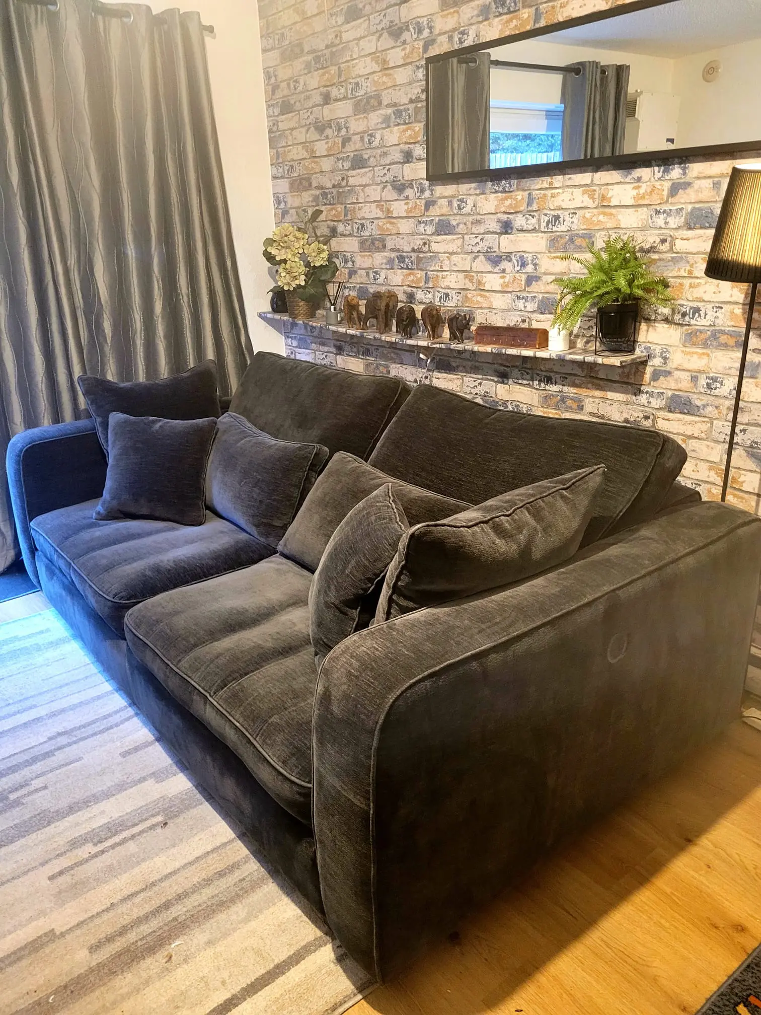 CAVALLI 3 SEATER SOFA WITH BOLT OFF ARMS CAVALLI BLANIK SLATE ALL OVER BOLT OFF ARMS,FT DARK WOOD X 1
