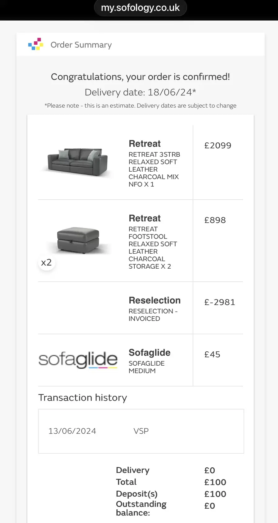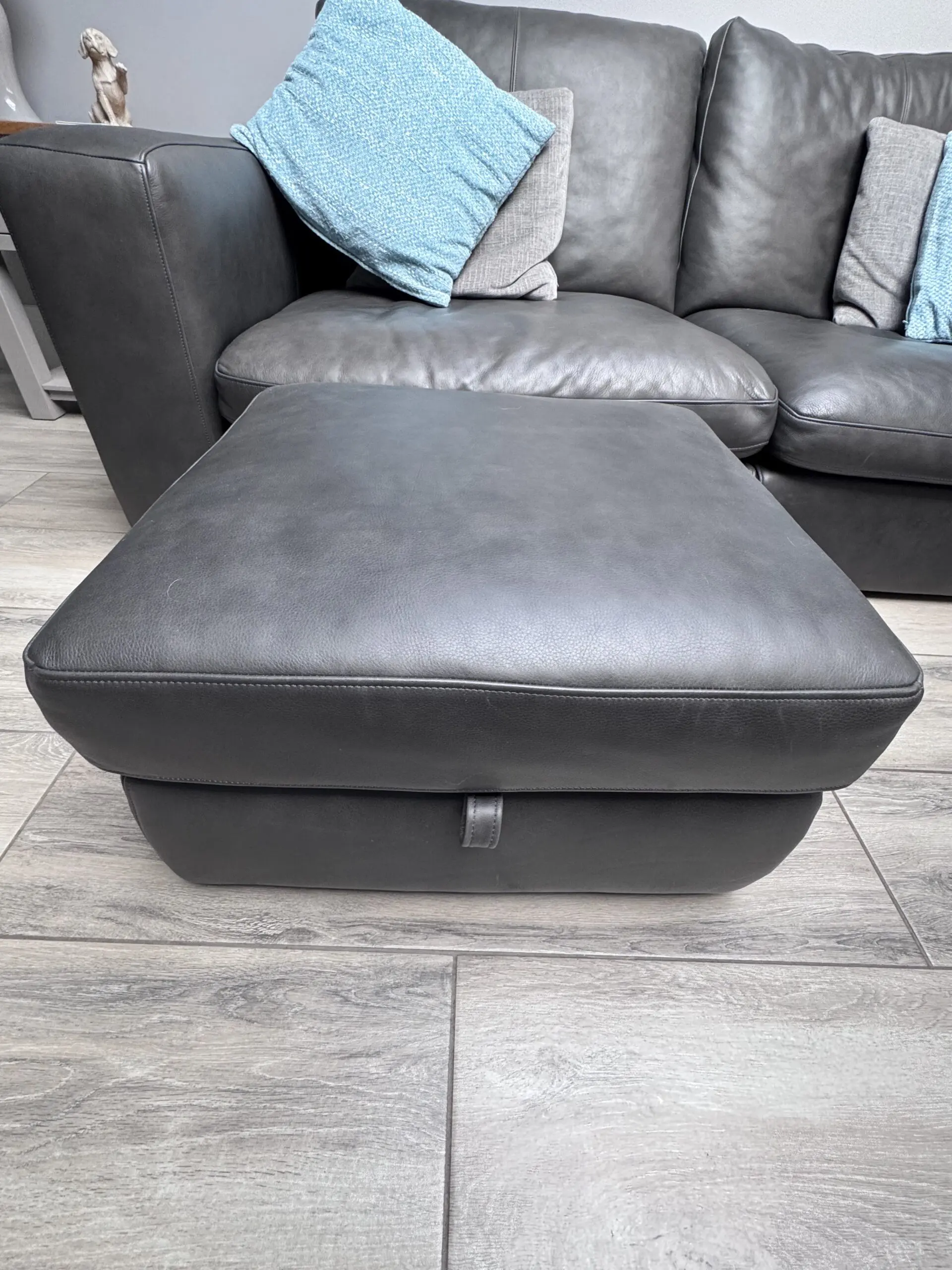 Sofology Retreat 3 seater sofa in charcoal grey leather with 2 footstools. This is in as new condition and was delivered in June last year. Hardly used as it is situated in our orangery. You will see from the included delivery screenshot this cost £3000 when new. If you would like any more photos or would like to view it please get in touch, we are in the WV5 postcode area.