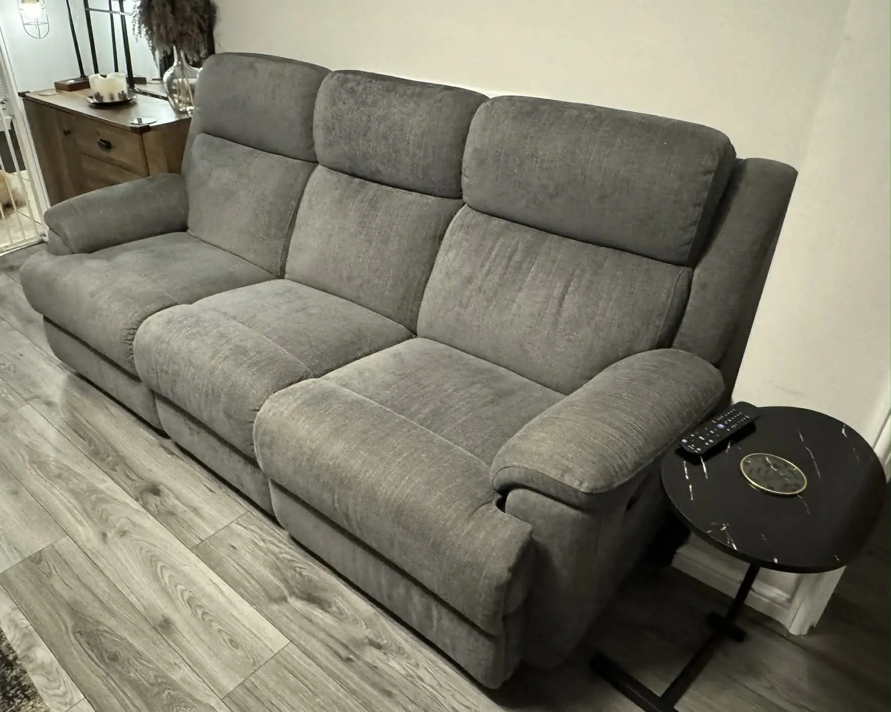 Both sofas recline smoothly and are really supportive, with soft cushioning and a sturdy feel. The charcoal colour is neutral and goes with pretty much any living room.