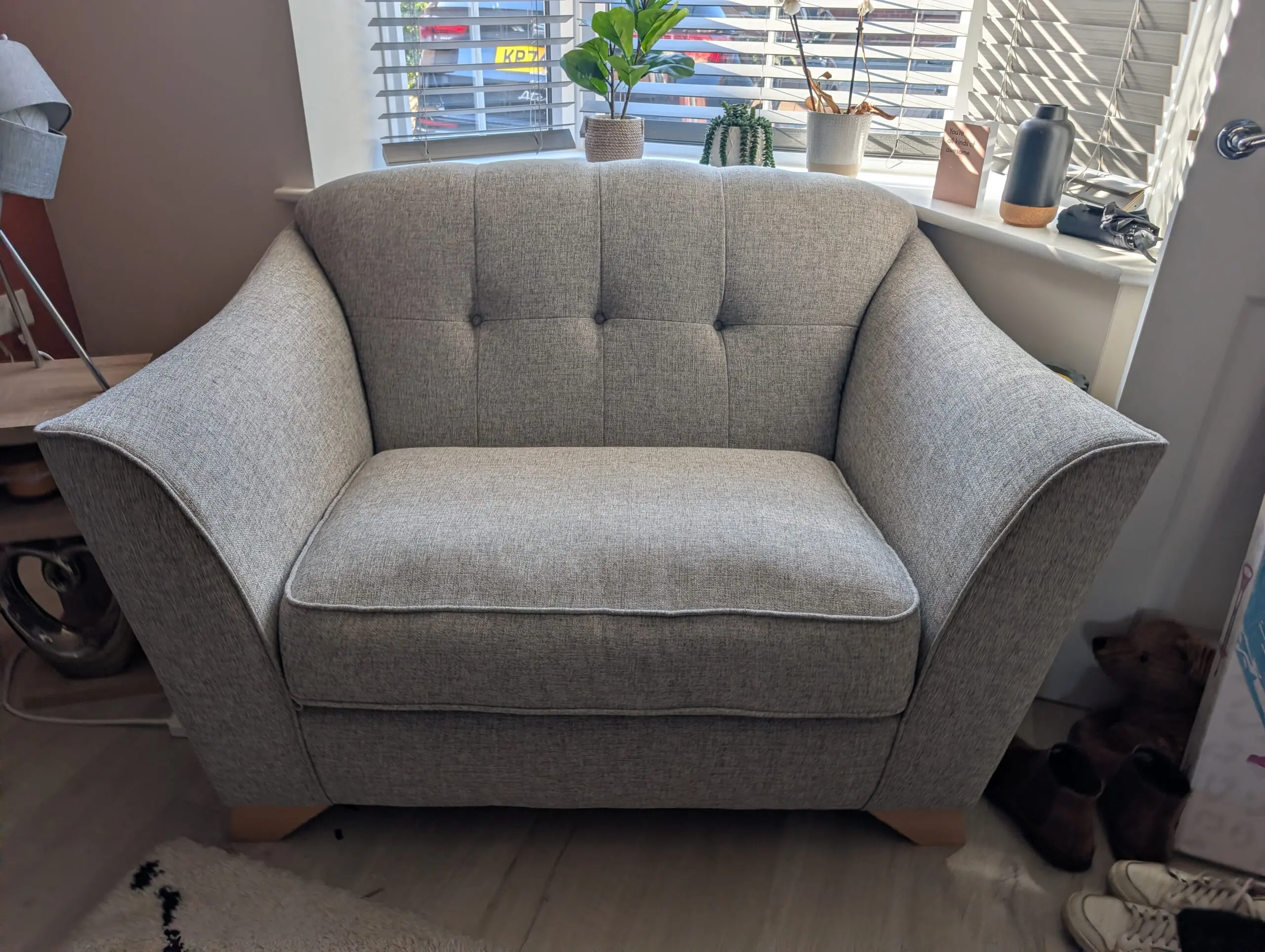 Sofology Grey 3 Seater & cuddle chair, used but in great condition.