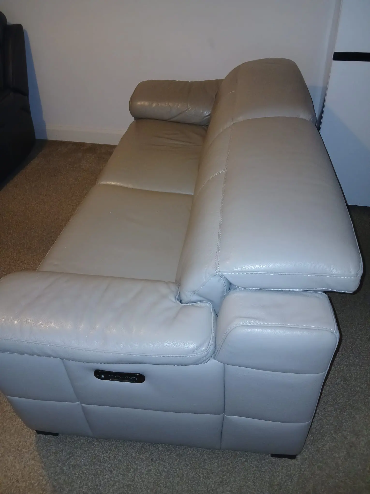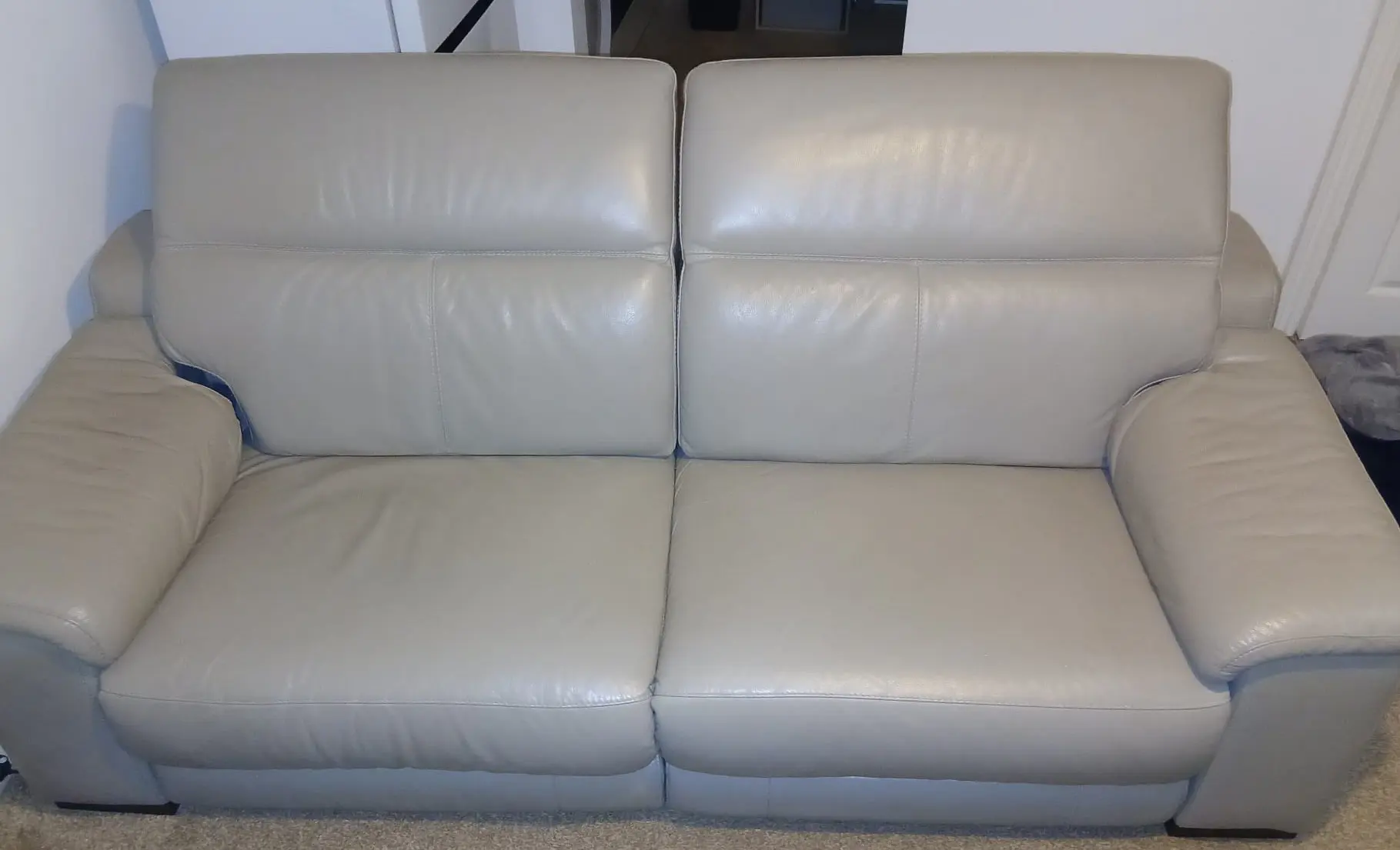 Fantastic sofa, super comfortable, barely used, not a scratch on it, looks like new with ‘very’ minimal signs of wear. Comes apart in 2 pieces easily (see picture). The best sofa I’ve ever had.