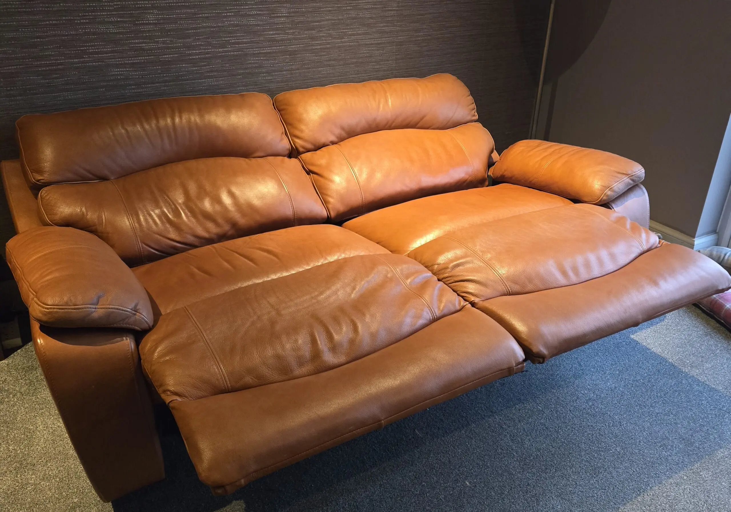Very good condition with little wear markings, recliner mechanisms are in original working order. The sofa has not continually been used over the years due to having other additional seating. Selling it as we are looking for a corner sofa.