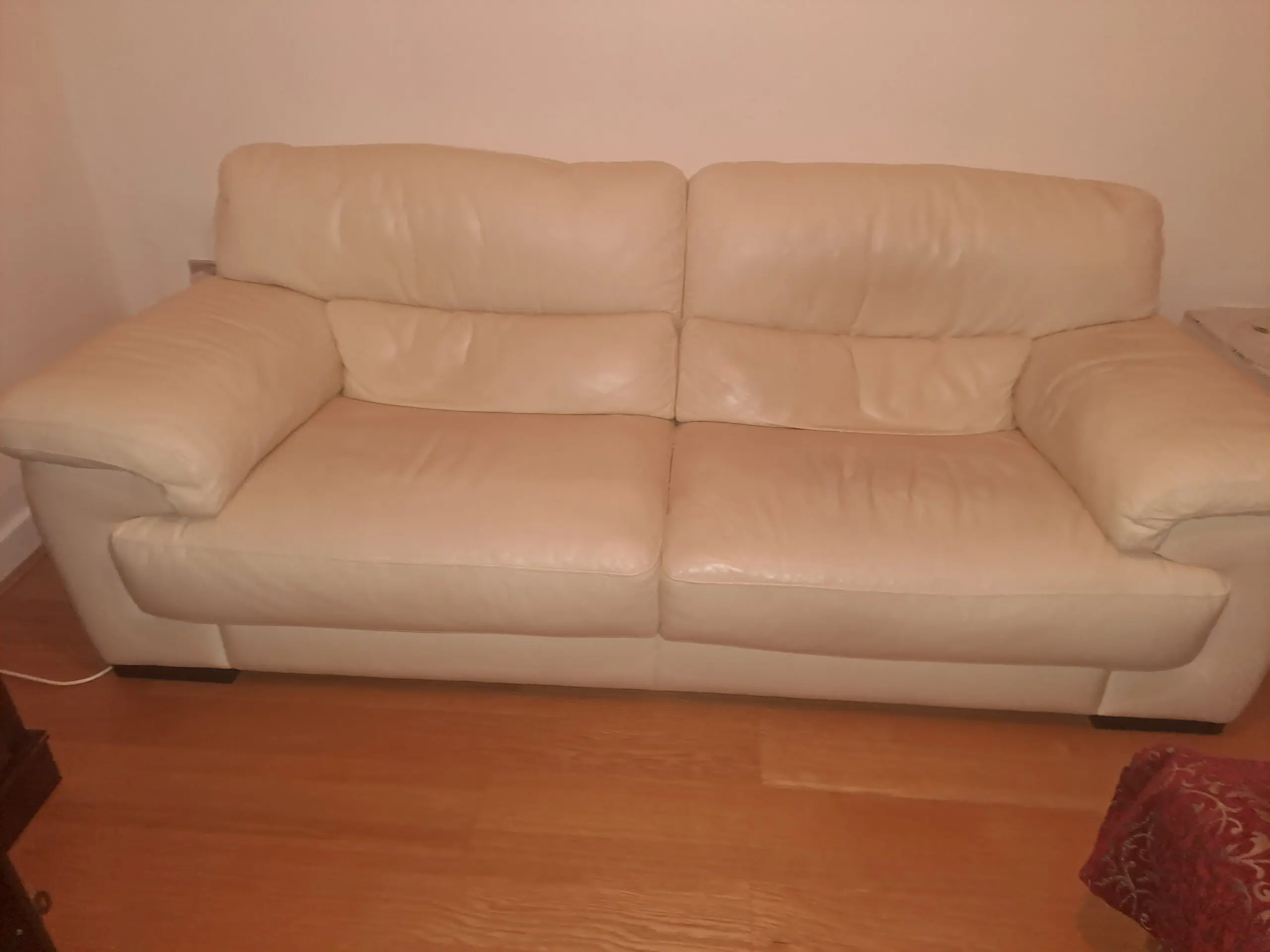 Good quality leather cream 3 seater sofa. 10 years old.