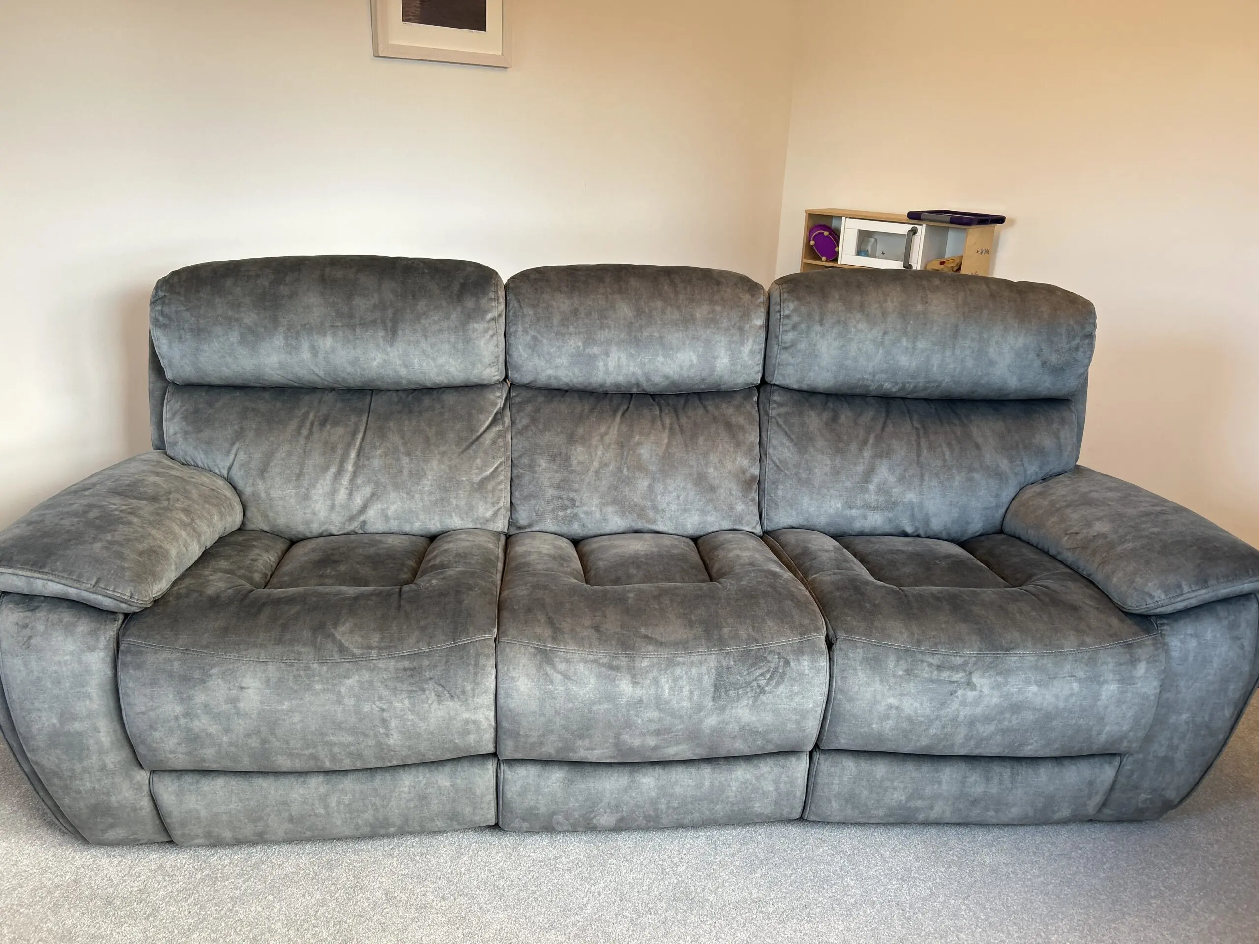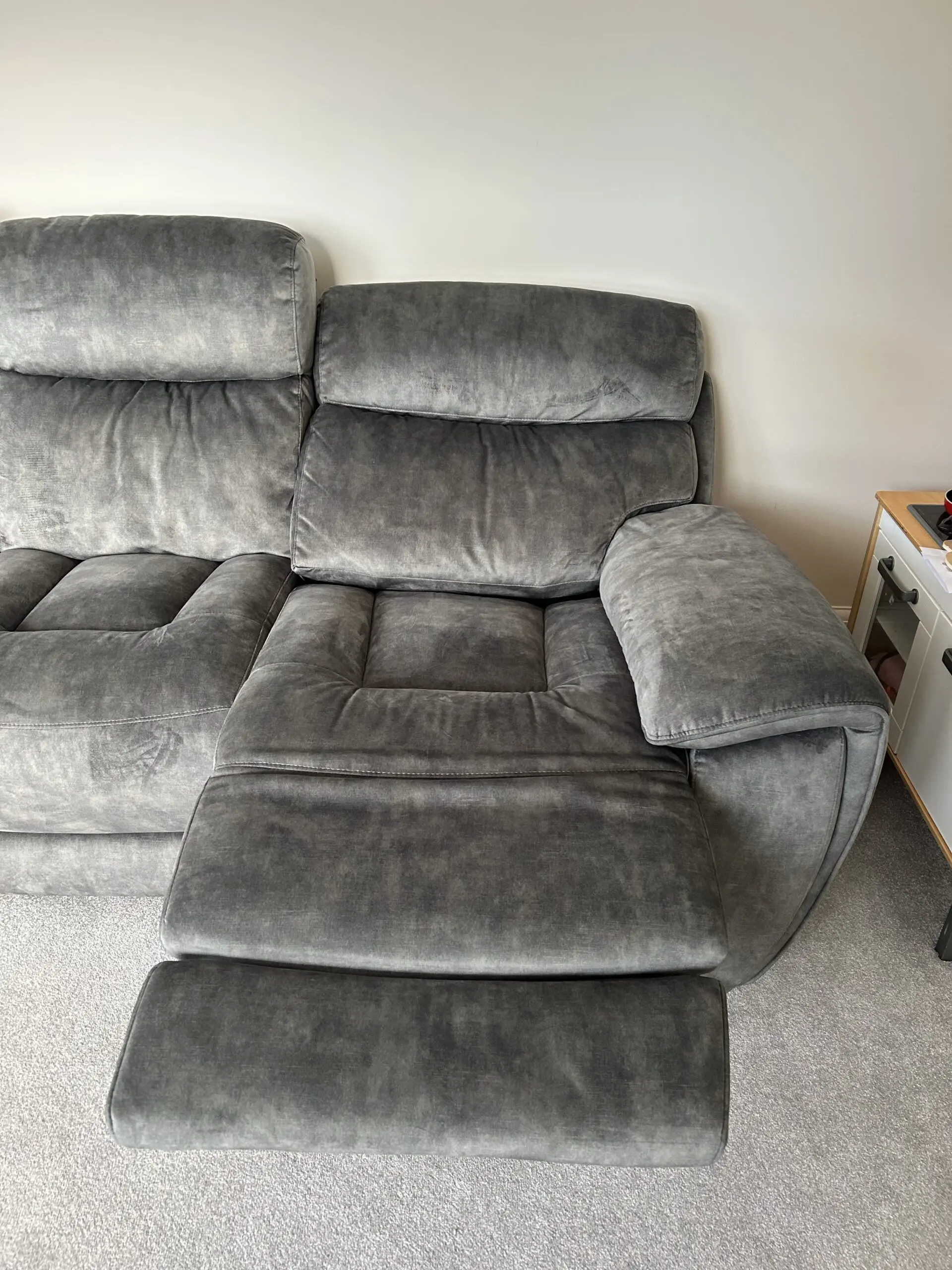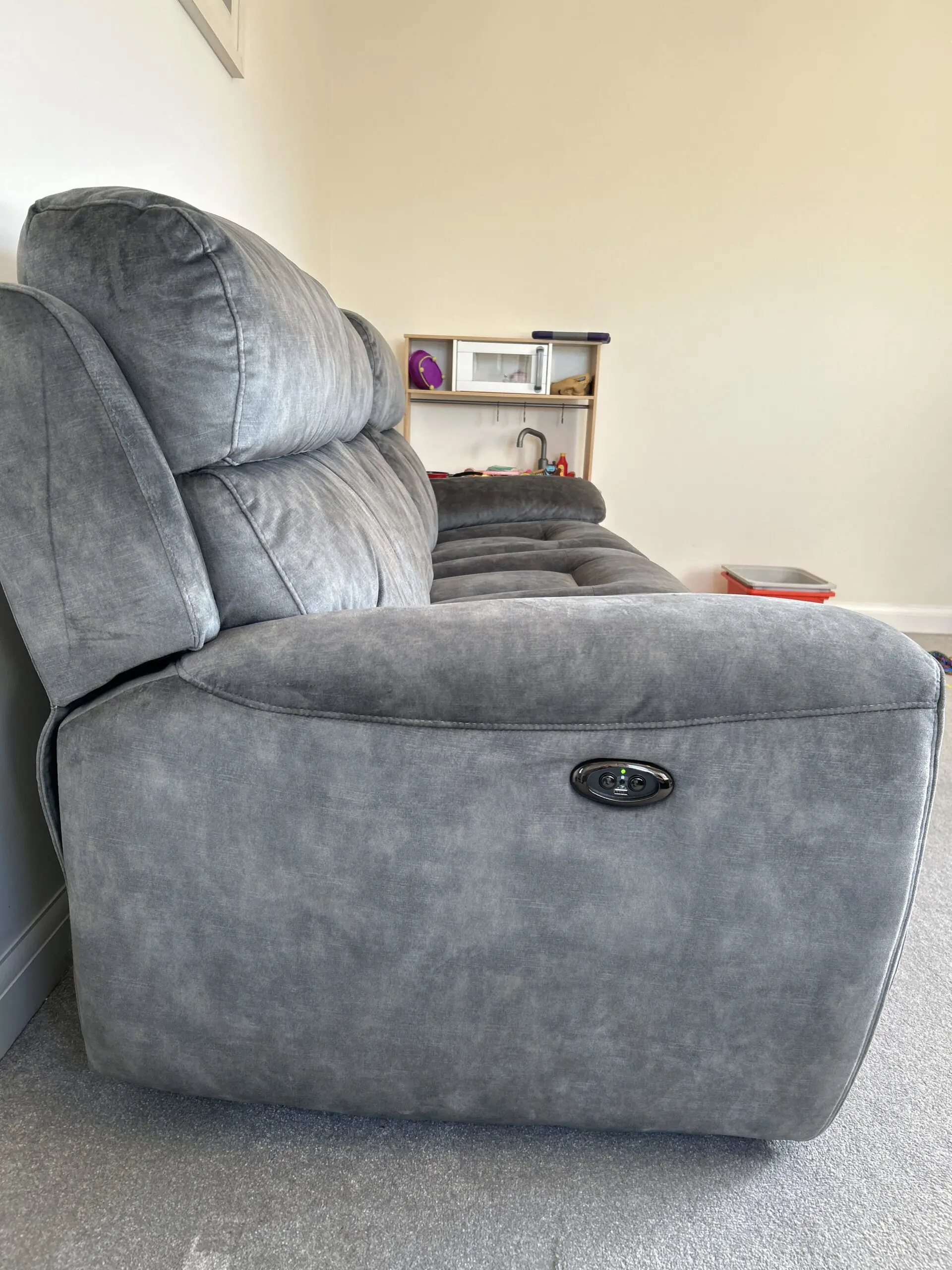 Sofology Radleigh velvet grey 3 seater sofa with 3 electric reclining chairs